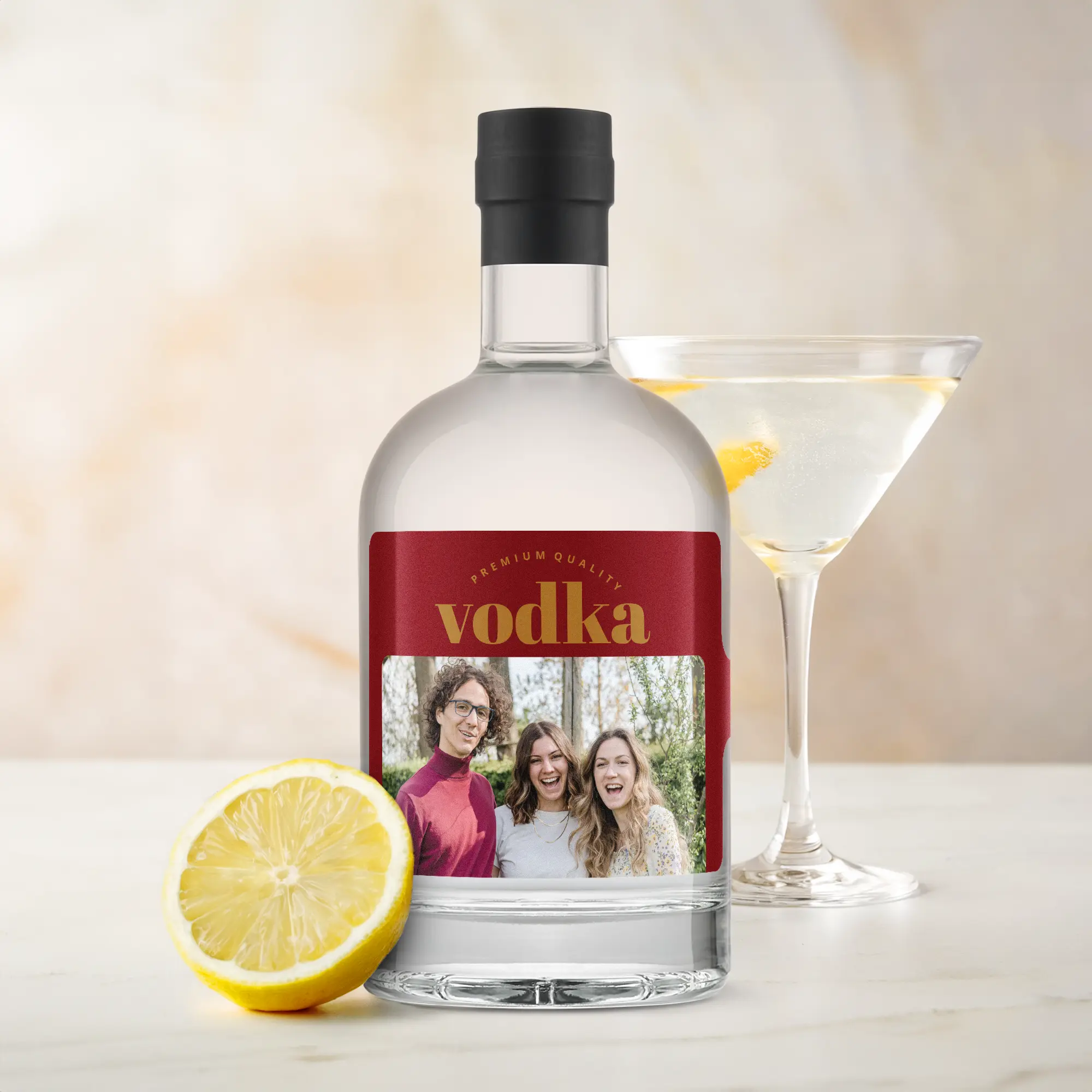 Vodka YourSurprise de marque propre avec étiquette imprimée. Votre design personnalisé avec photo, nom, logo ou collage. Pour les vrais amateurs de vodka ! Plus d'informations sur l'étiquette personnalisée : Personnalisation : avec photo, nom, collage ou logo. Emplacement de la personnalisation : étiquette entièrement imprimée. Impression : nette et dans les plus belles couleurs. Dimensions de l'étiquette : 14 x 9 cm. Plus d'informations sur la vodka : Marque : YourSurprise. Contenu : 700 ml. Pourcentage d'alcool : 40 %. Pays d'origine : Pays-Bas. Caractère : La vodka YourSurprise est une vodka premium produite en petite quantité. Onctueuse et parfaite seule. Également délicieuse avec de la glace ou en accompagnement.