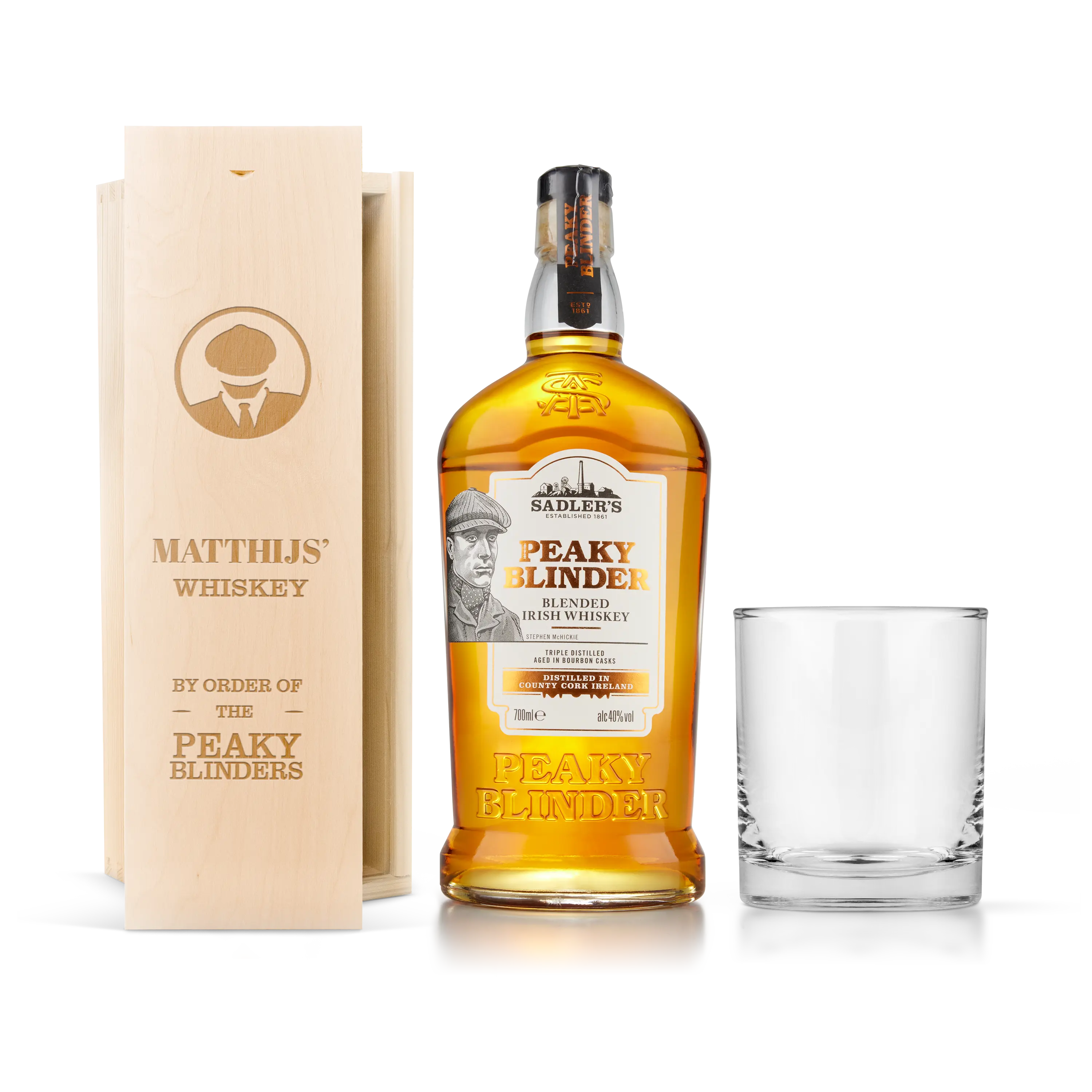 Inspiré de la célèbre série télévisée. Qui surprendrez-vous avec un coffret à whisky Peaky Blinders ? Incluant un luxueux verre à whisky dans un coffret en bois gravé.