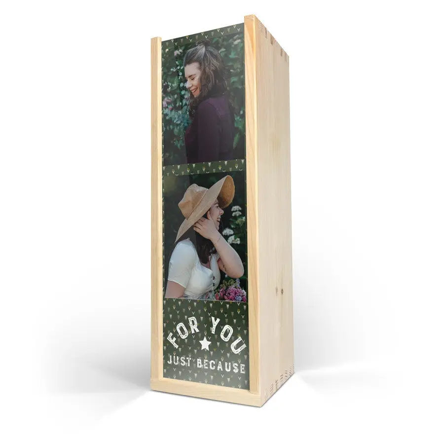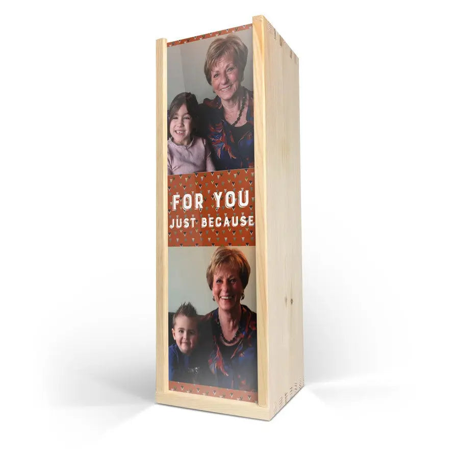 Délicieux vin Maison de la Surprise dans un coffret en bois de luxe avec la photo, le logo et/ou le texte de votre choix. Créez le vôtre maintenant !