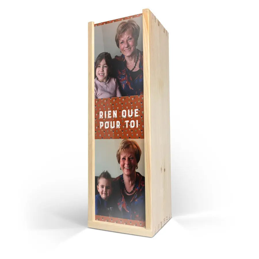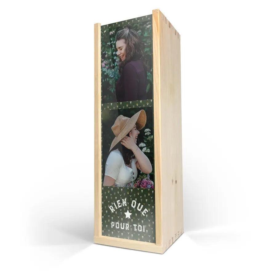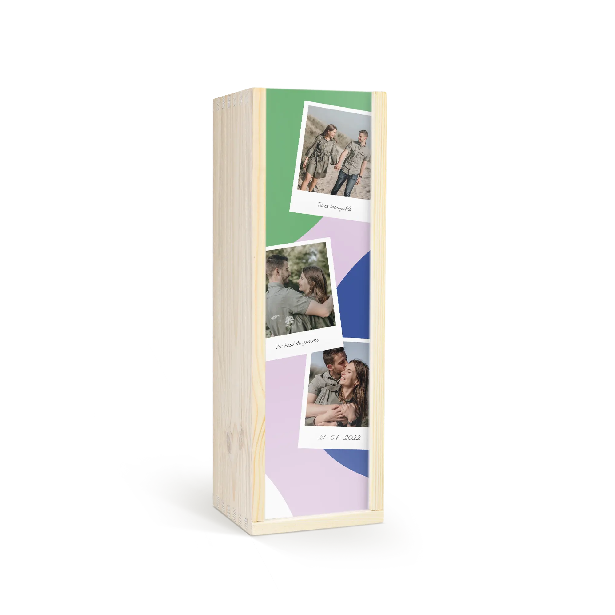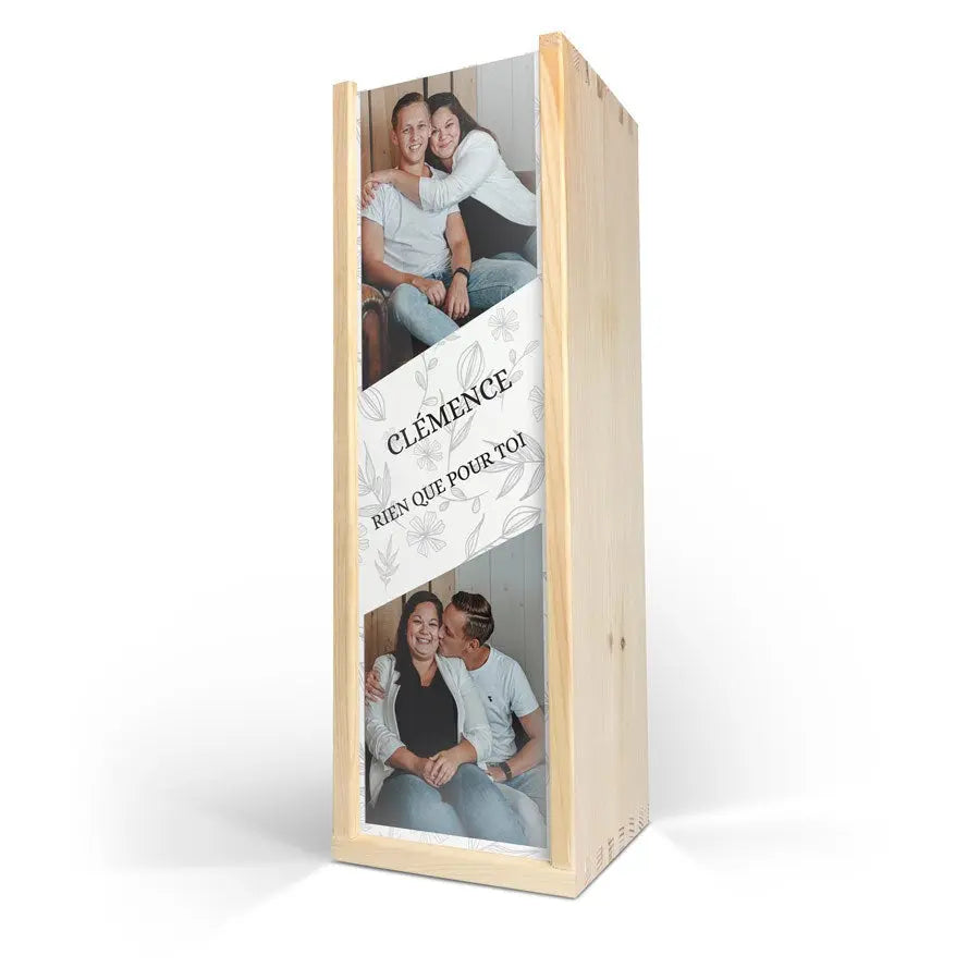 [fort]Boîte de vin personnalisée[/fort], un moyen réfléchi de présenter une bouteille spéciale avec des souvenirs précieux.