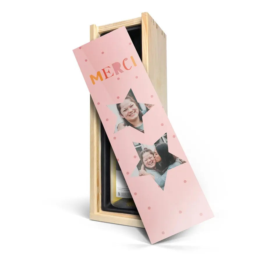 Plus qu'un cadeau, cette boîte de vin personnalisée est une expérience conçue pour exprimer une profonde gratitude et un amour sincère. Elle transforme une simple bouteille en un objet précieux, vous permettant de partager des souvenirs précieux à travers des photos personnalisées. La boîte en bois élégante et la carte photo soigneusement conçue laissent une impression durable, transformant un moment de gratitude en un souvenir tangible et beau qui parle de votre lien. C'est un moyen raffiné de dire « Merci » qui sera apprécié longtemps après que la bouteille ait été dégustée.