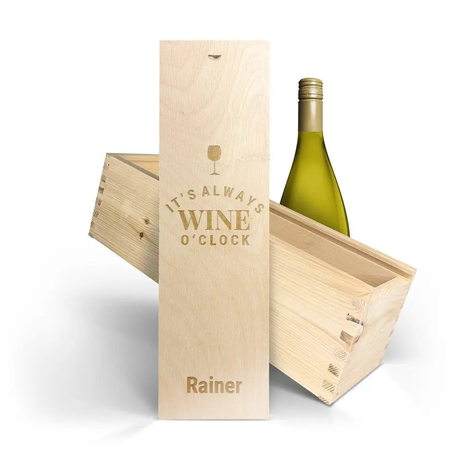 Plus d'informations sur le luxueux coffret à vin :Personnalisation : avec nom ou texteEmplacement de la personnalisation : sur le couvercle du coffret en boisGravure : gravure laser de haute qualitéDimensions du coffret : 36,5 x 12 x 11 cmDimensions du couvercle : 35,6 x 10,2 x 0,3 cmLe bois est certifié FSCPlus d'informations sur le vin :Marque : Salentein Chardonnay Type : blanc, ample et juteuxContenu : 750 mlPays d'origine : ArgentineCépage : ChardonnayCaractère : Le Chardonnay Salentein a des arômes d'agrumes, de miel et de fruits tropicaux. Se marie bien avec la volaille, le veau et le porc.
