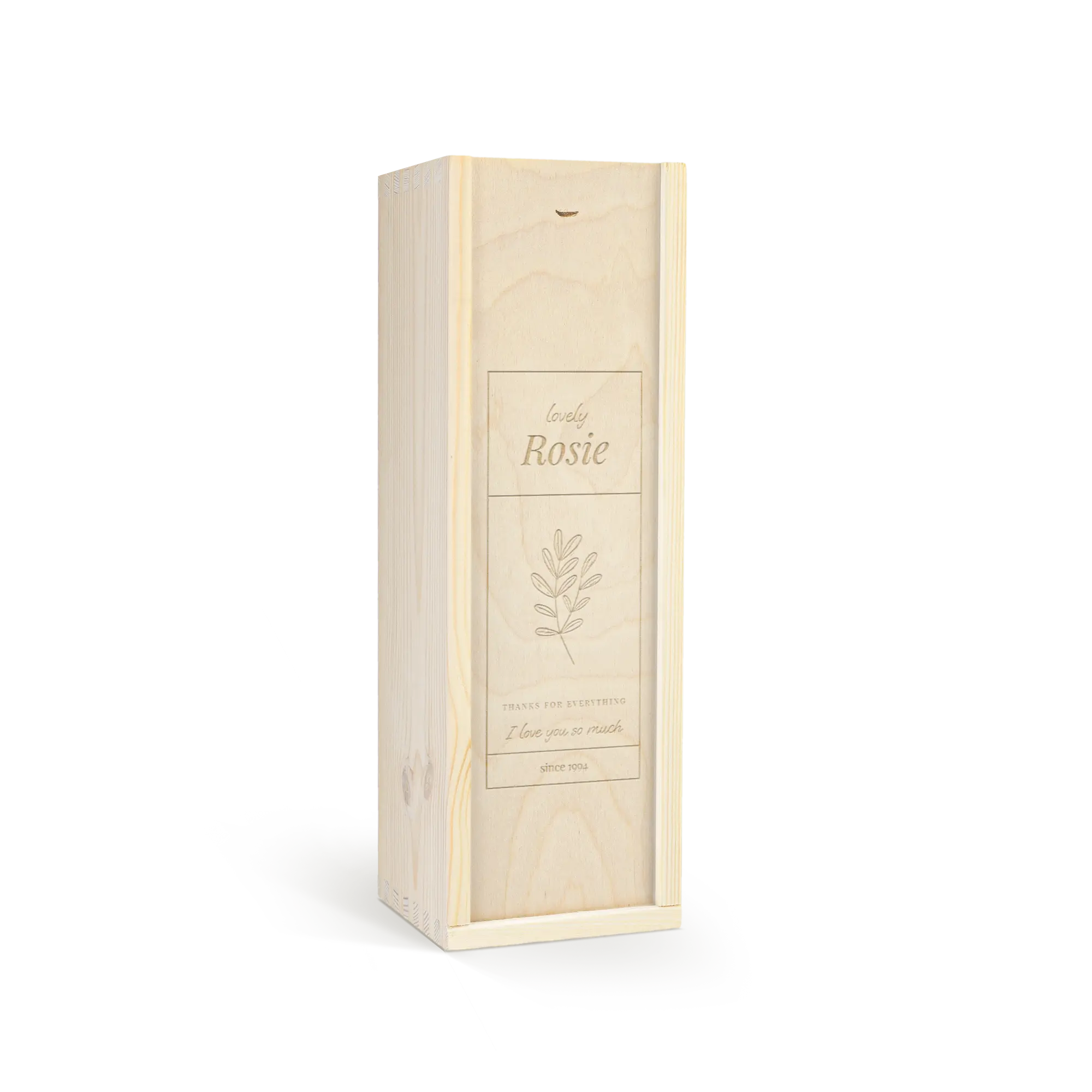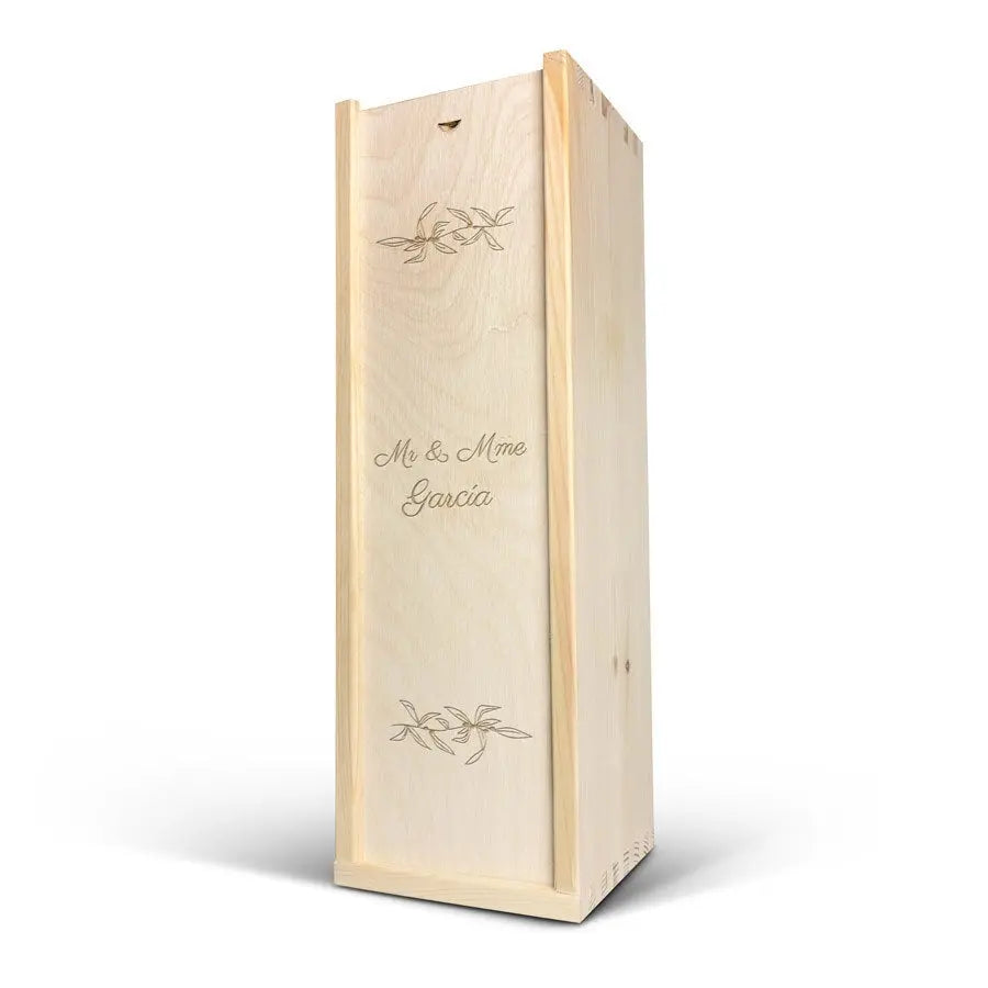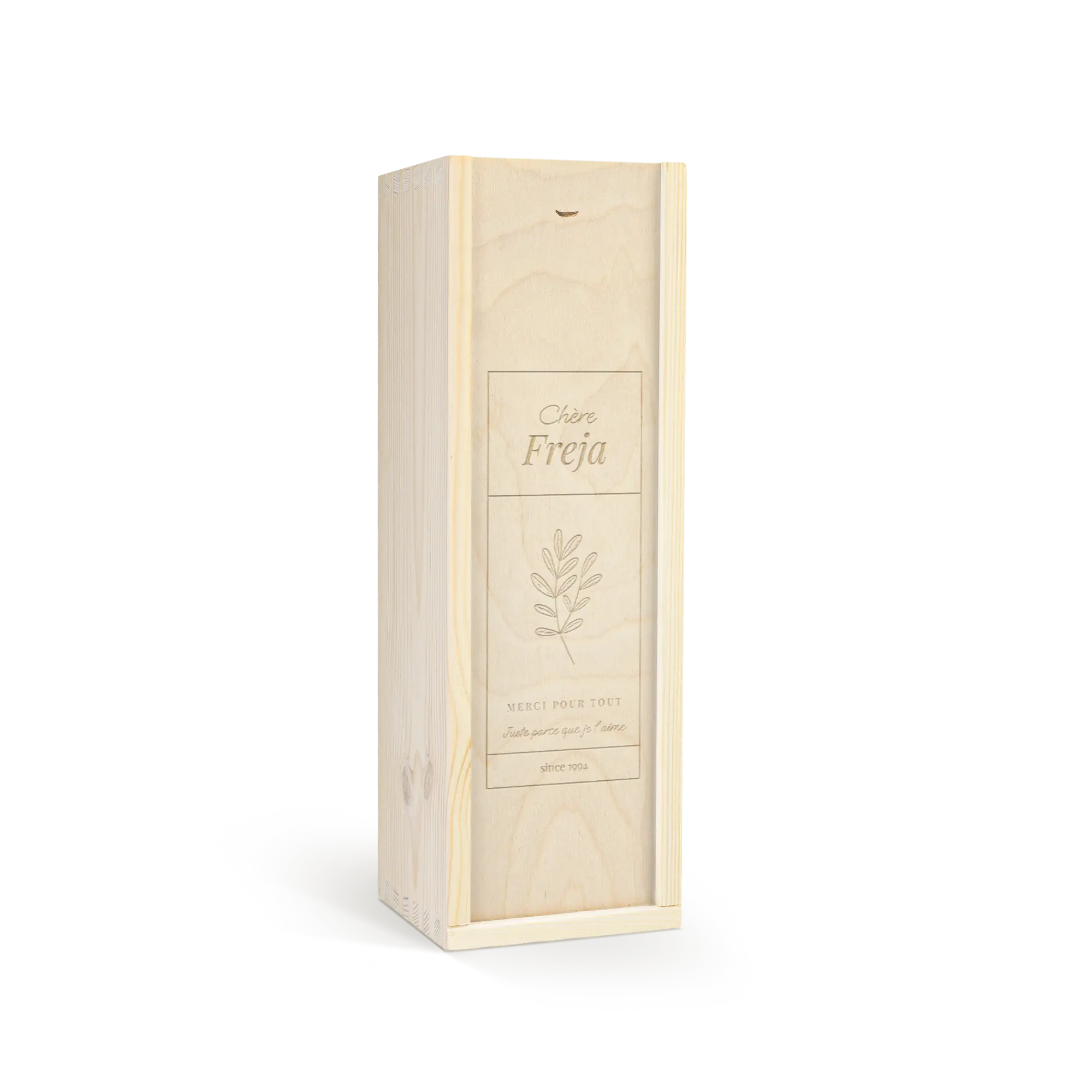 Plus d'informations sur le coffret luxueux : Personnalisation : avec nom ou texte. Emplacement de la personnalisation : sur le couvercle en bois. Méthode de personnalisation : gravure laser de haute qualité. Dimensions du coffret : 36,5 x 12 x 11 cm. Dimensions du couvercle : 35,6 x 10,5 x 0,3 cm. Bonus : le coffret en bois est certifié FSC. Plus d'informations sur le vin mousseux : Marque : Palau Gazo. Type : cava. Contenu : 750 ml. Pays d'origine : Espagne. Cépages : Parellada, Macabeo et Xarel-Lo. Caractère : Bulles fines, fruité avec des arômes de pomme verte. Un arrière-goût doux et rond. Parfait pour les fêtes.
