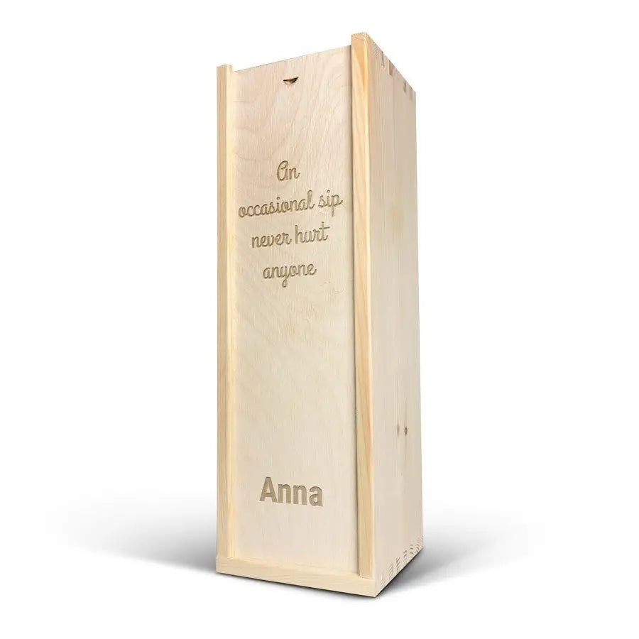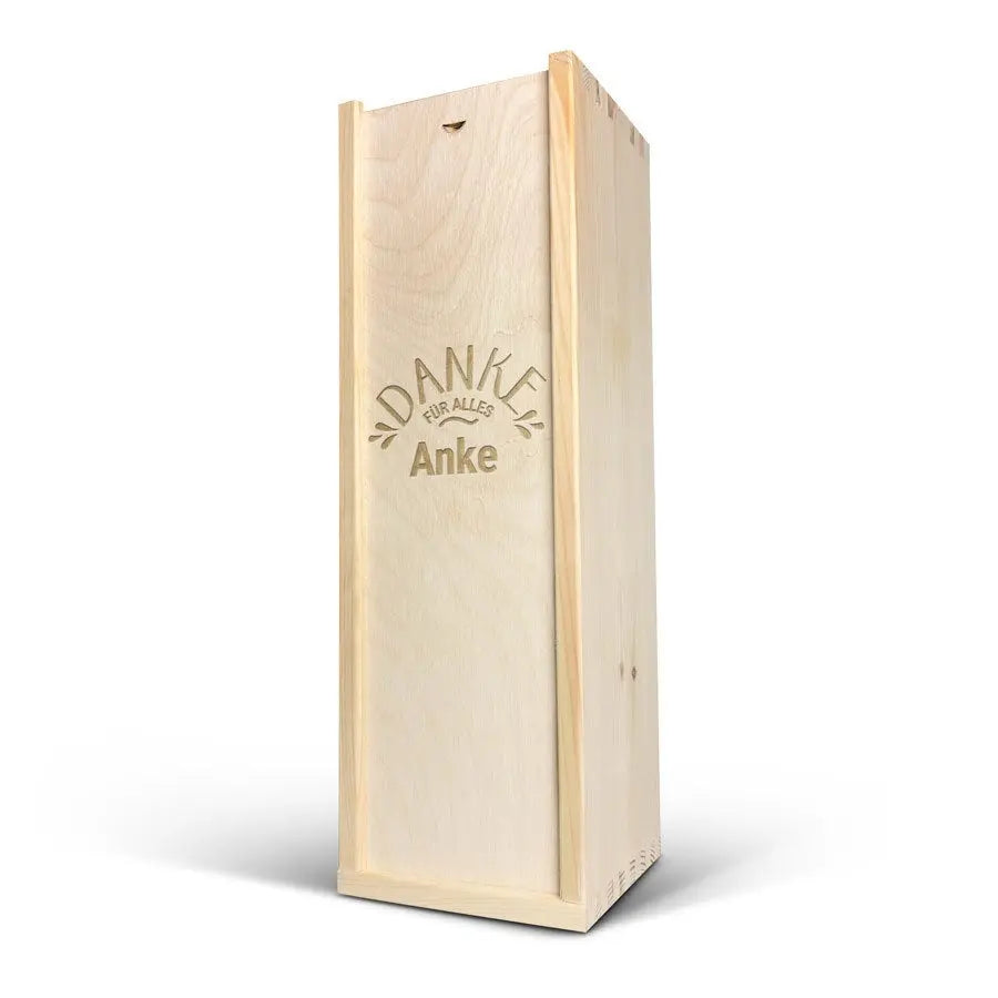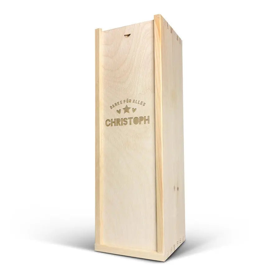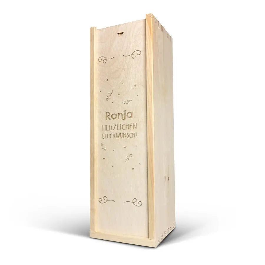 Plus d'informations sur le coffret luxueux : Personnalisation : avec nom ou texte. Emplacement de la personnalisation : sur le couvercle en bois. Méthode de personnalisation : gravure laser de haute qualité. Dimensions du coffret : 36,5 x 12 x 11 cm. Dimensions du couvercle : 35,6 x 10,5 x 0,3 cm. Bonus : le coffret en bois est certifié FSC. Plus d'informations sur le vin mousseux : Marque : Palau Gazo. Type : cava. Contenu : 750 ml. Pays d'origine : Espagne. Cépages : Parellada, Macabeo et Xarel-Lo. Caractère : Bulles fines, fruité avec des arômes de pomme verte. Un arrière-goût doux et rond. Parfait pour les fêtes.