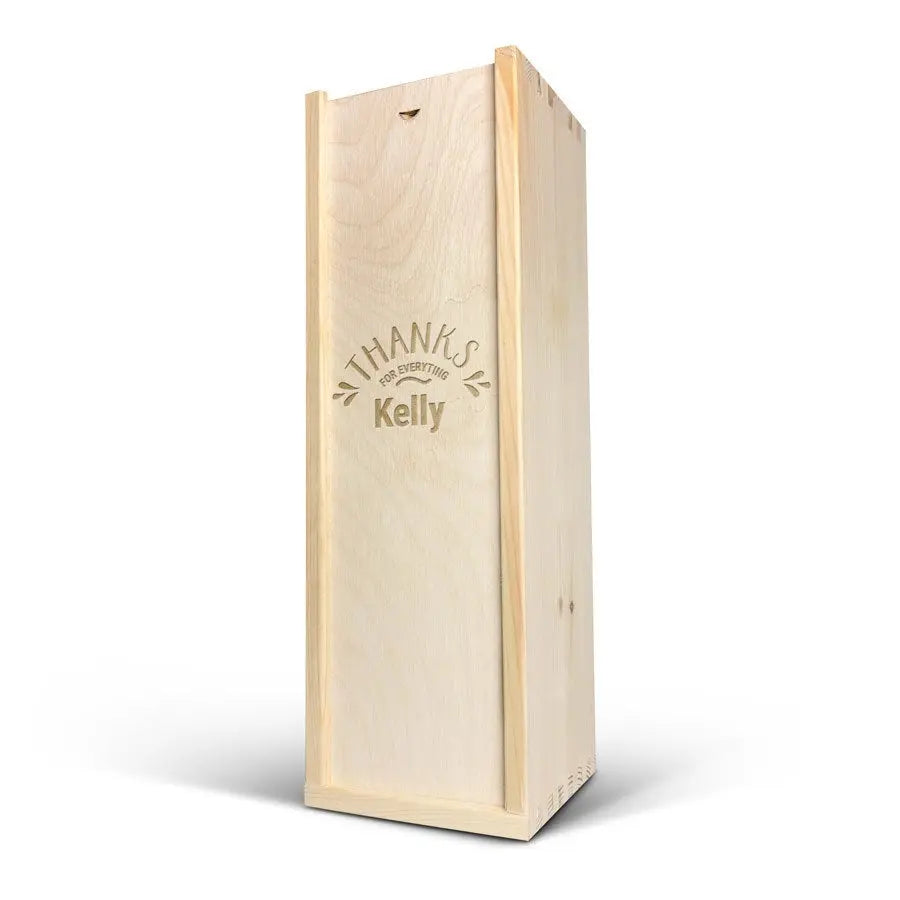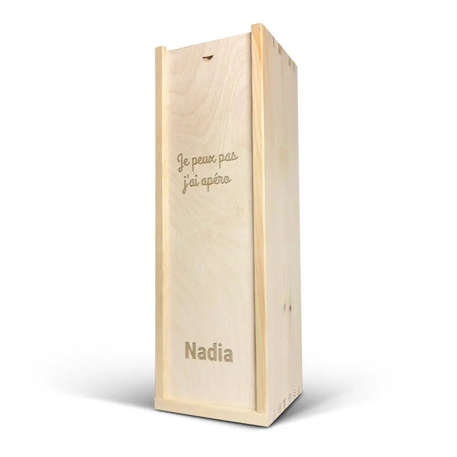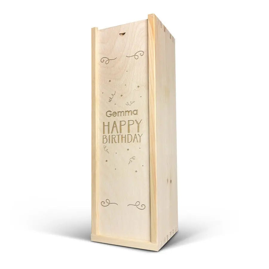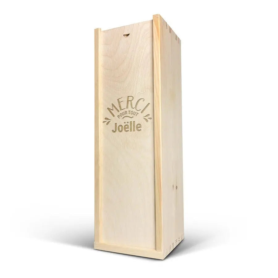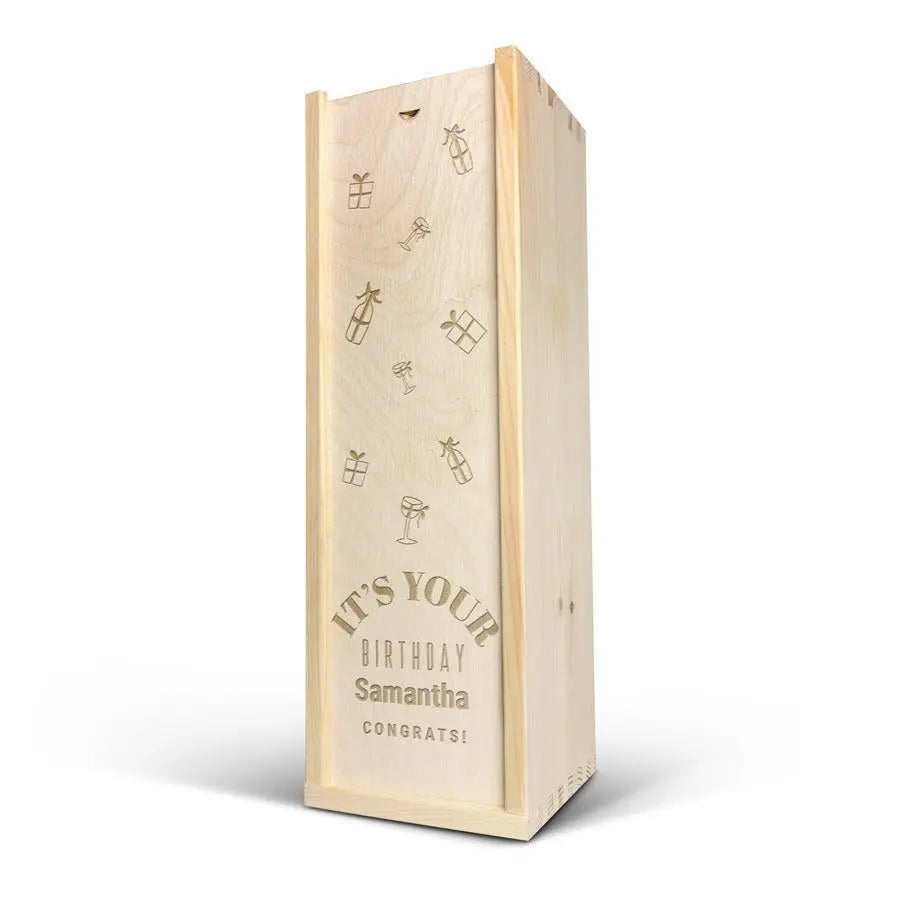 Une délicieuse bouteille de vin mousseux Cava Palau Gazo dans un coffret gravé. Personnalisez-la à votre guise avec votre texte et un design unique !