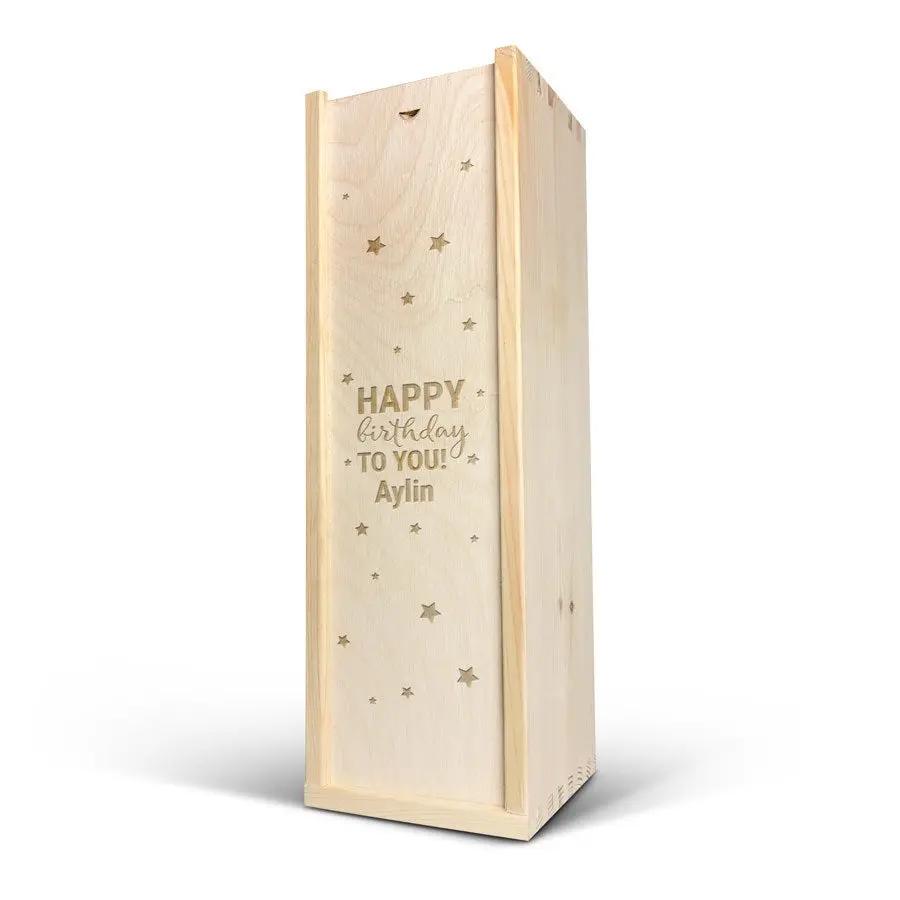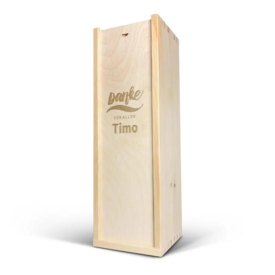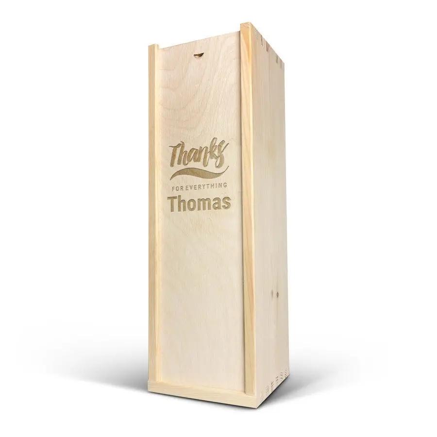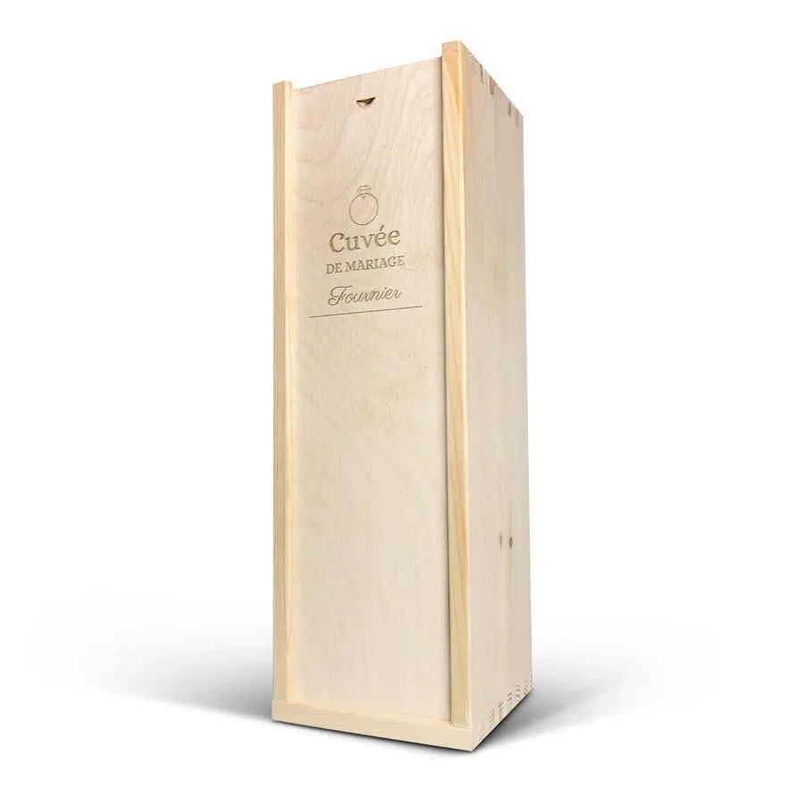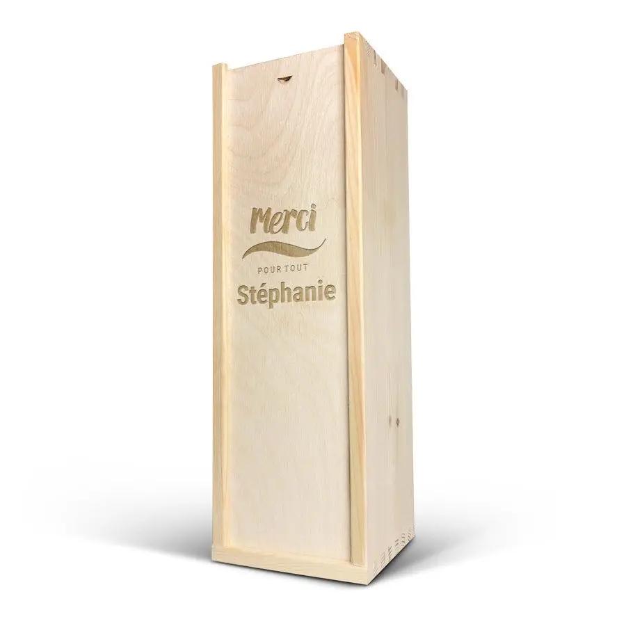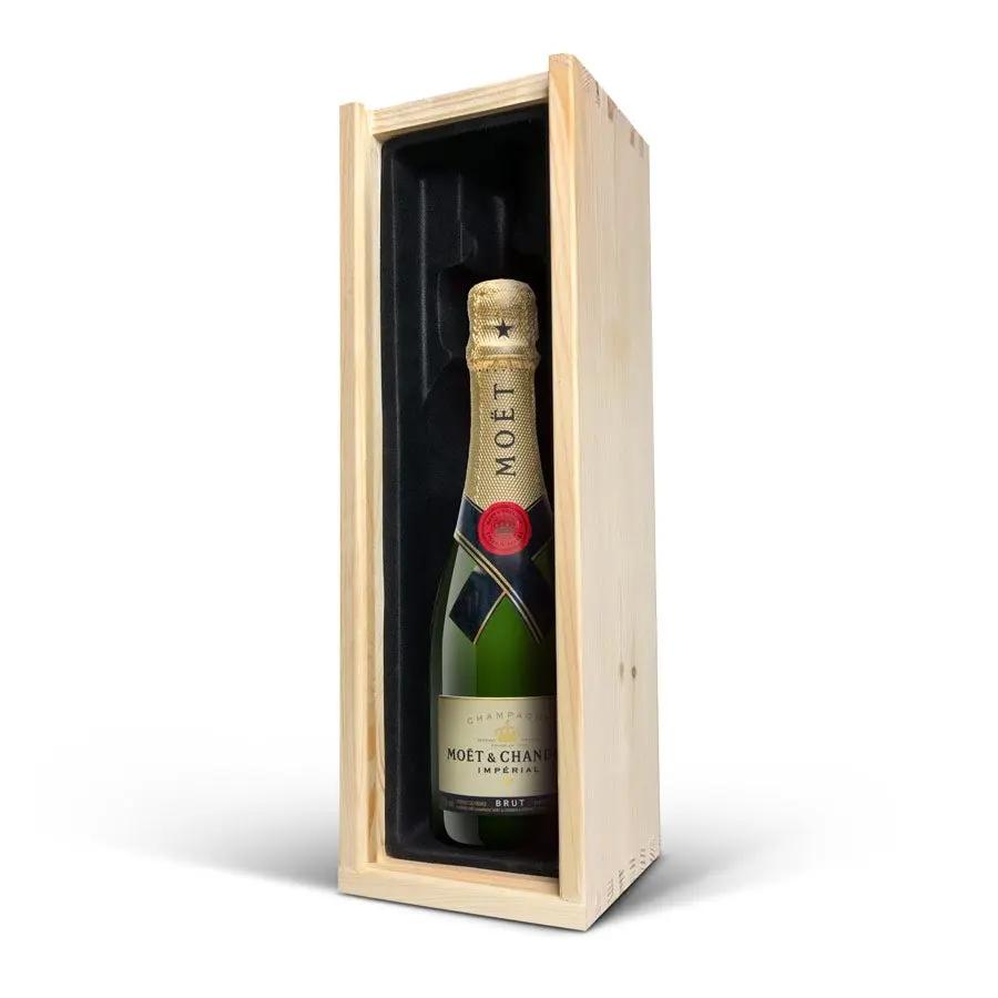 Une délicieuse bouteille de champagne Moët & Chandon dans un coffret en bois gravé de votre nom ou texte.