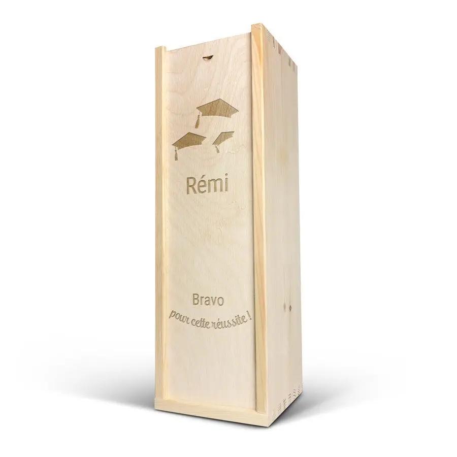 - Emplacement de la personnalisation : sur le couvercle du coffret en bois