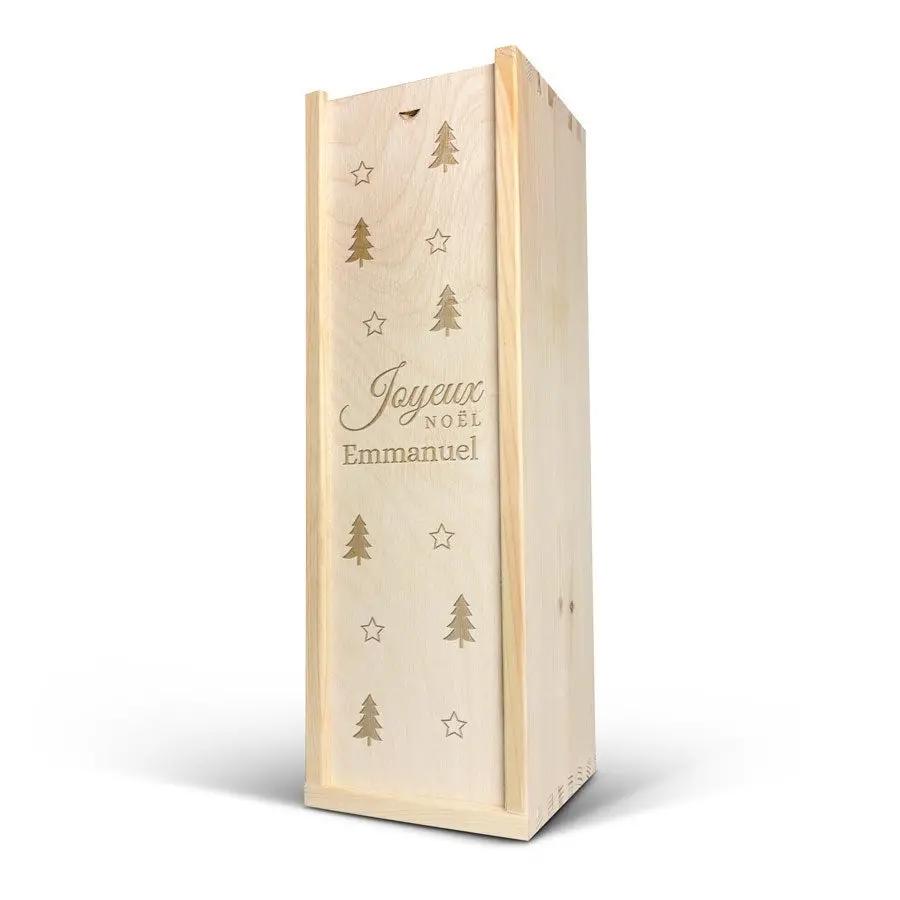 - Emplacement de la personnalisation : sur le couvercle du coffret en bois