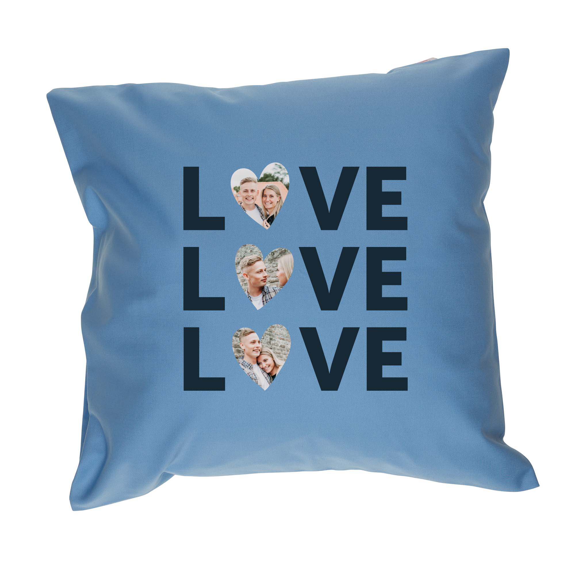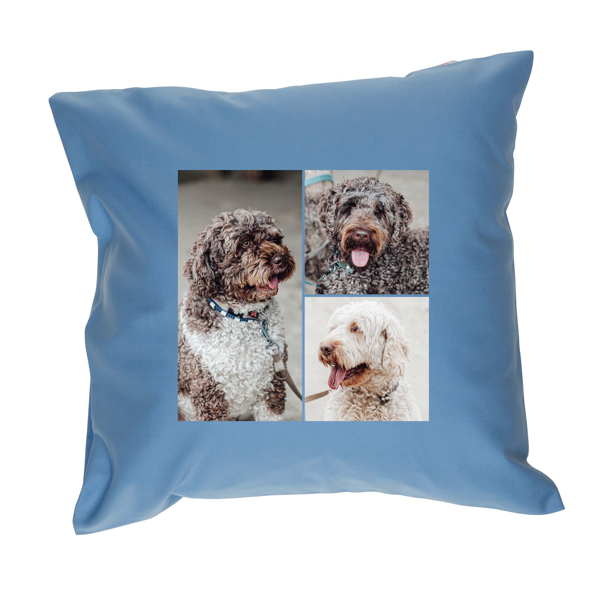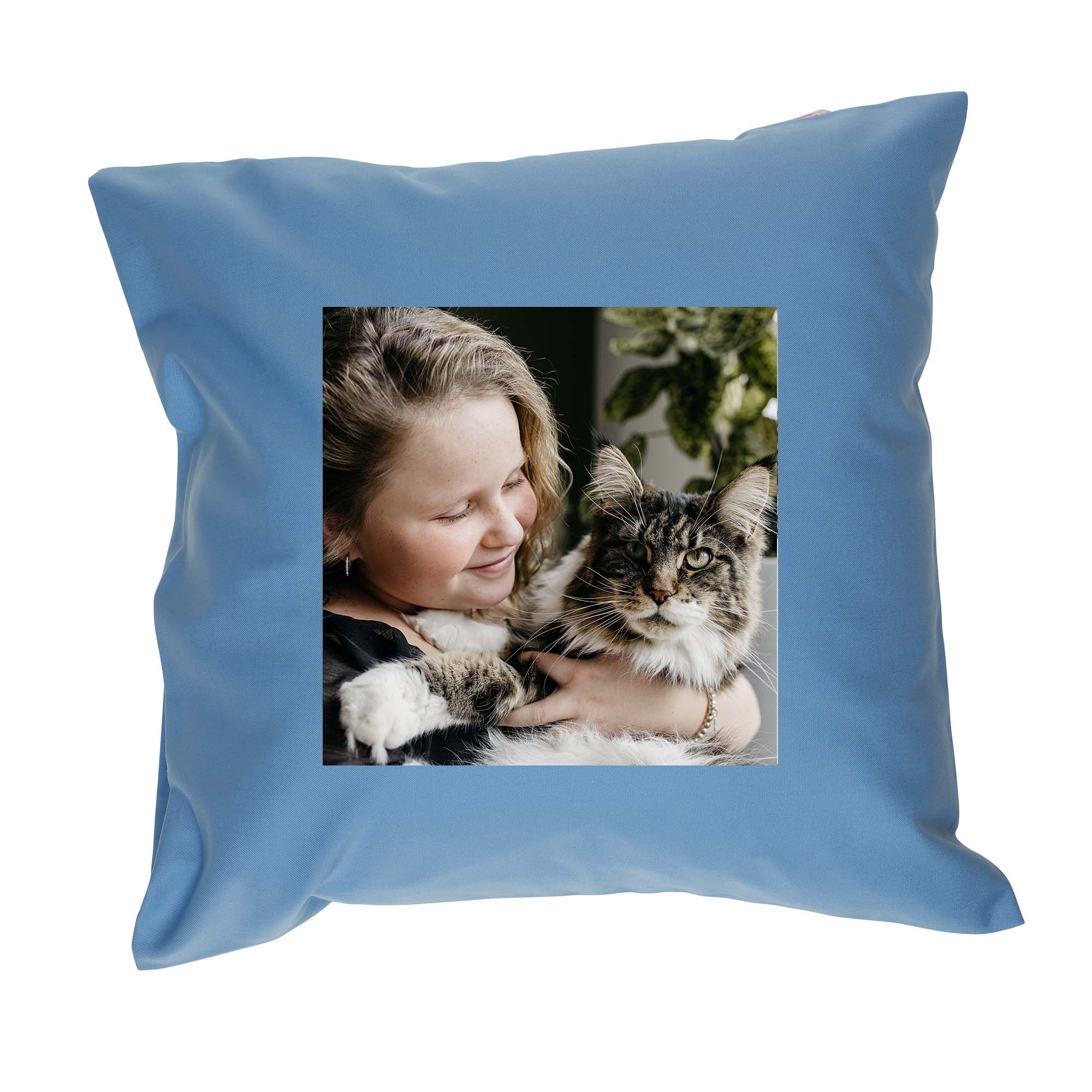 Un coussin orné de votre photo préférée. Disponible dans une sélection de couleurs et de motifs.