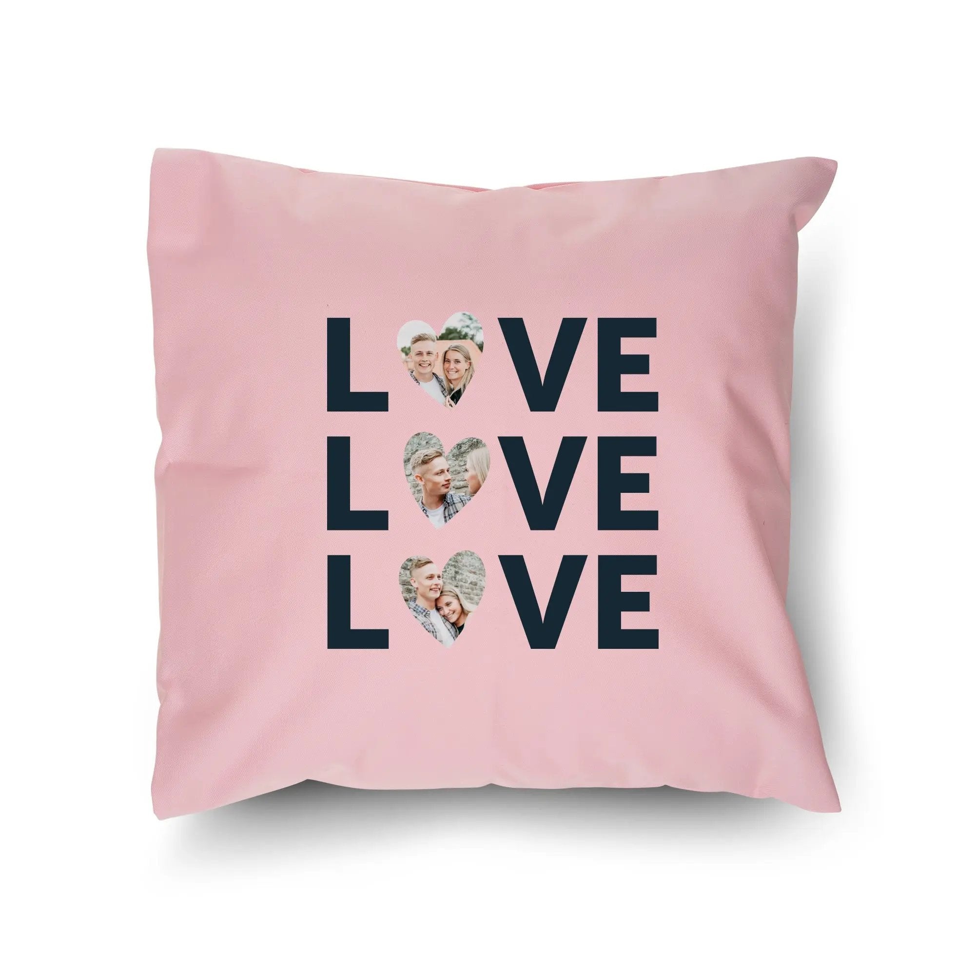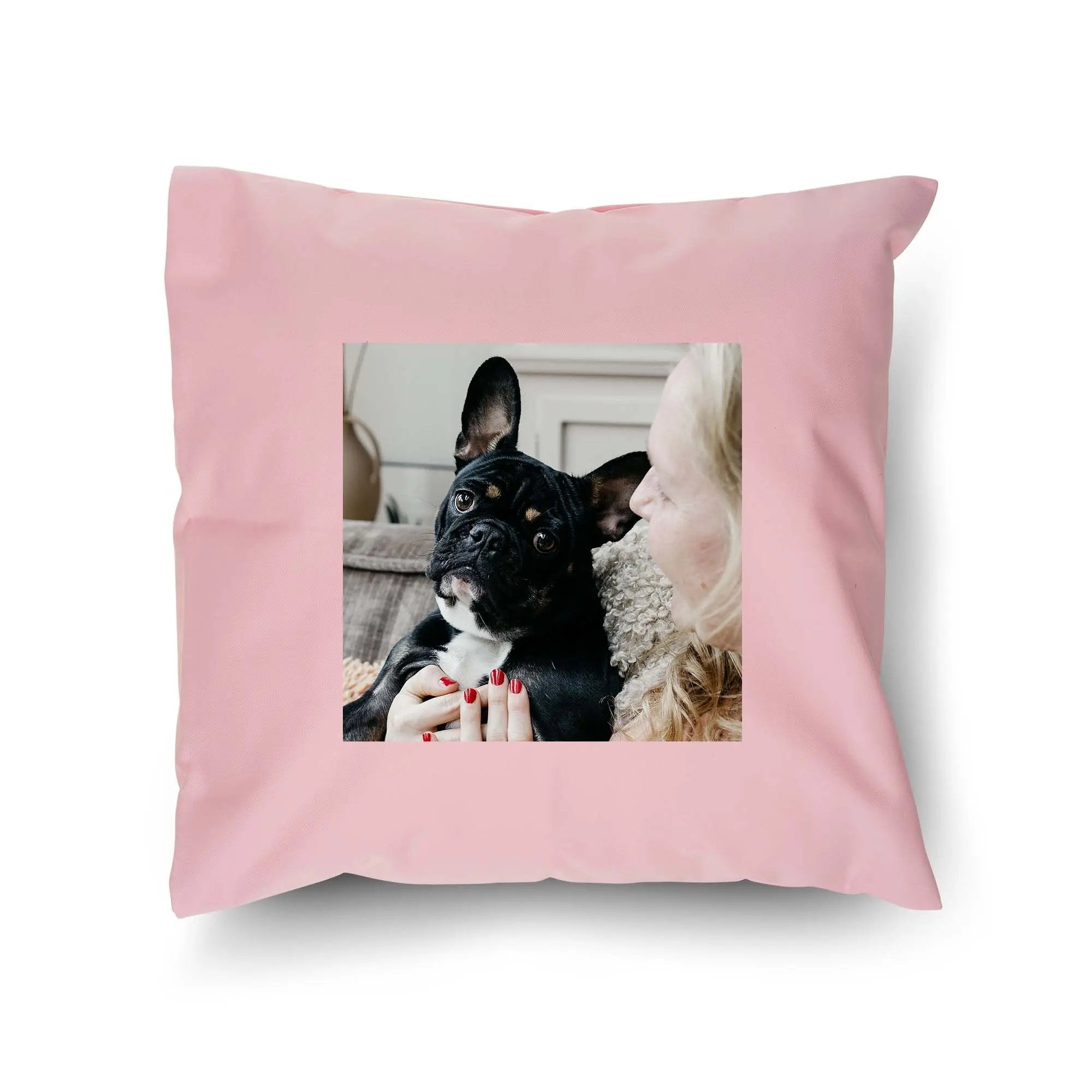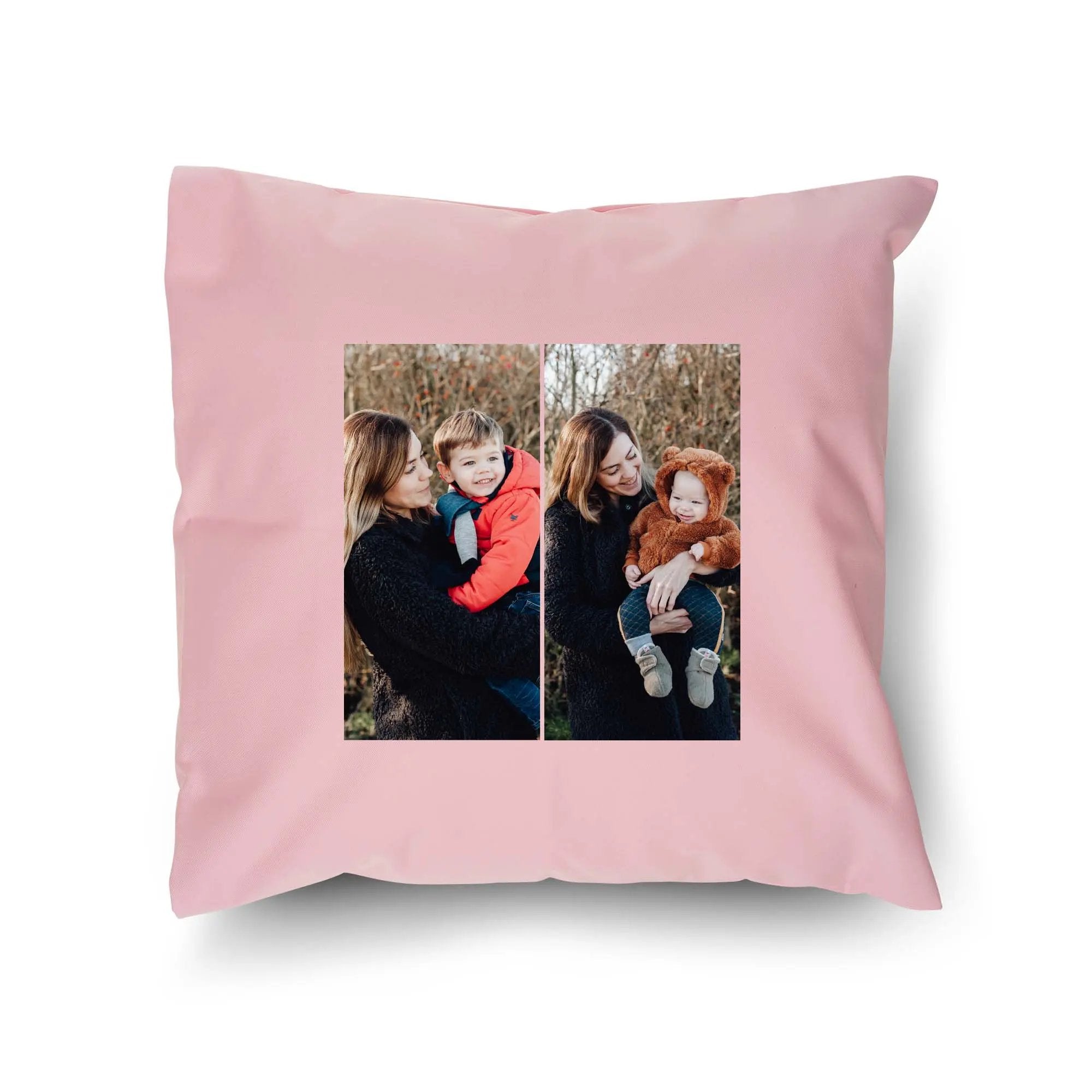 Un coussin orné de votre photo préférée. Disponible dans une sélection de couleurs et de motifs.