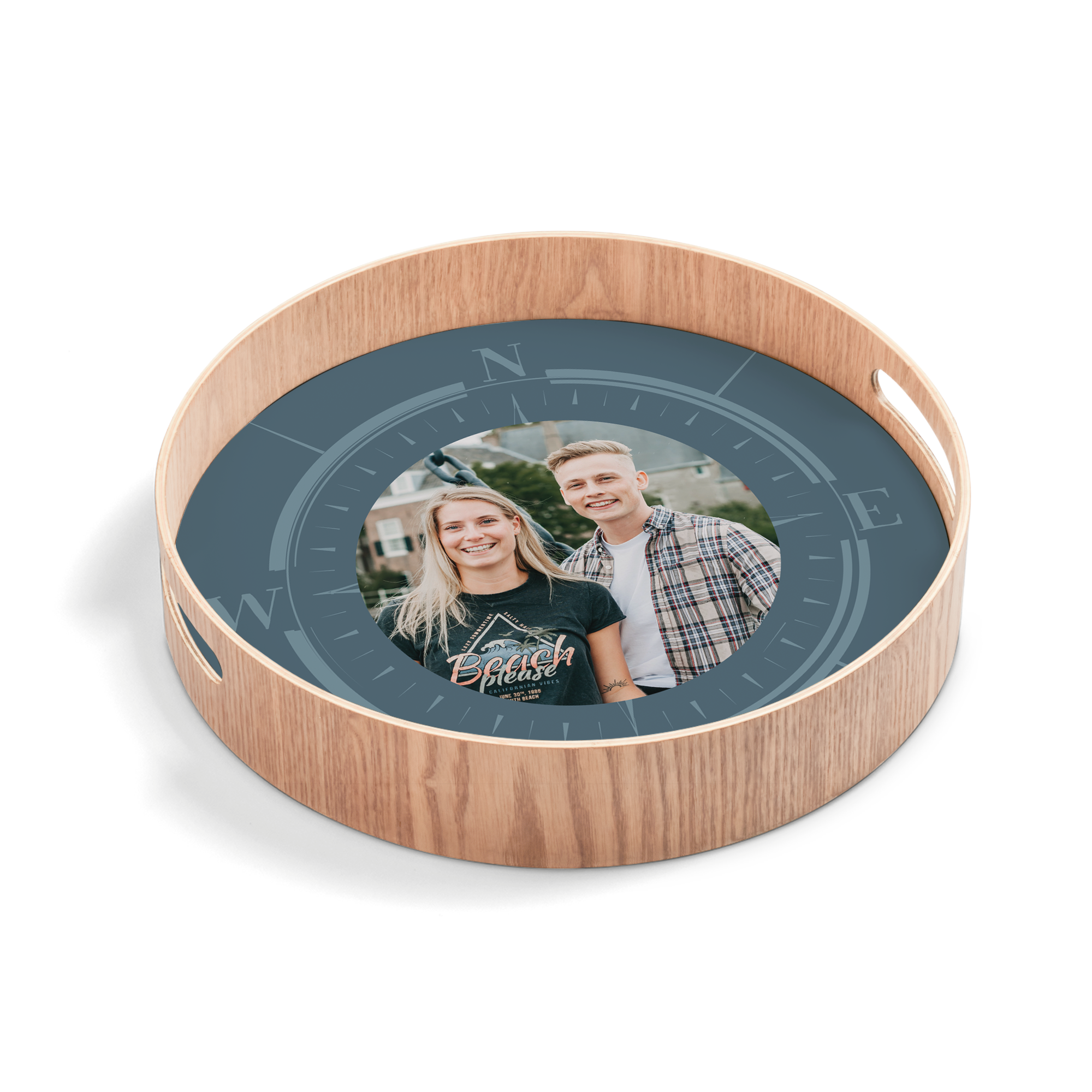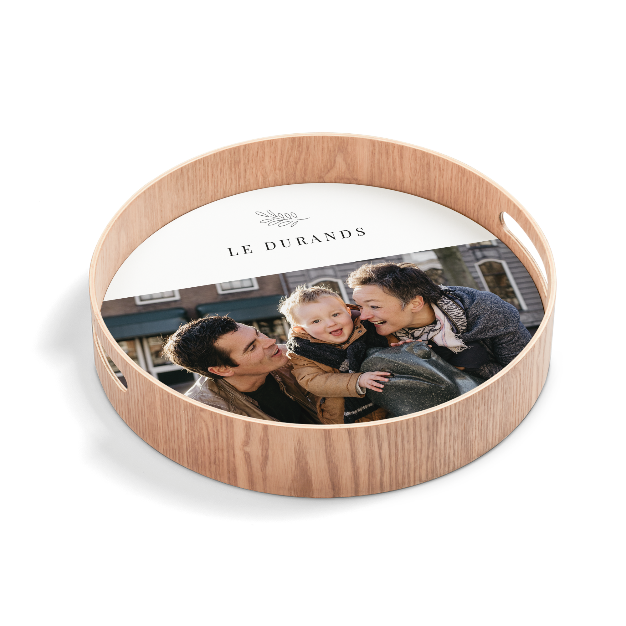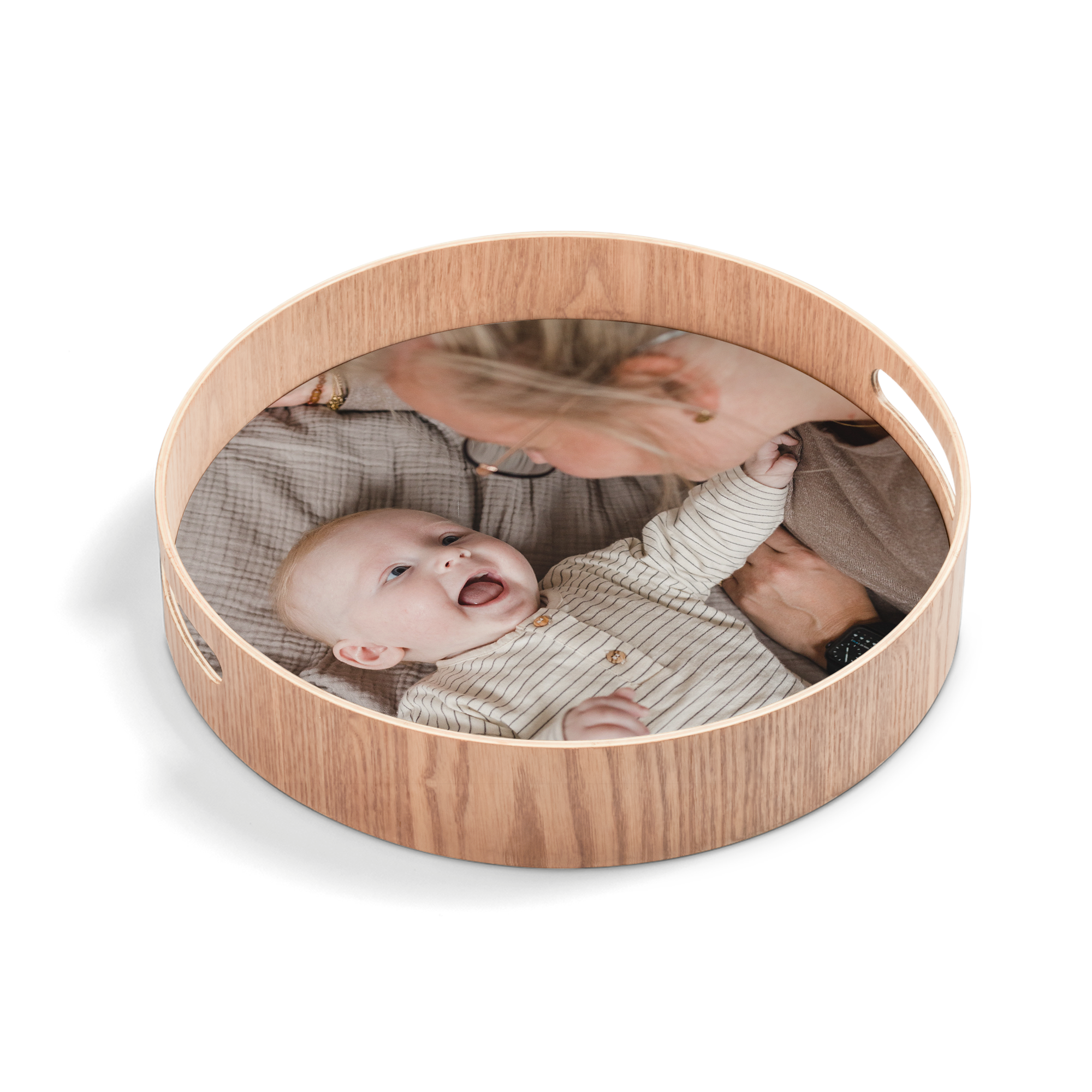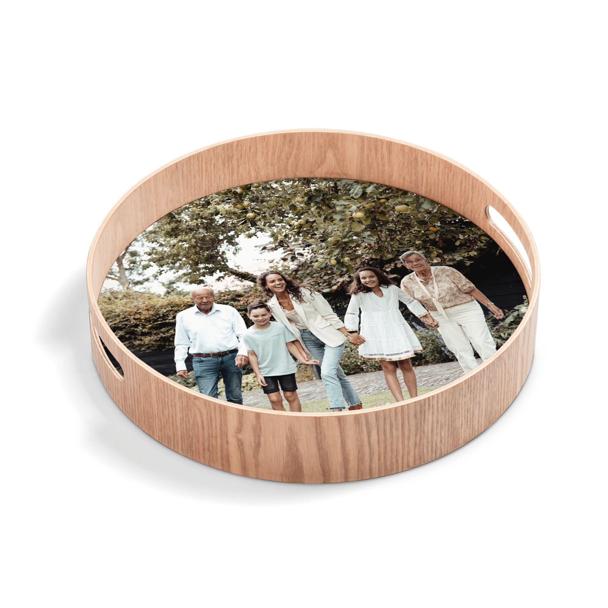 Plus d'informations sur le plateau de service personnalisé :Forme : rondeCouleur : boisMatériau : cadre en bois de luxe (bois de pin) avec base en panneau dur de haute qualitéFinition : brillanteDimensions : 30 x 30 x 5 cmPersonnalisation : avec photo, nom, logo ou collageImpression : parfaite et en couleur