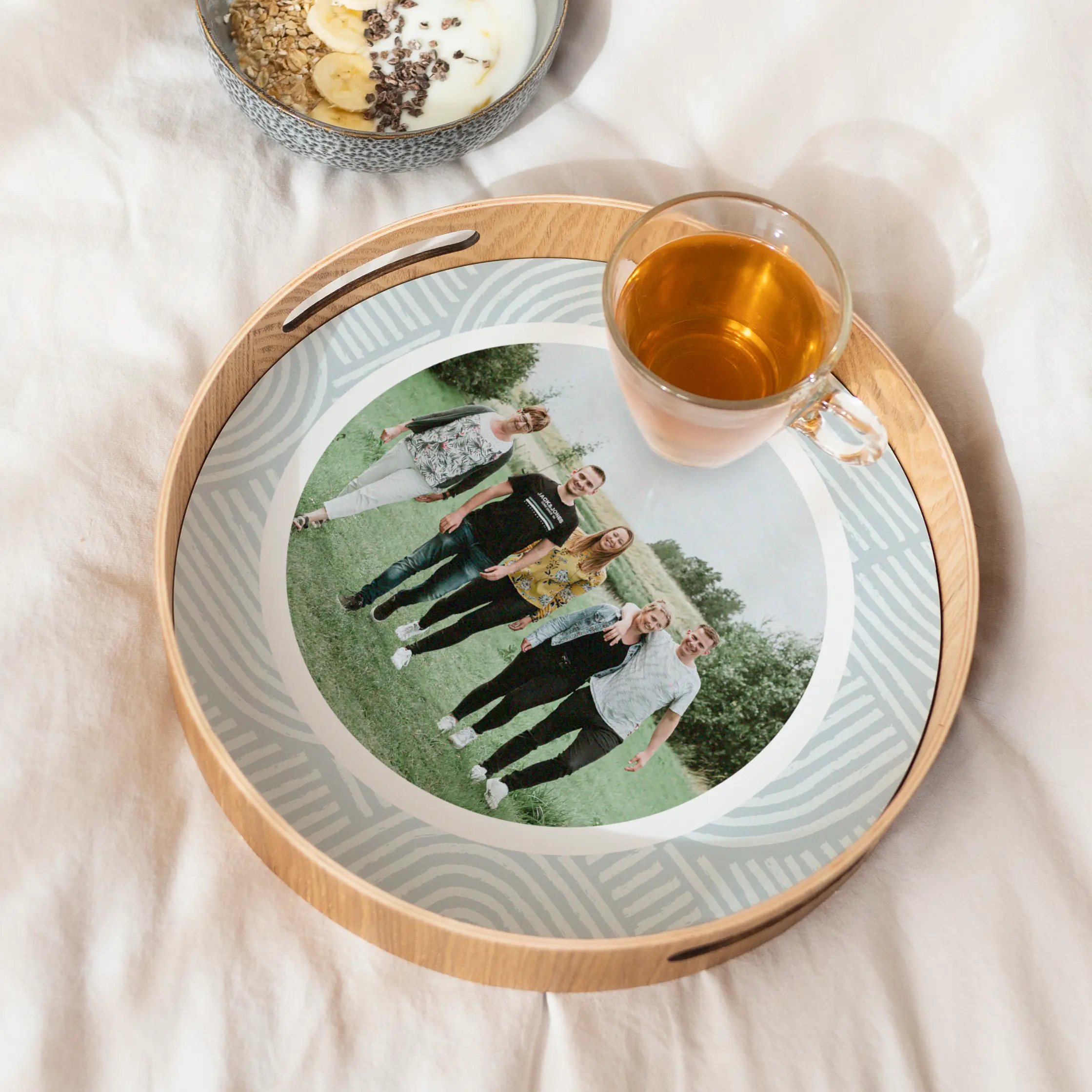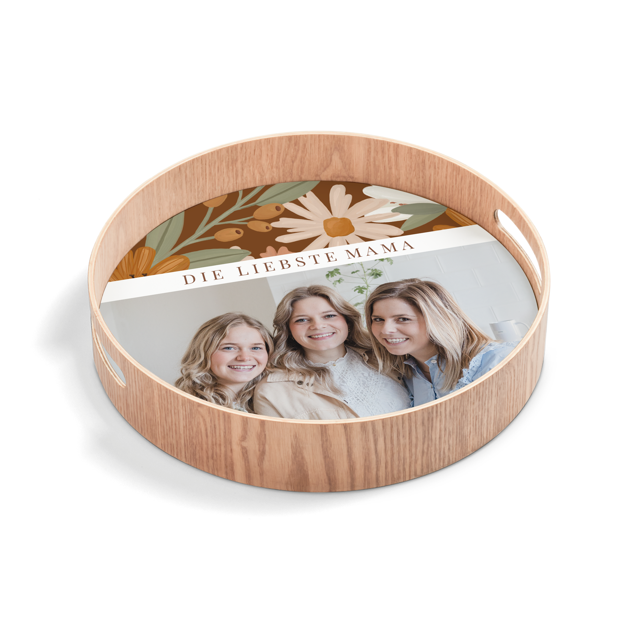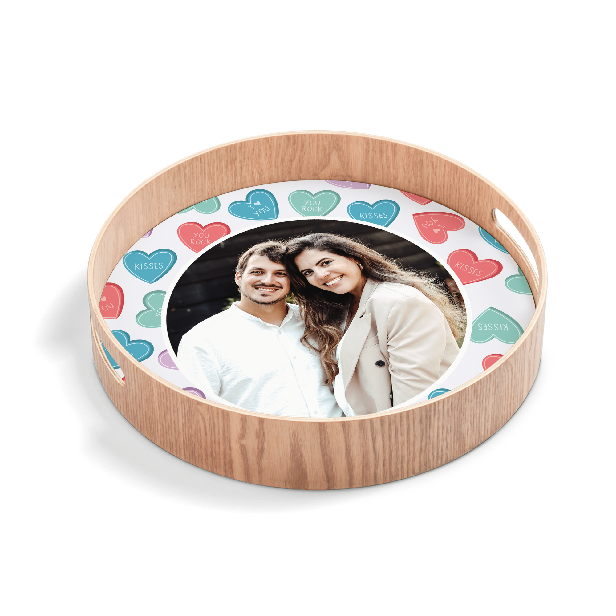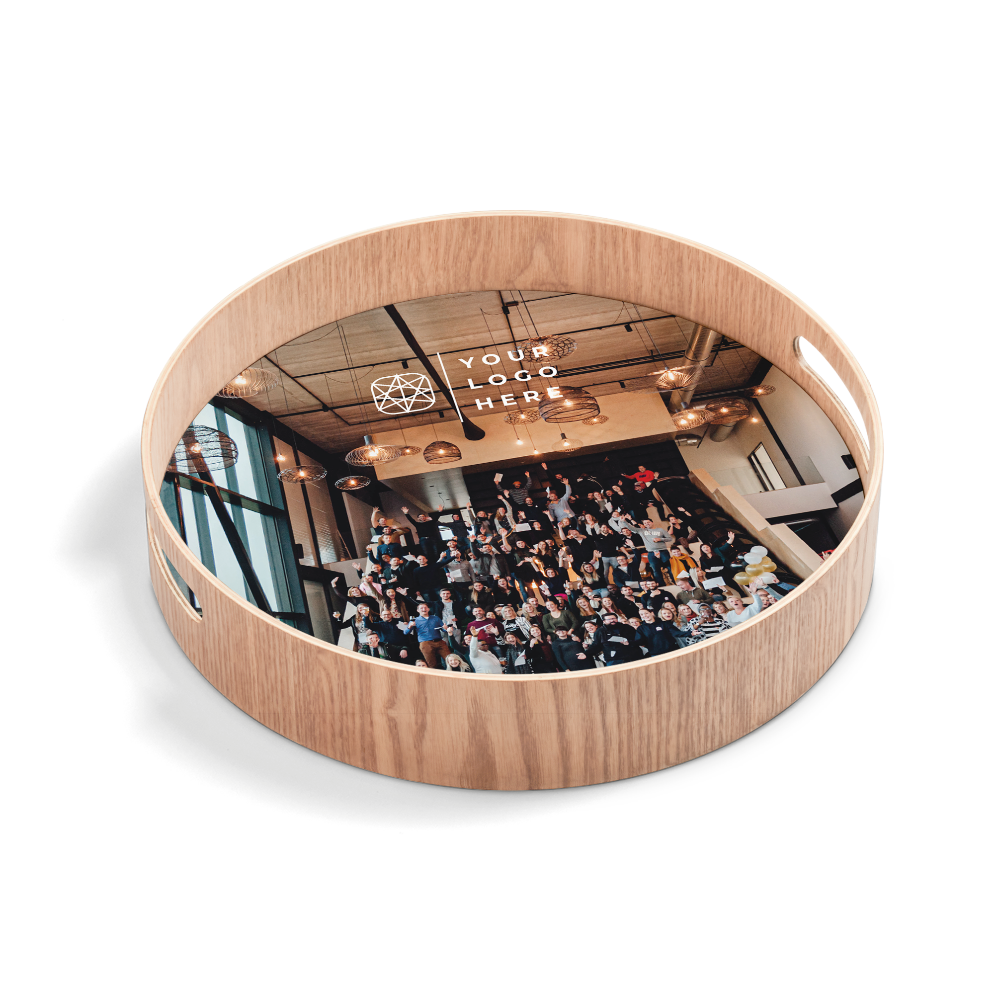 Plus d'informations sur le plateau de service personnalisé :Forme : rondeCouleur : boisMatériau : cadre en bois de luxe (bois de pin) avec base en panneau dur de haute qualitéFinition : brillanteDimensions : 30 x 30 x 5 cmPersonnalisation : avec photo, nom, logo ou collageImpression : parfaite et en couleur