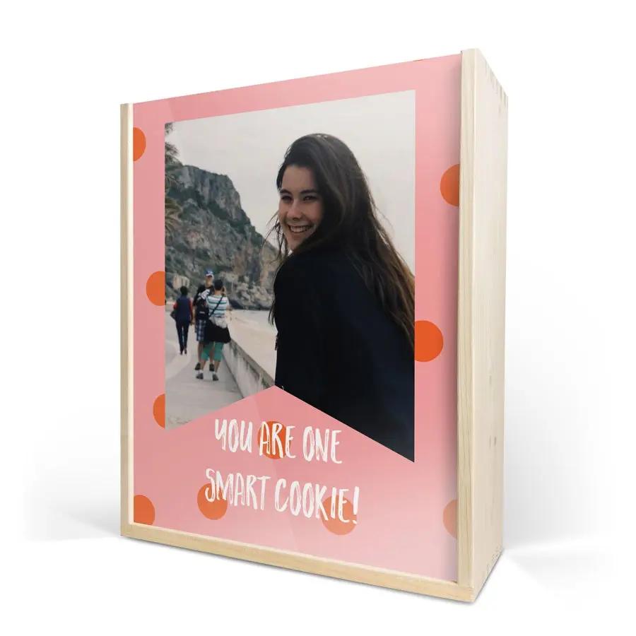 Plus d'informations sur les coupes à champagne : Nombre : 2 pièces Marque : Royal Leerdam Type : L'esprit Hauteur : 21,5 cm Volume : 21 cl Plus d'informations sur le luxueux coffret en bois : Personnalisation : avec photo, collage, logo, nom et/ou texte Emplacement de la personnalisation : sur le couvercle du coffret en bois Impression : image parfaite en couleur Dimensions du coffret : 36,5 x 12 x 11 cm Dimensions du couvercle : 35,6 x 10,5 x 0,3 cm Bonus : le coffret en bois est certifié FSC. Plus d'informations sur le champagne : Nom : Moët & Chandon Type de vin : effervescent Volume : 750 ml Pays d'origine : France Cépages : Pinot Noir, Chardonnay, Pinot Meunier