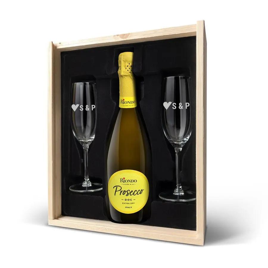 Coffret cadeau de champagne avec verres gravés - Riondo Prosecco Spumante
