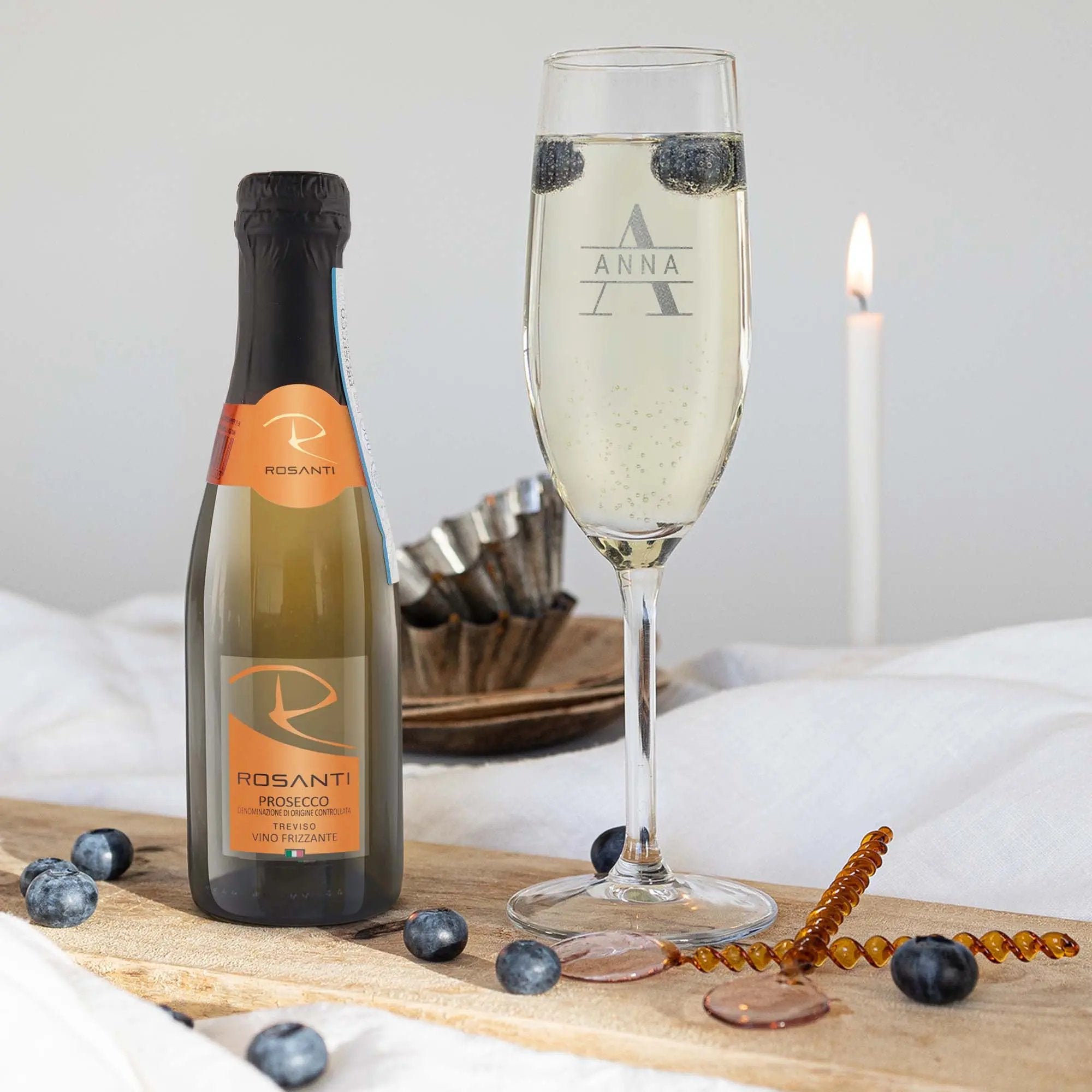 Coffret cadeau mini prosecco avec verre gravé - Rosanti - Vino Frizzante