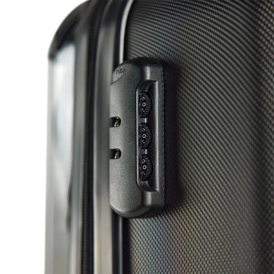 [fort]Accessoires :[/fort] Coque en polycarbonate résistante, roulettes pivotantes silencieuses, serrure à combinaison sécurisée, intérieur spacieux avec poches organisatrices.