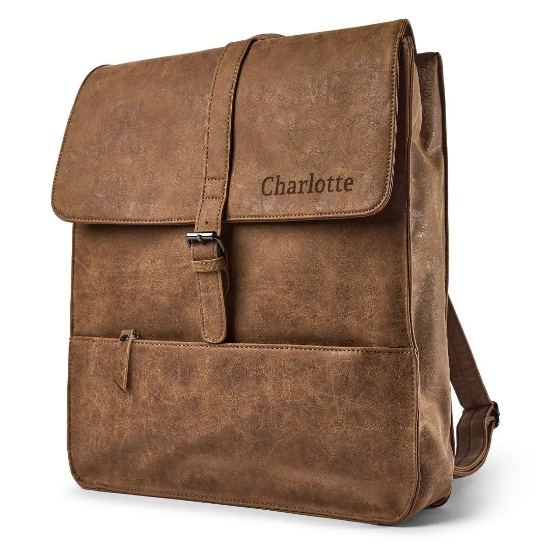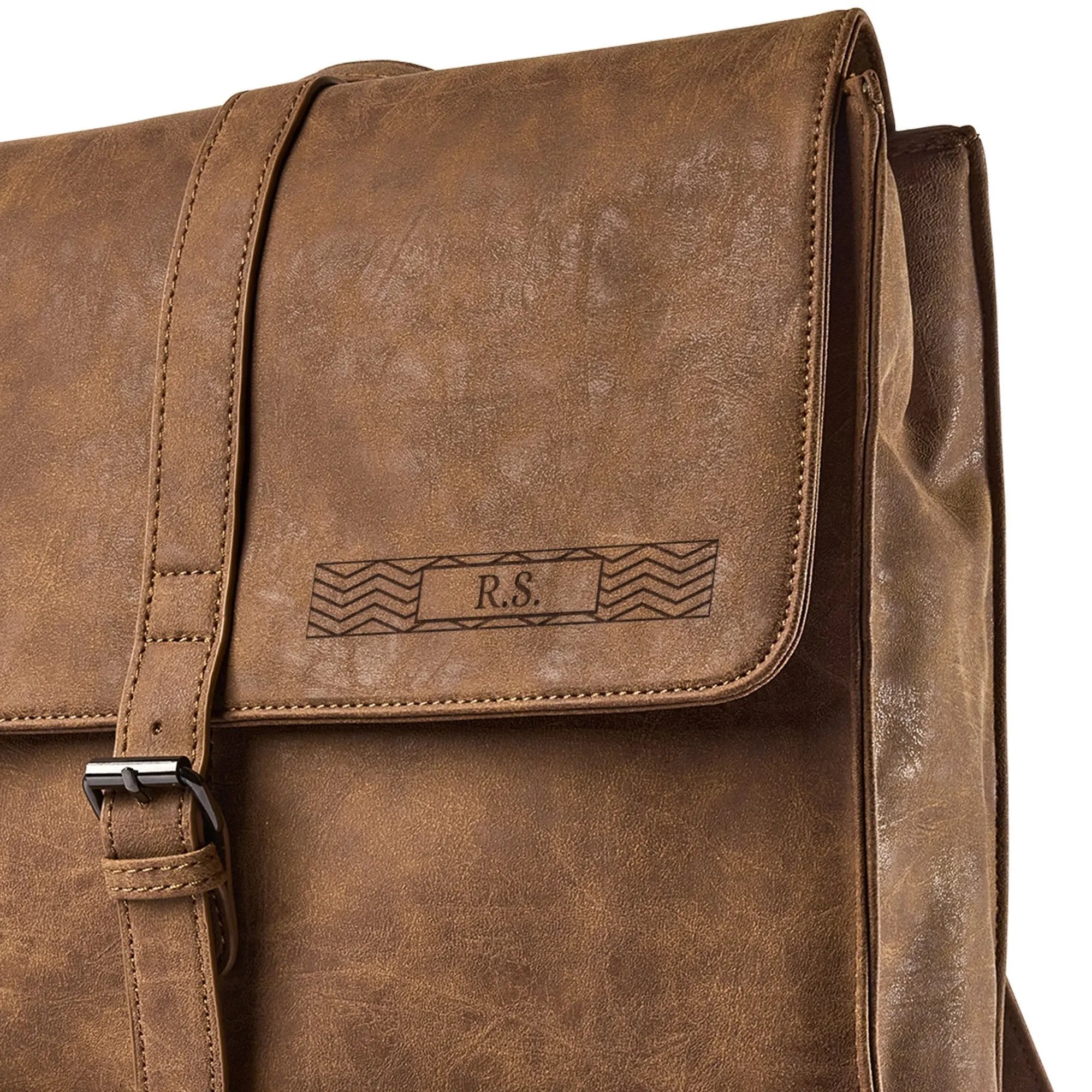 Plus d'informations sur le sac à dos en cuir PU :Matériau : cuir PU durableDimensions : 33 x 9 x 39 cmPoids : 900 grammesCapacité : 12 litresMéthode de personnalisation : gravure laser de haute qualitéPersonnalisation : nom ou texteInformations supplémentaires : comprend un grand compartiment principal pouvant accueillir un ordinateur portable, fermé par un rabat. Compartiment supplémentaire avec fermeture éclair sur le devant. Bretelles réglables.