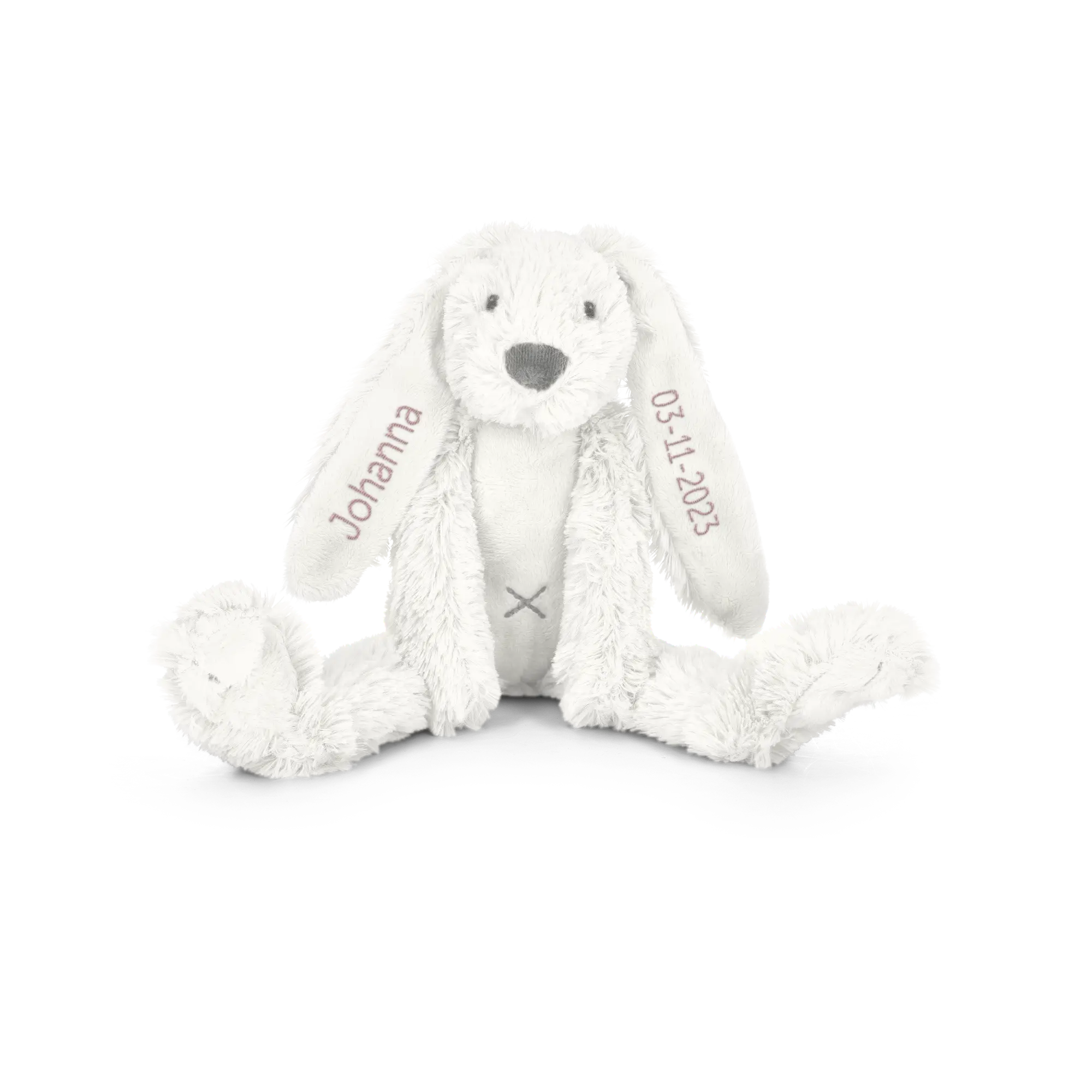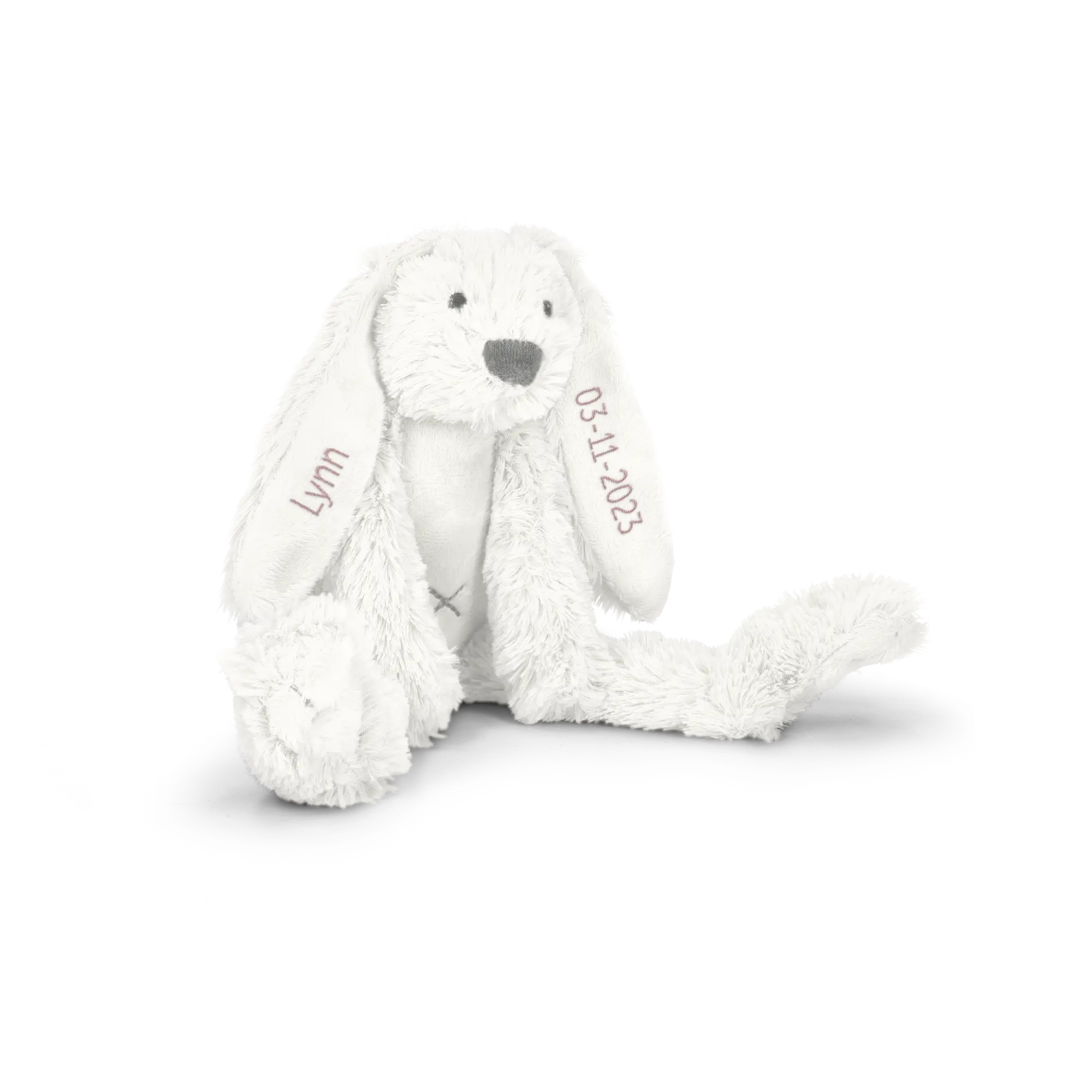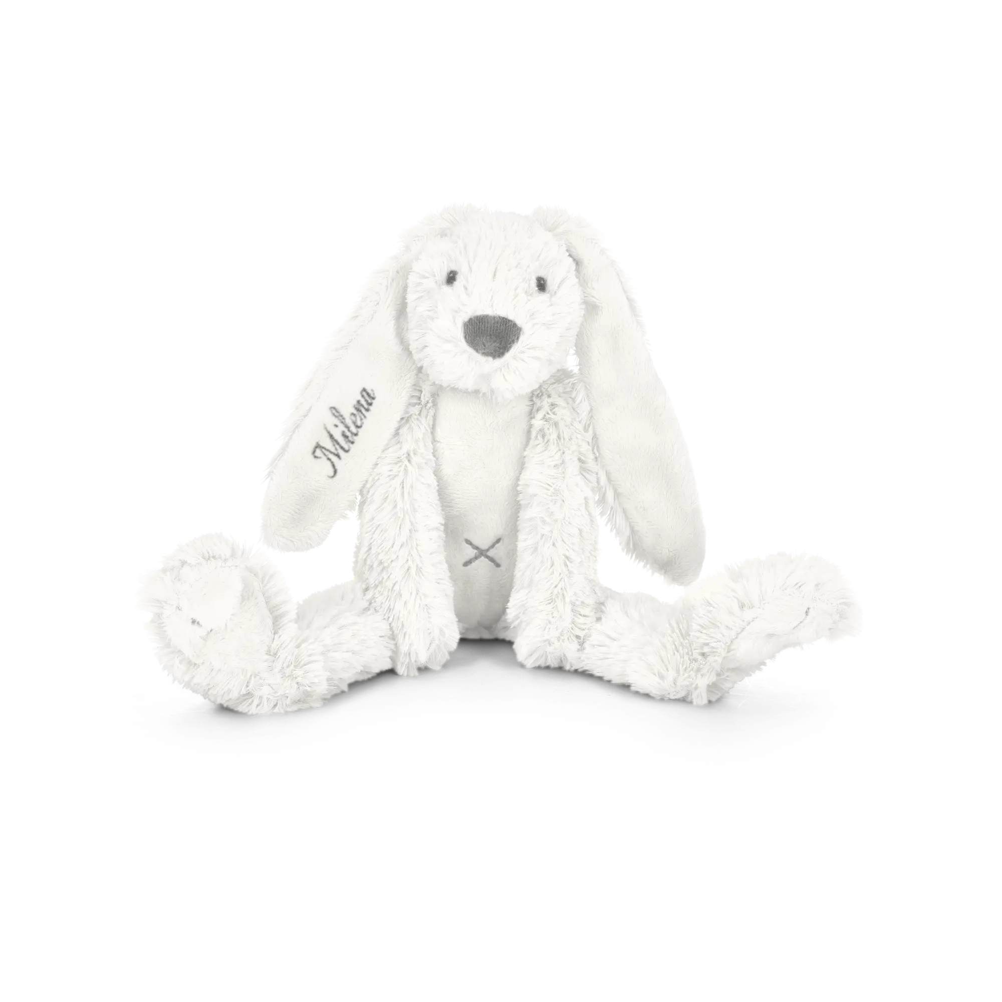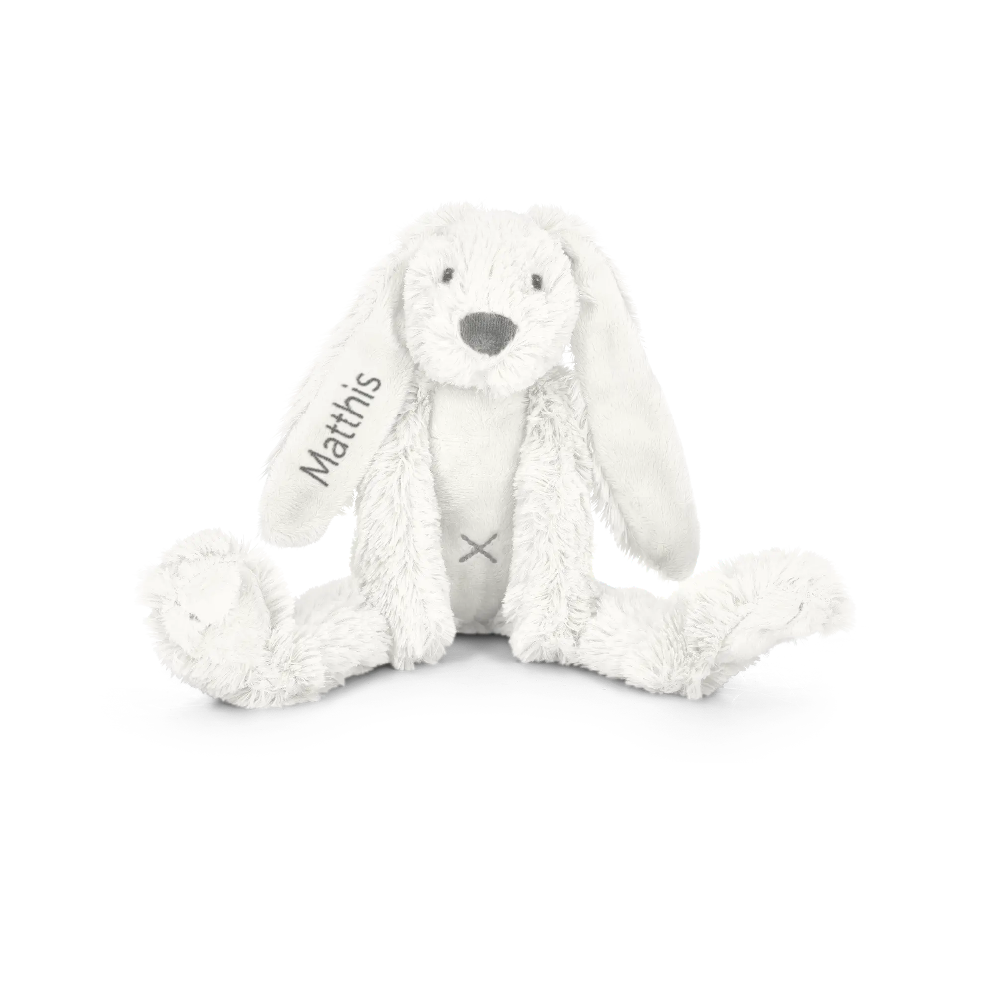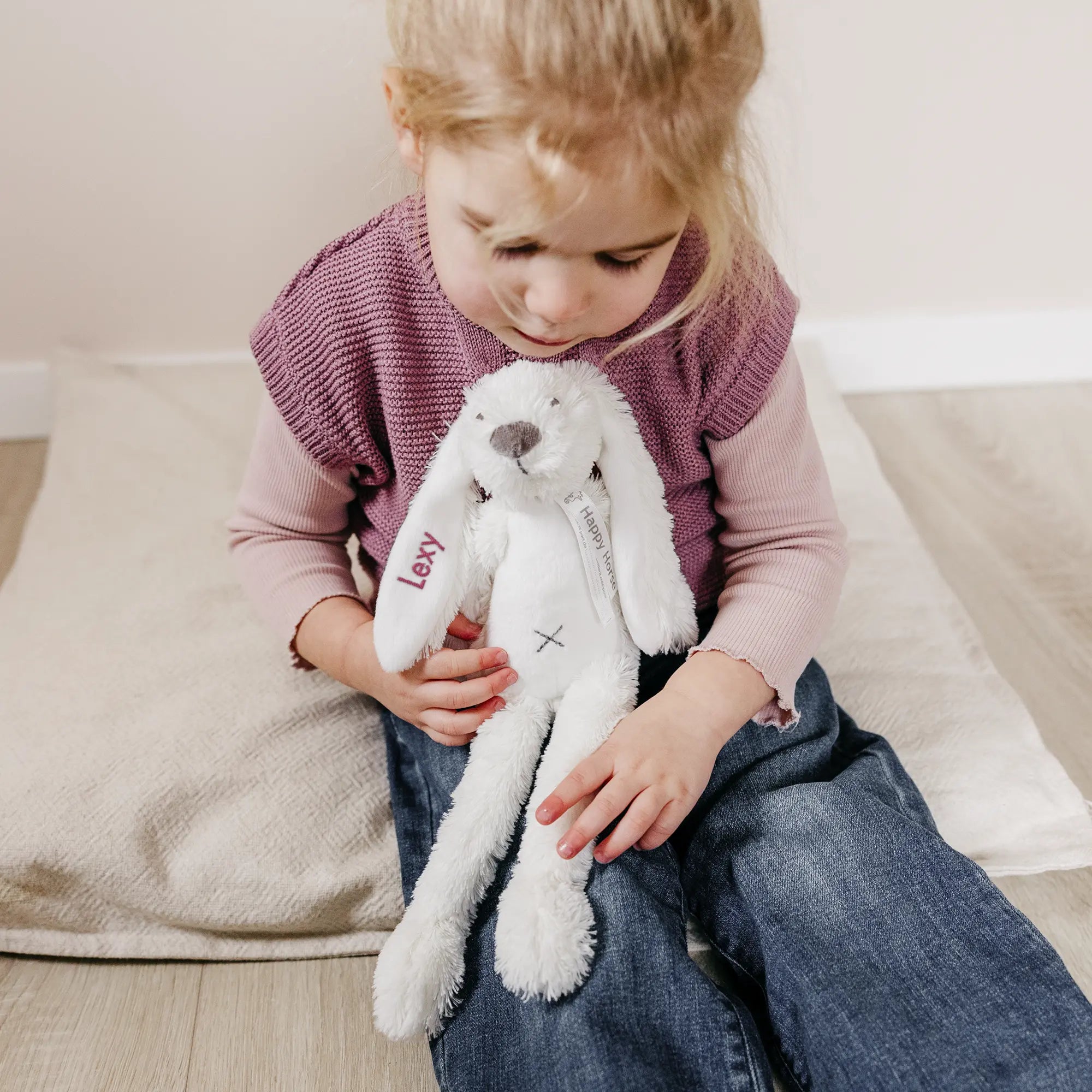 Peluche Lapin Richie personnalisée par Happy Horse, brodée du nom et/ou du texte de votre choix. Plusieurs coloris disponibles. Idéale pour les enfants. Plus d'informations sur la peluche : Matière : 100 % polyester, douce et moelleuse. Taille : 28 cm. Personnalisation : avec nom ou texte. Méthode de personnalisation : broderie de haute qualité sur l'oreille droite. Certifiée CE : cette peluche répond aux exigences légales relatives aux jouets pour enfants, ce qui la rend totalement sûre. Marque : Happy Horse. Bon à savoir : l'oreille gauche est également personnalisable. Conseils de lavage : cette peluche ne passe pas au sèche-linge. Lavez-la en machine à 30 °C et laissez-la sécher à l'air libre. Attention : la broderie est visible à l'arrière de l'oreille.