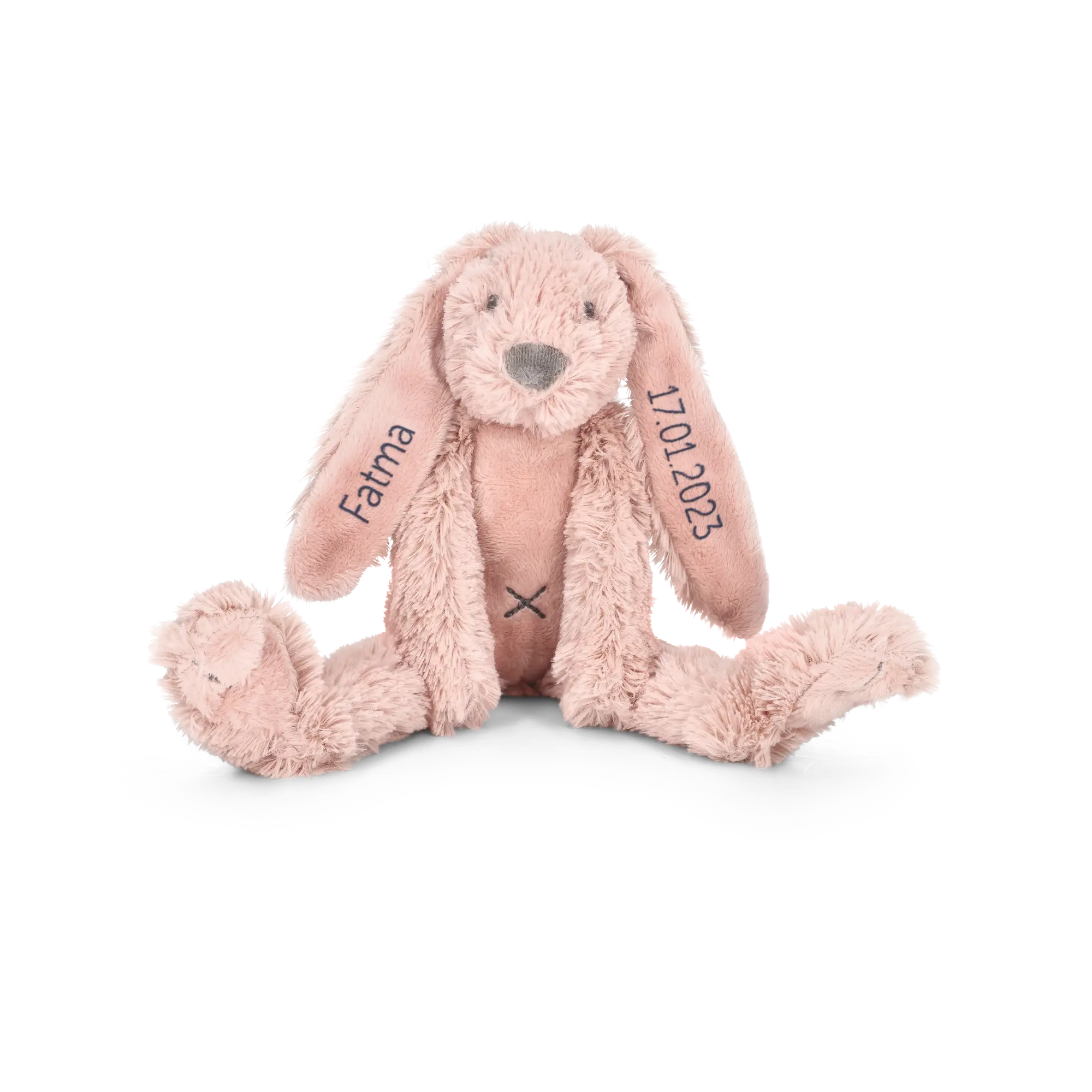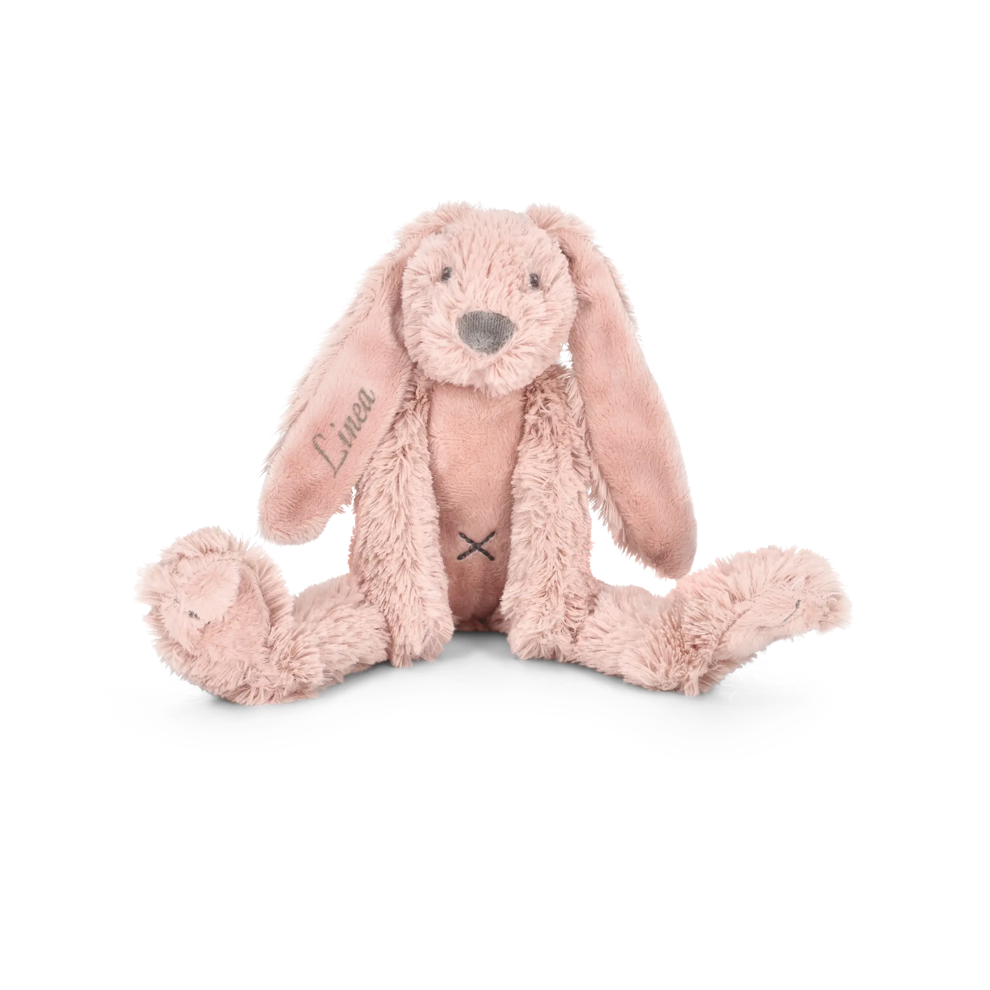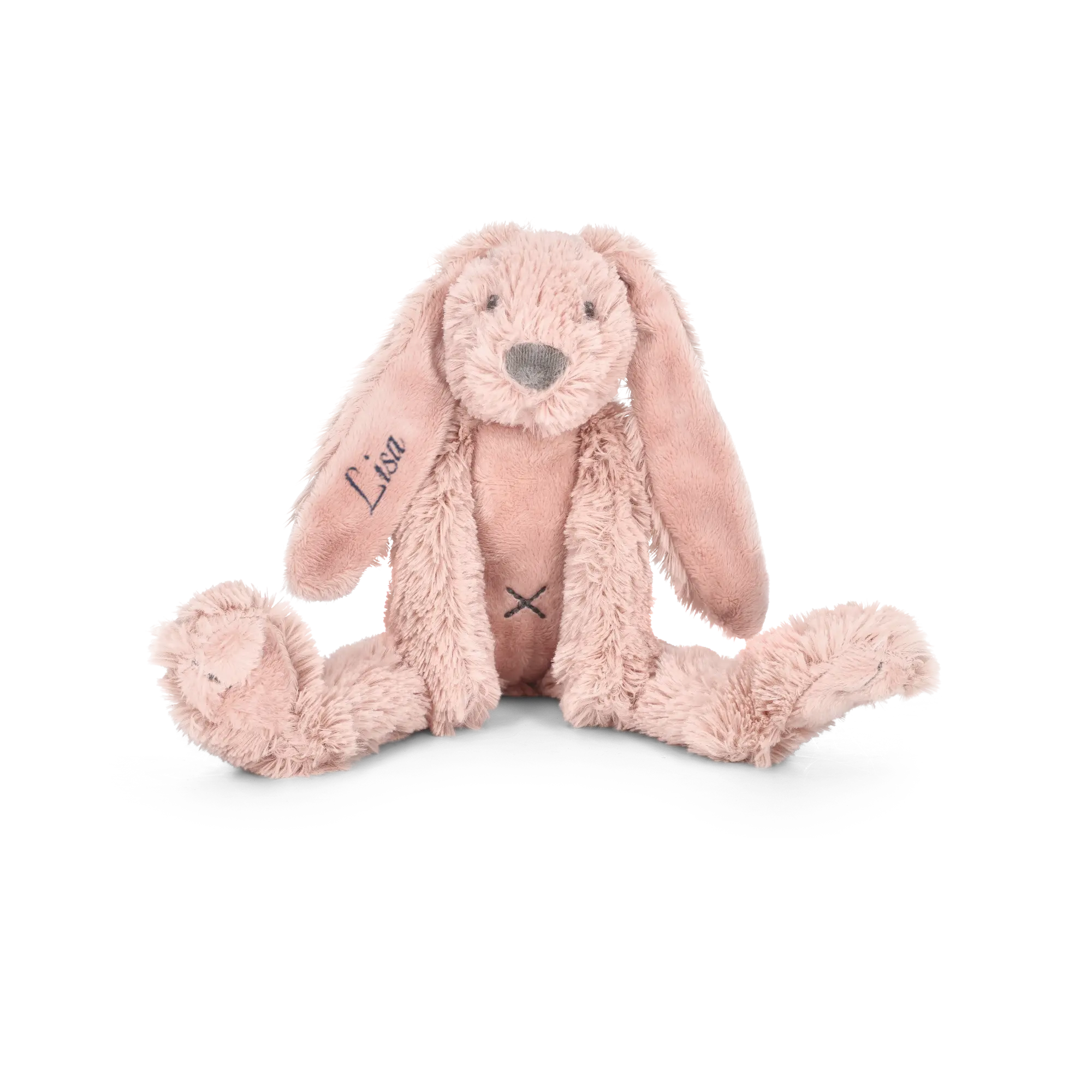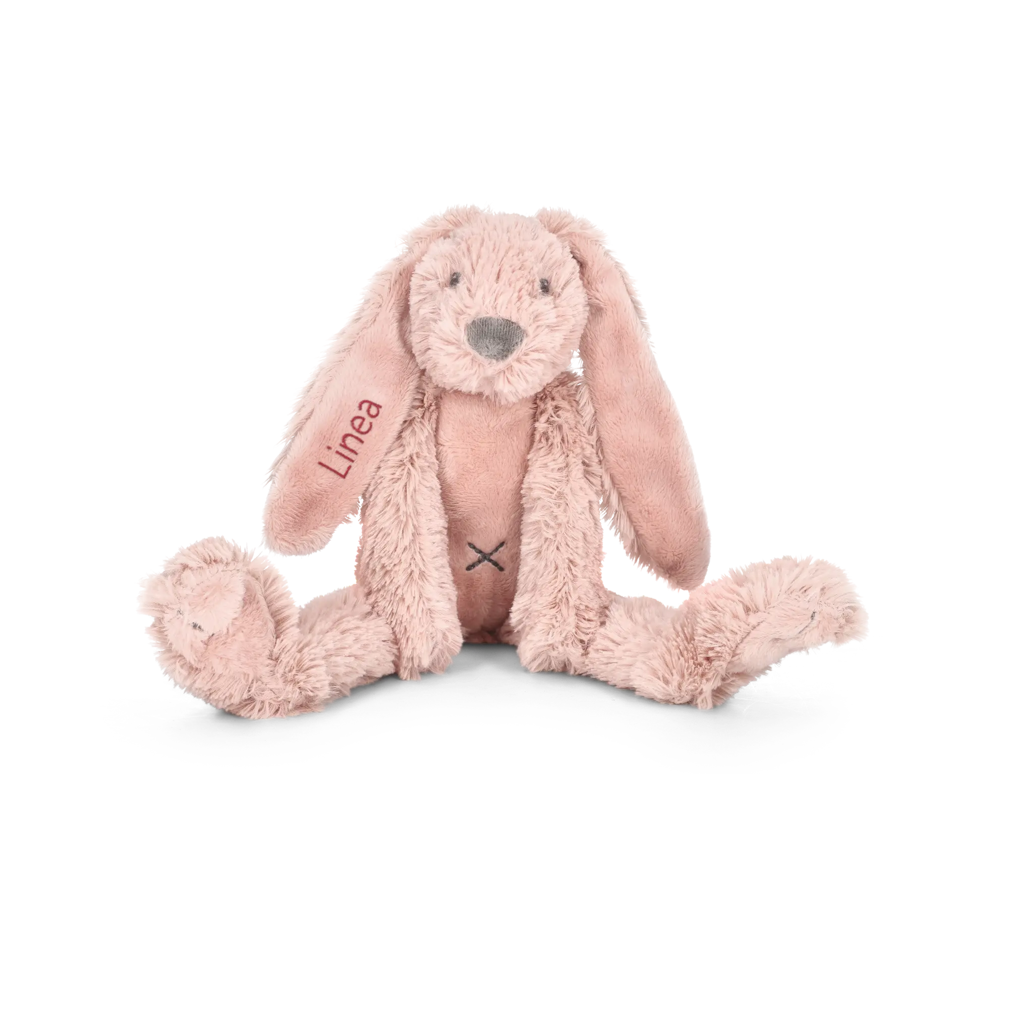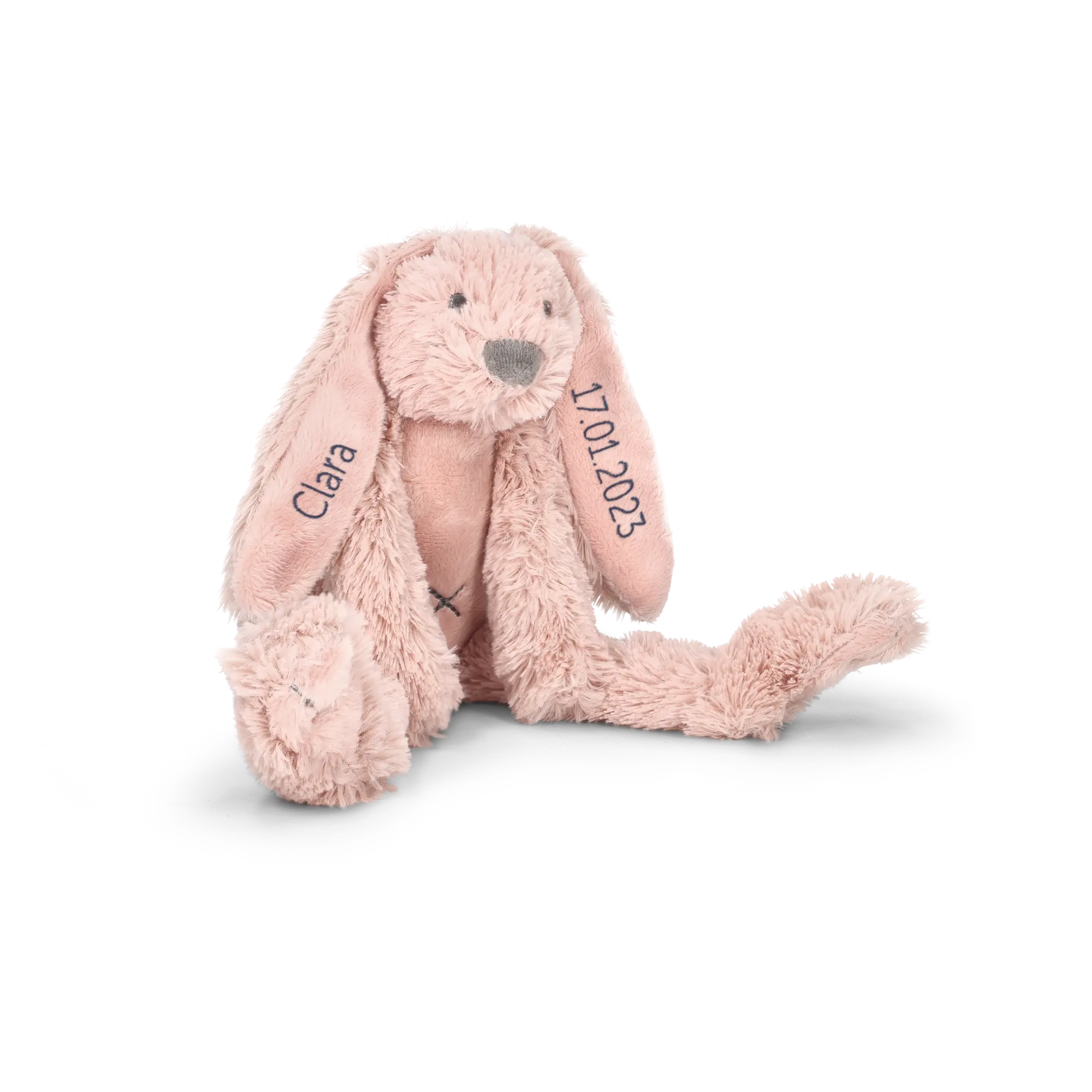 Peluche Lapin Richie personnalisée par Happy Horse, brodée du nom et/ou du texte de votre choix. Plusieurs coloris disponibles. Idéale pour les enfants. Plus d'informations sur la peluche : Matière : 100 % polyester, douce et moelleuse. Taille : 28 cm. Personnalisation : avec nom ou texte. Méthode de personnalisation : broderie de haute qualité sur l'oreille droite. Certifiée CE : cette peluche répond aux exigences légales relatives aux jouets pour enfants, ce qui la rend totalement sûre. Marque : Happy Horse. Bon à savoir : l'oreille gauche est également personnalisable. Conseils de lavage : cette peluche ne passe pas au sèche-linge. Lavez-la en machine à 30 °C et laissez-la sécher à l'air libre. Attention : la broderie est visible à l'arrière de l'oreille.