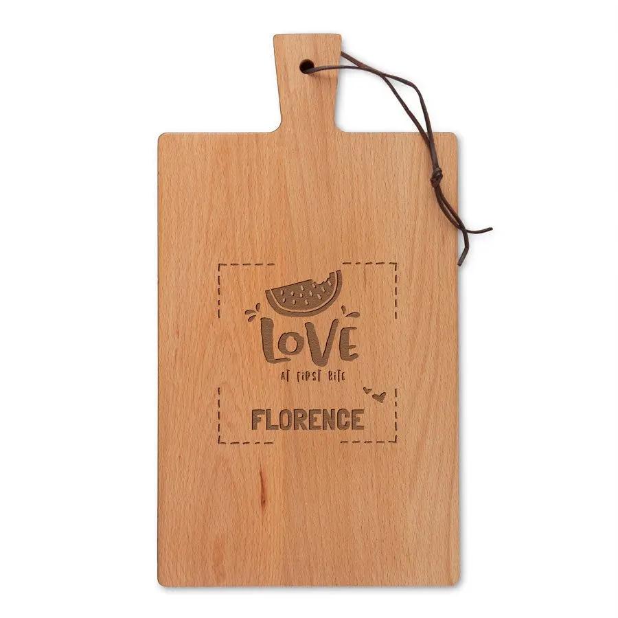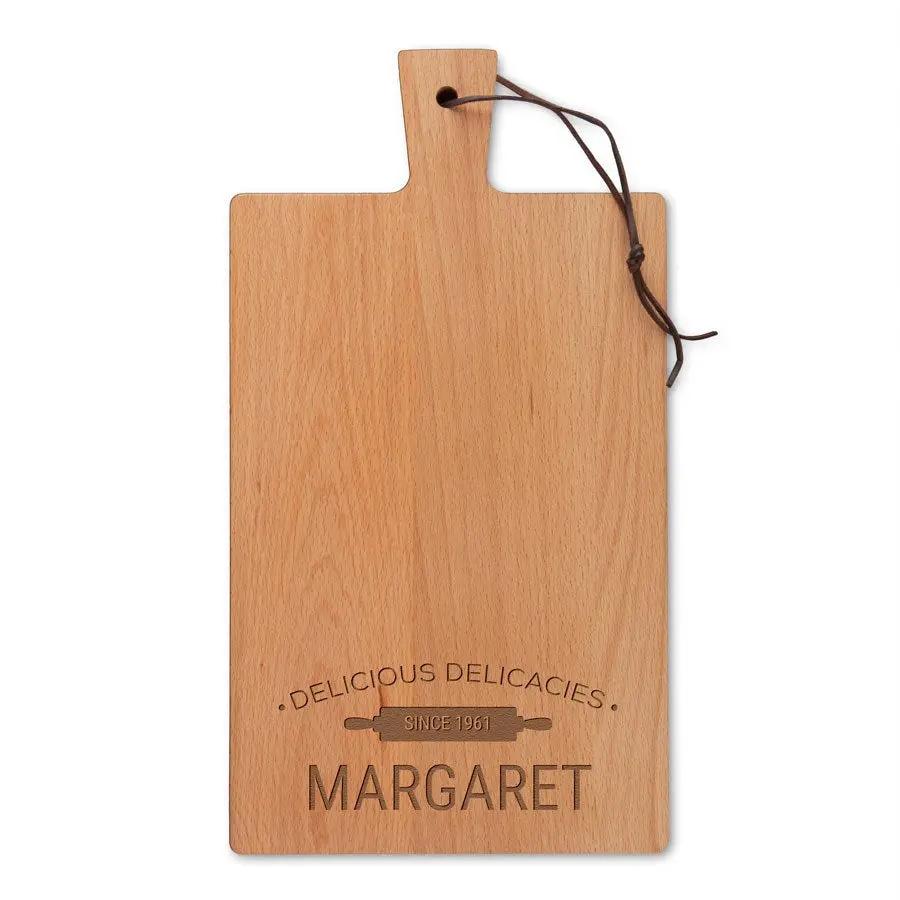 Créez un plateau de service unique en bois de hêtre. Un cadeau personnalisé avec nom, texte et motifs. Disponible en différents formats !