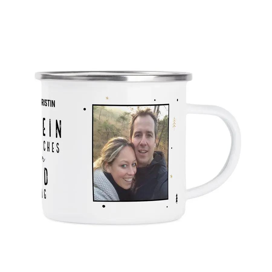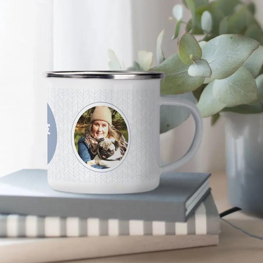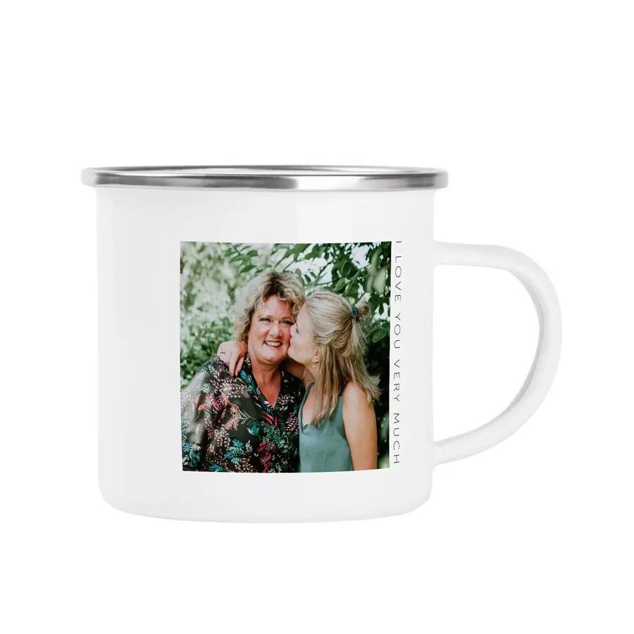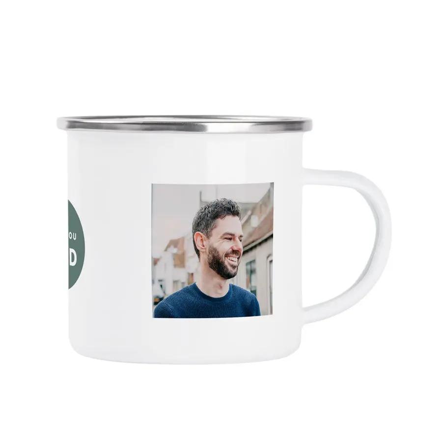 Très tendance et rétro avec ce mug en émail imprimé. Personnalisez-le avec une photo, un nom et/ou un texte. Le cadeau idéal pour tous !
