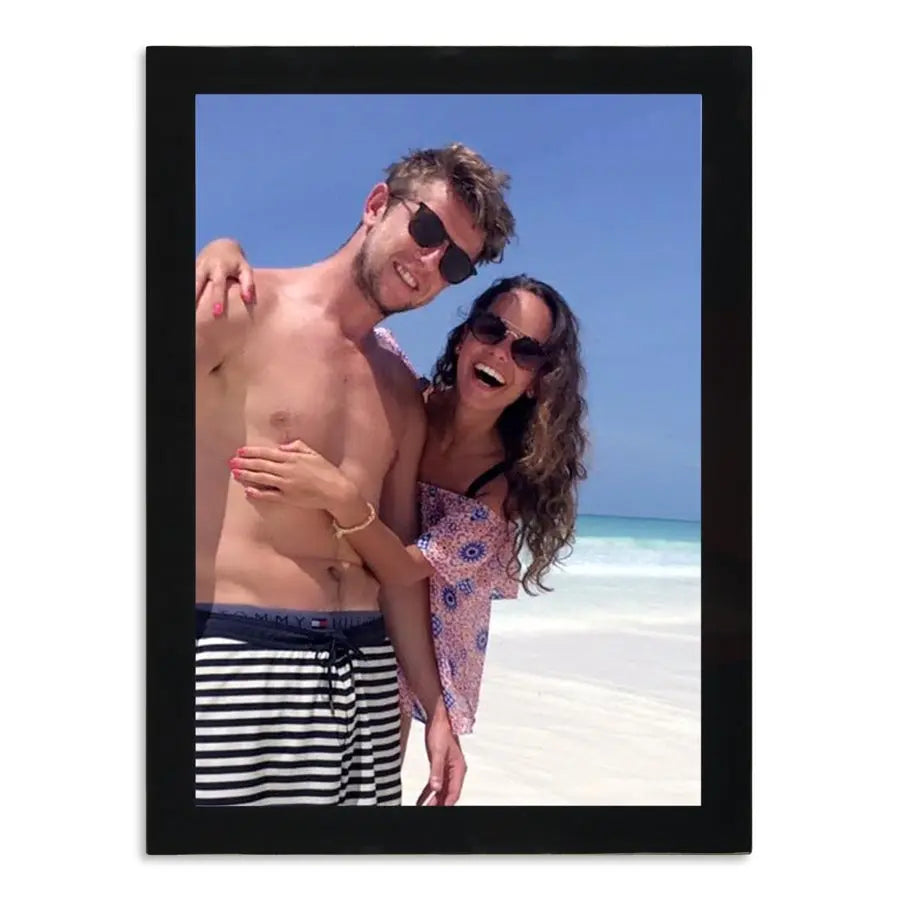 Plus d'informations sur les cadres photo en verre avec photo : Matériau : verre haut de gamme avec cadre noir Dimensions : 30 x 40 cm Épaisseur : 7 mm Impression : impression photo couleur parfaite Système de montage : bloc de montage synthétique interchangeable Extra : vous pouvez facilement nettoyer votre cadre photo avec un chiffon sec et un nettoyant pour vitres