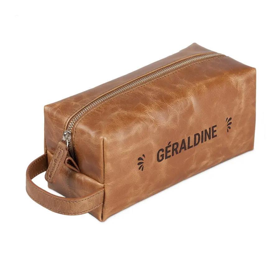 Plus d'informations sur la trousse de toilette en cuir gravée :