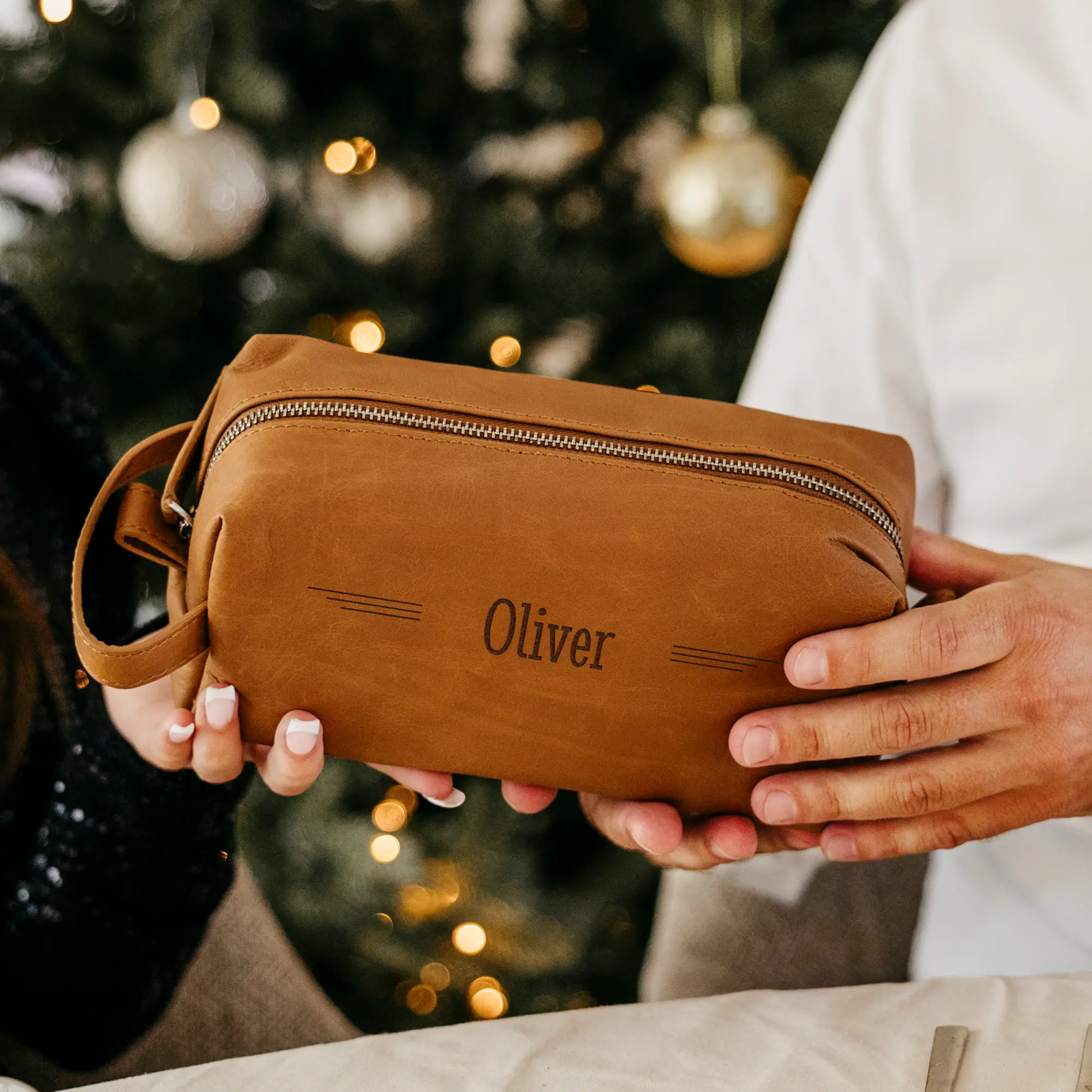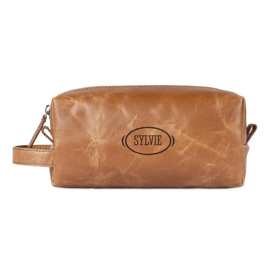 Range tous tes accessoires préférés dans cette magnifique trousse de toilette luxueuse en cuir. Gravure personnalisée avec ton nom ou un texte.