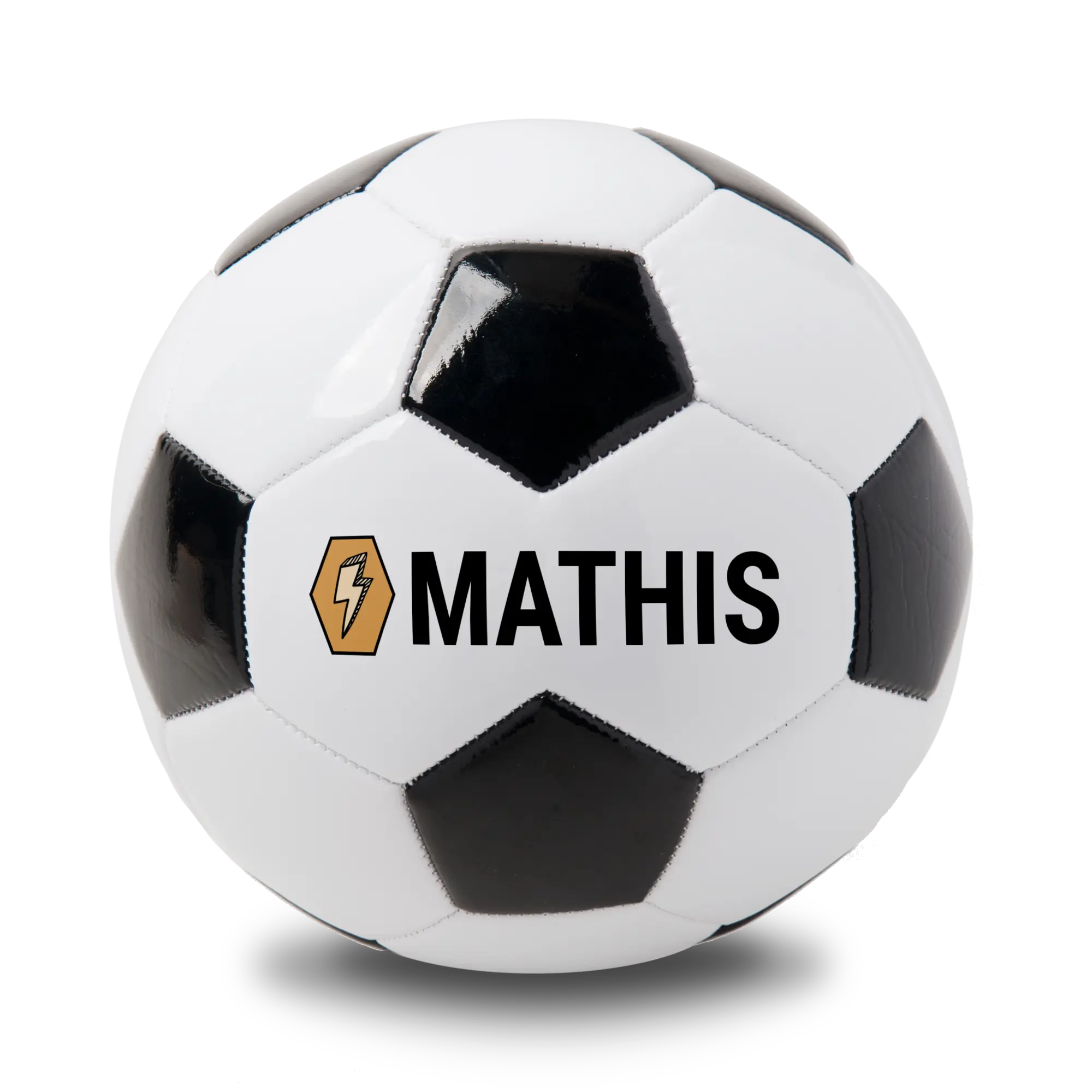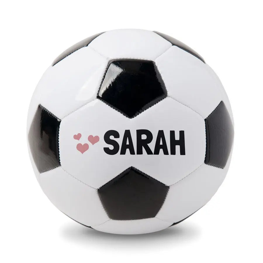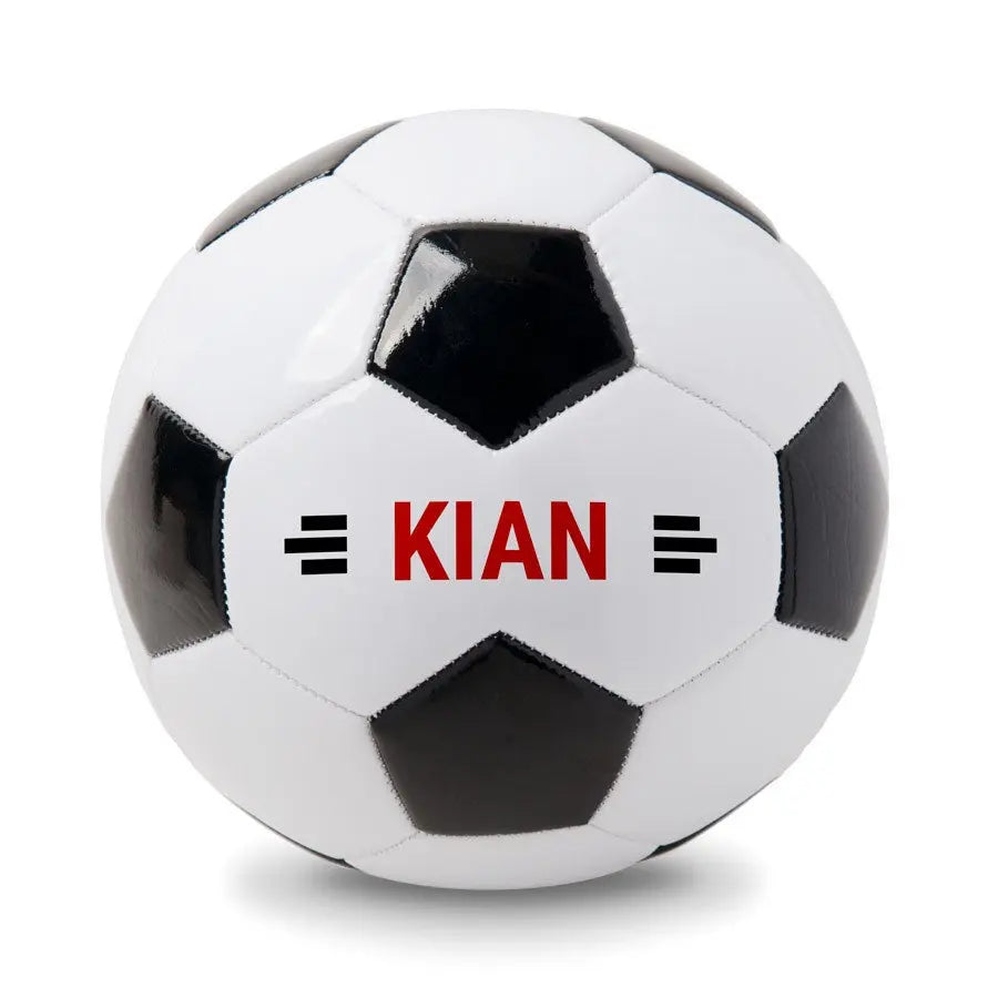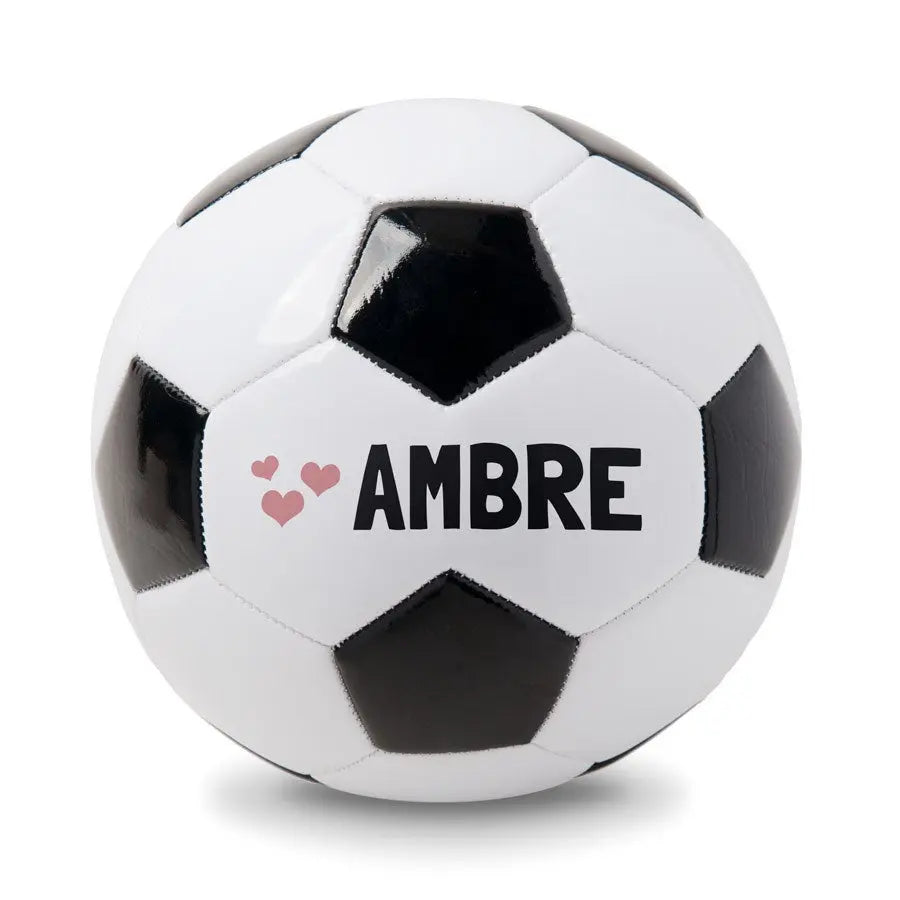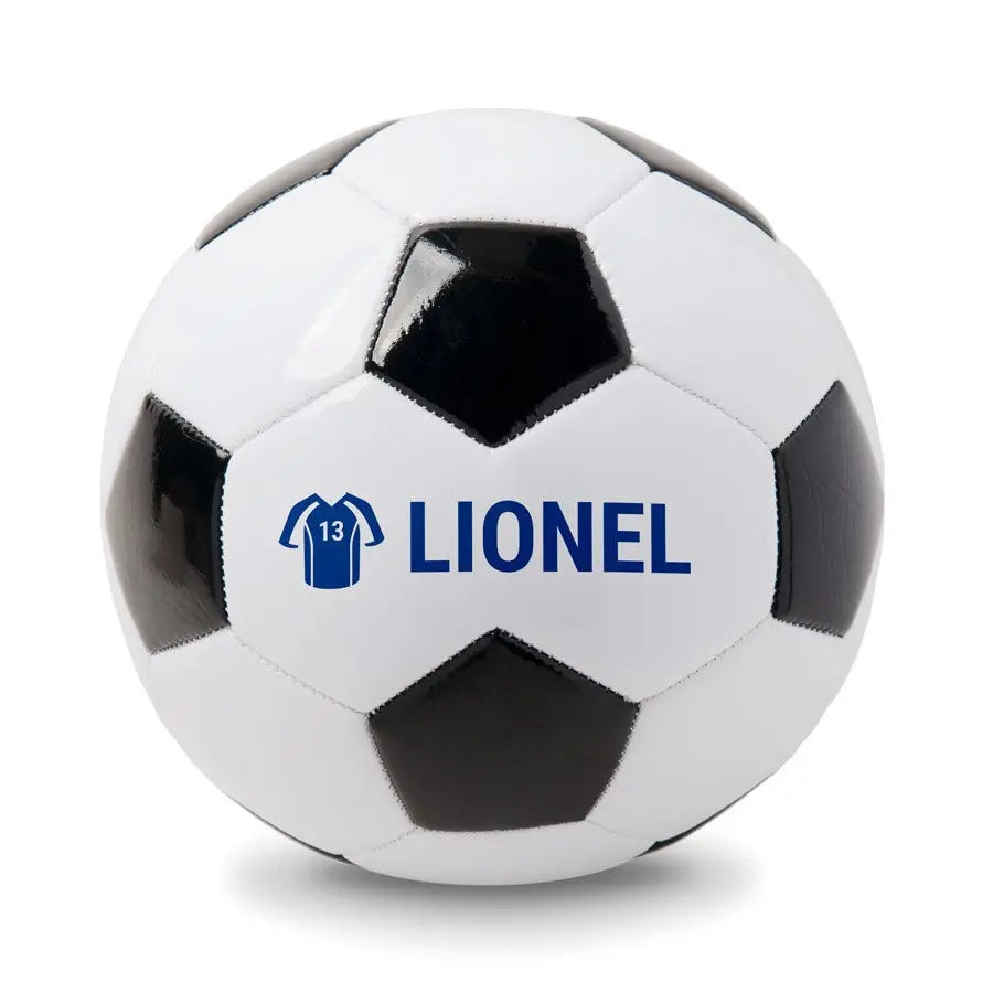 Ballon de football personnalisé avec les détails du nom :Matériau : PVC de haute qualité de 2,7 mm d'épaisseurFinition : finition brillanteTaille du ballon : 5Couleur du ballon : blanc avec panneaux noirsPersonnalisation : avec un nomImpression : en détails nets et en couleurBon à savoir : Utiliser le ballon uniquement sur l'herbe conservera l'impression en bon état plus longtemps.