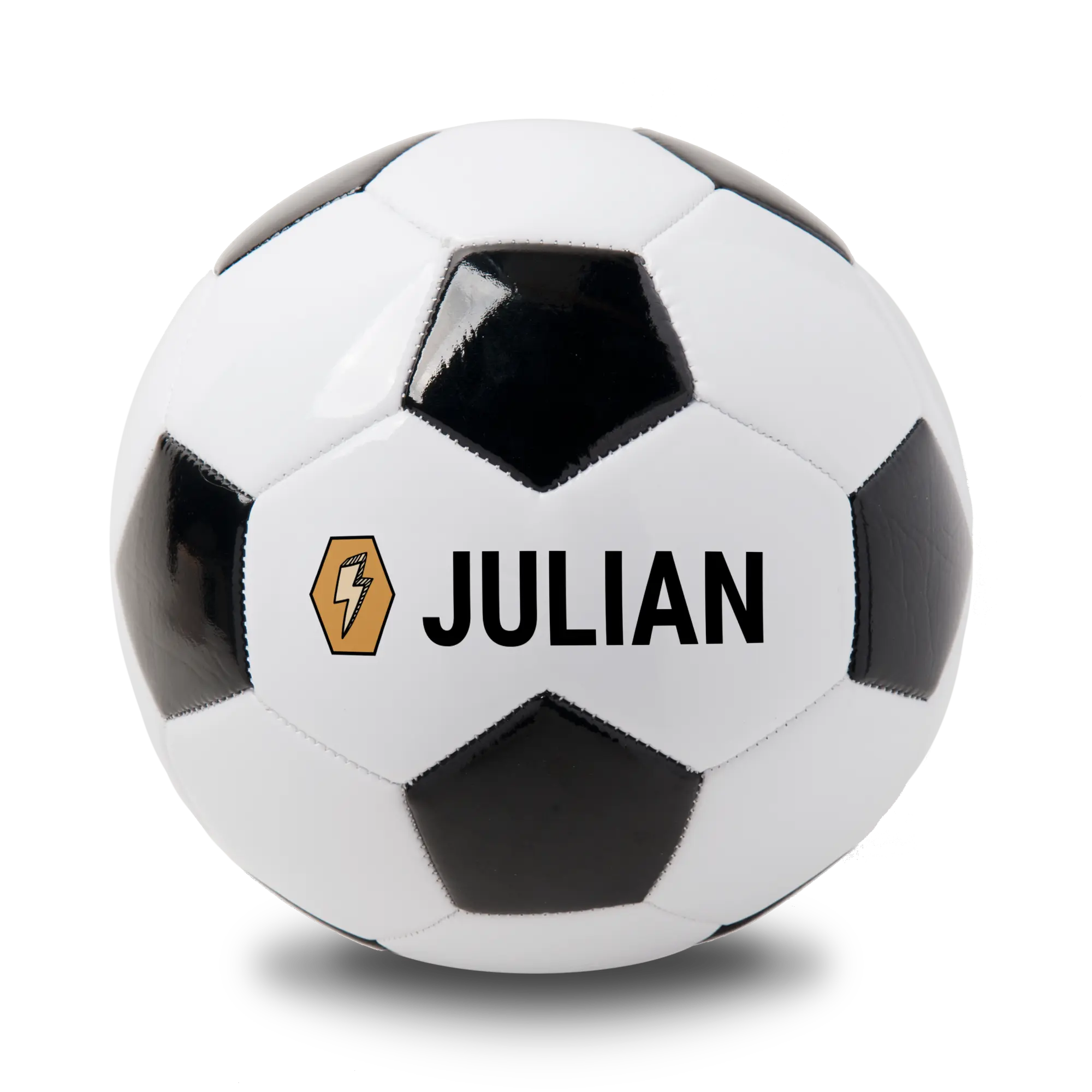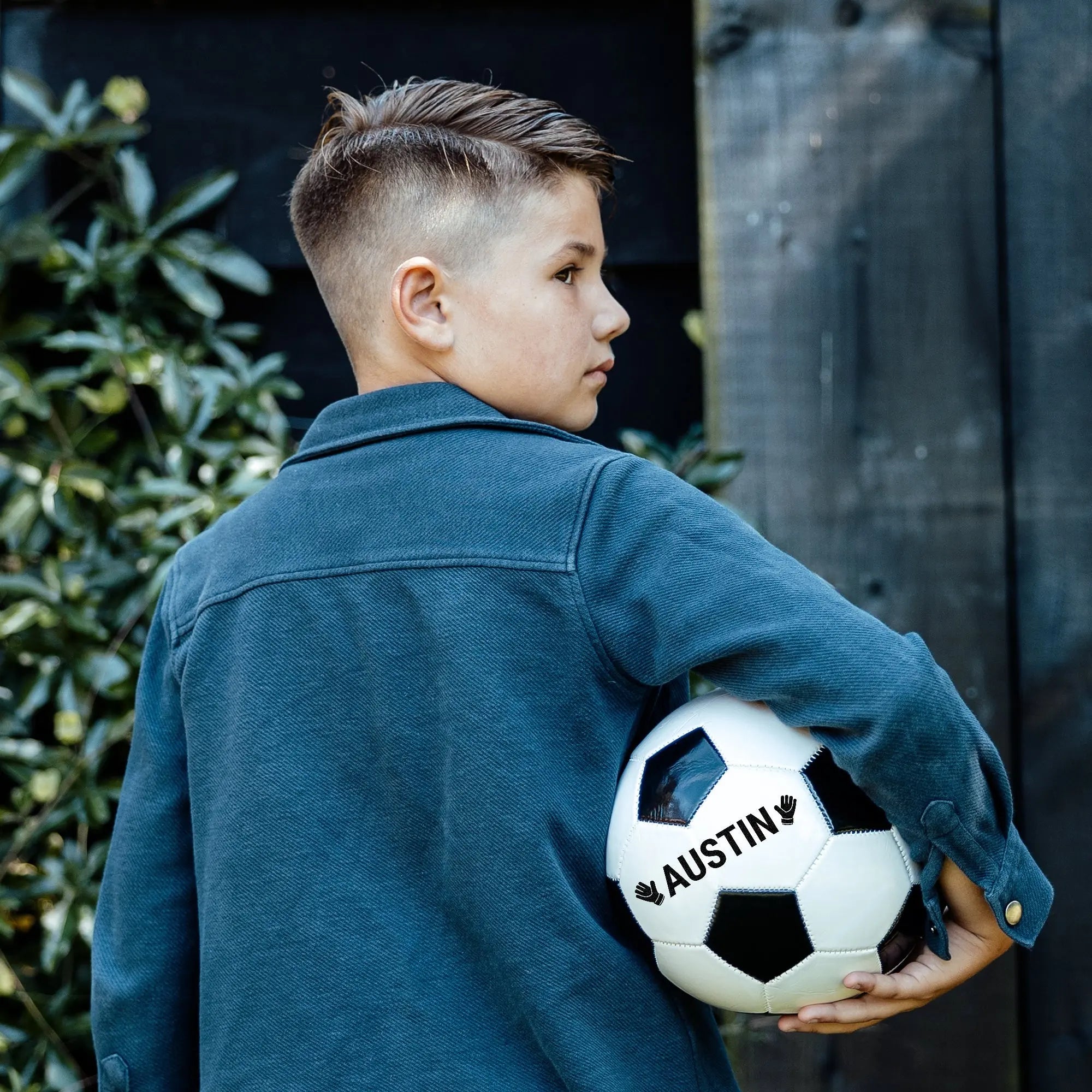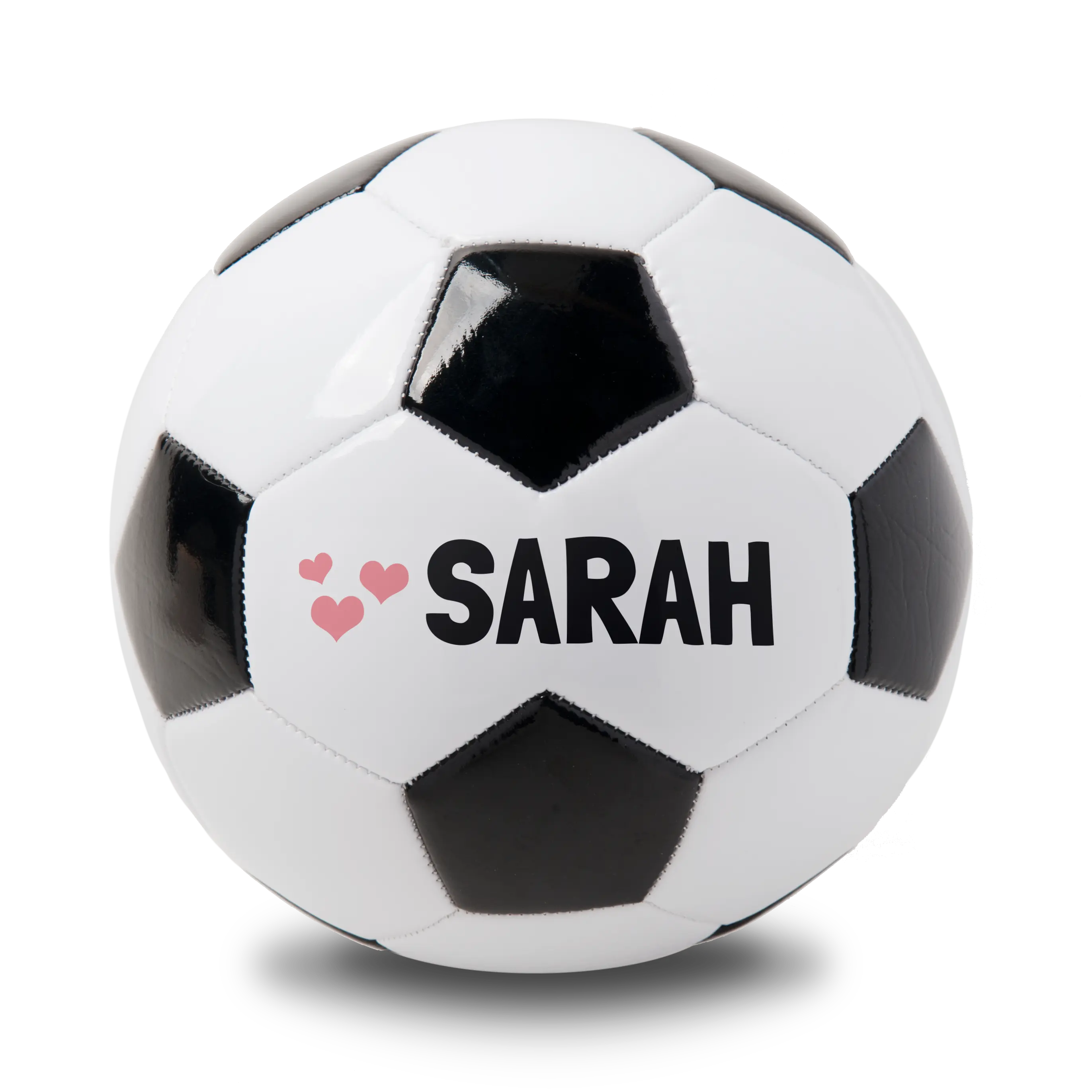 Ballon de football personnalisé avec les détails du nom :Matériau : PVC de haute qualité de 2,7 mm d'épaisseurFinition : finition brillanteTaille du ballon : 5Couleur du ballon : blanc avec panneaux noirsPersonnalisation : avec un nomImpression : en détails nets et en couleurBon à savoir : Utiliser le ballon uniquement sur l'herbe conservera l'impression en bon état plus longtemps.