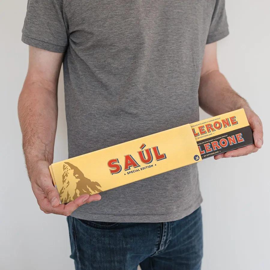 Cette barre Sélection Toblerone comprend 8 barres de chocolat Toblerone déclinées en 3 saveurs différentes. Personnalisable, elle arbore votre photo, votre nom et le message de votre choix !