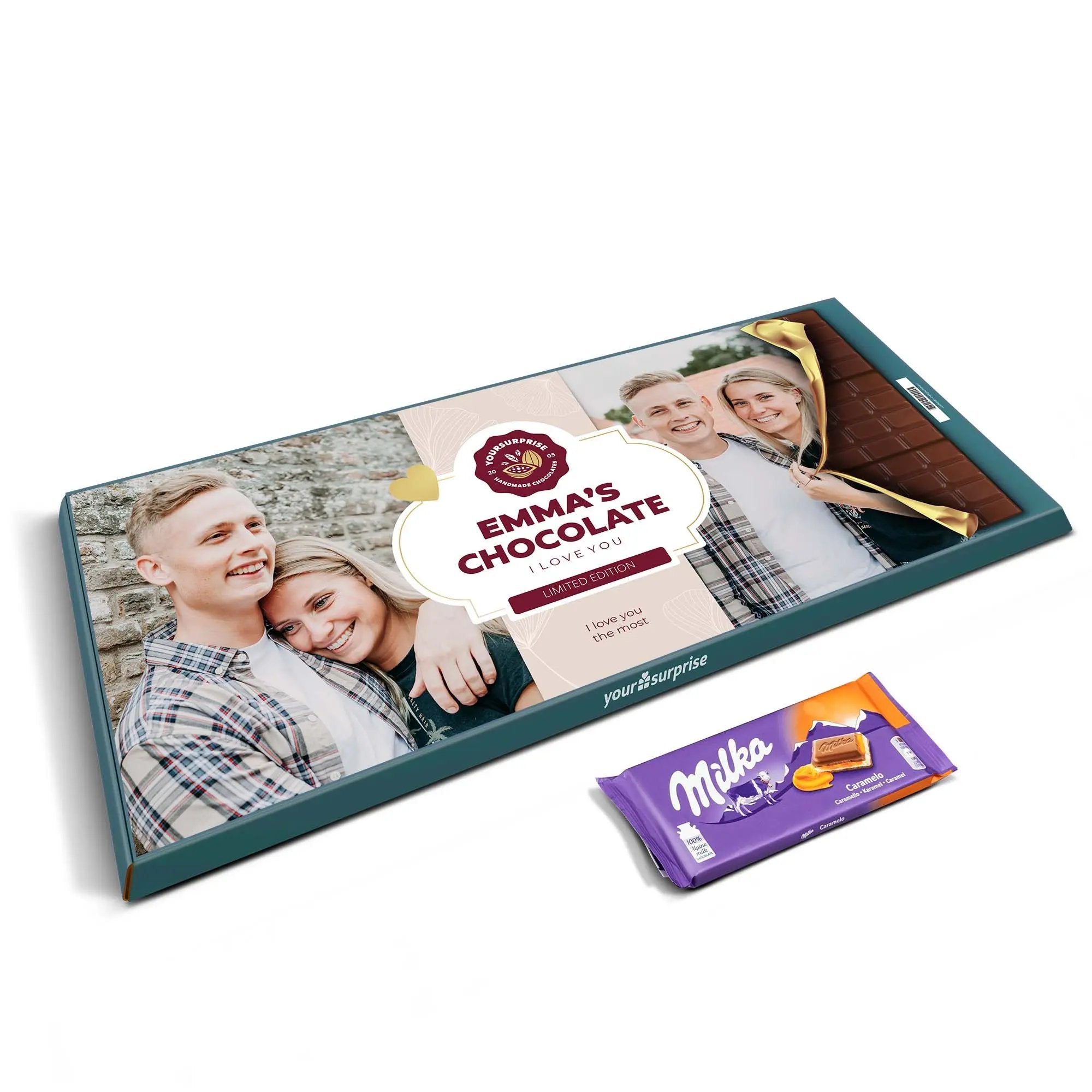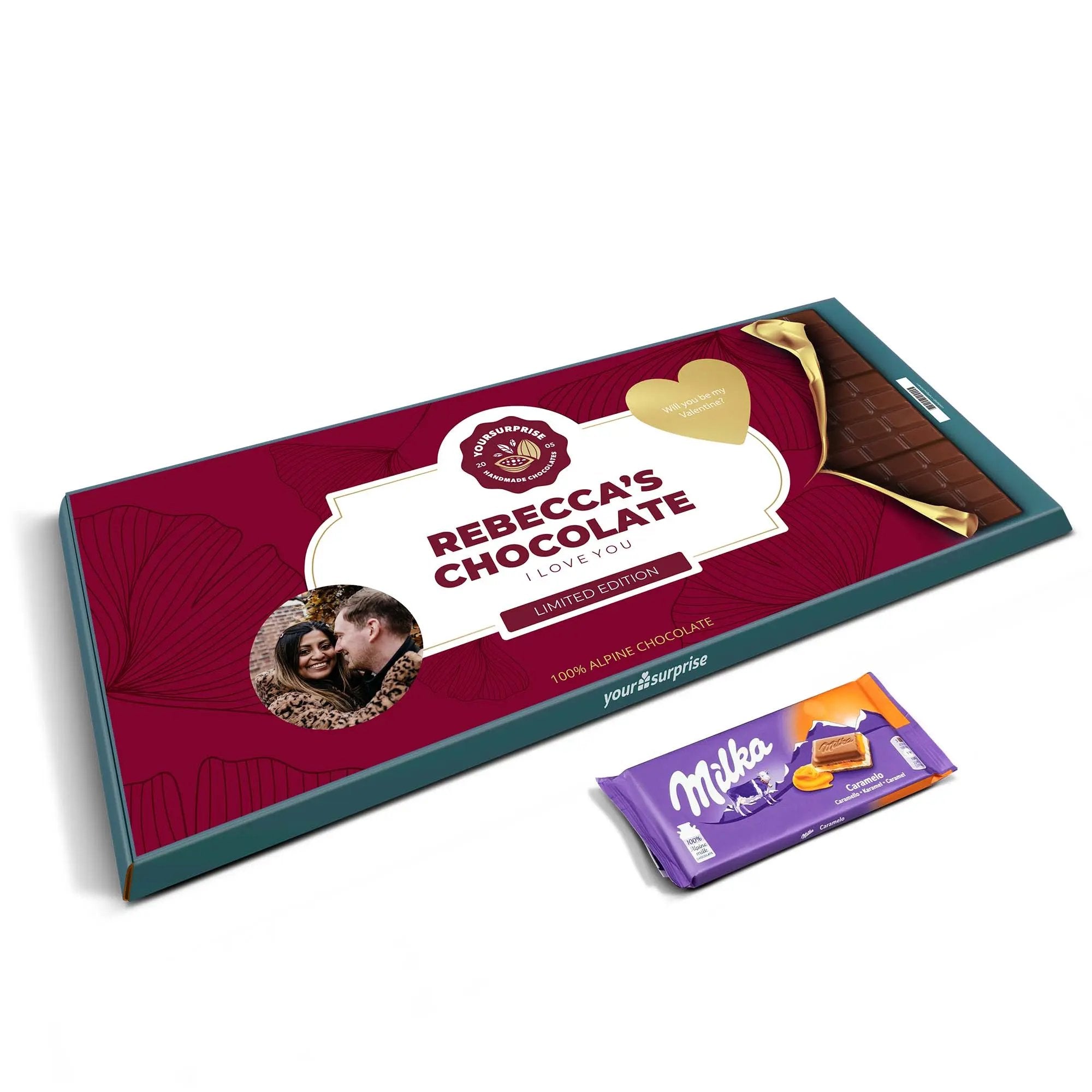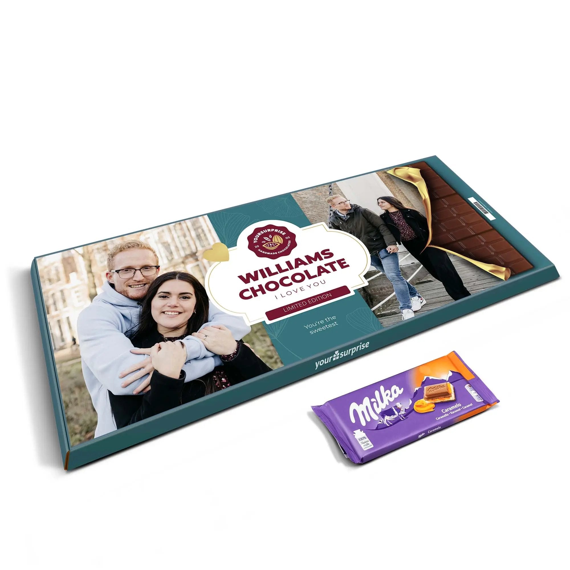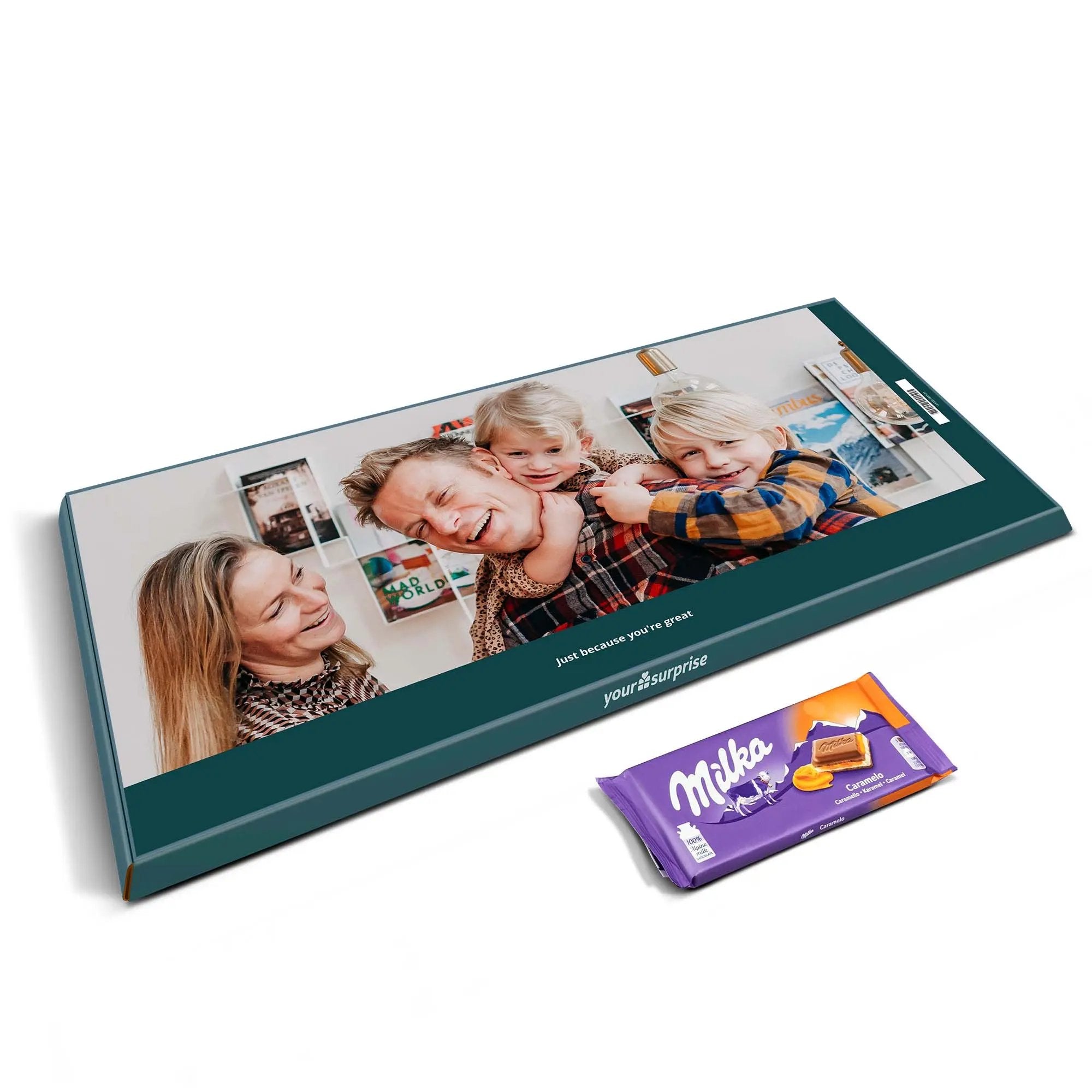 Cette tablette de chocolat de Noël XXL contient pas moins de 9 barres de chocolat Milka. Vraiment unique avec la photo et/ou le nom de votre choix !