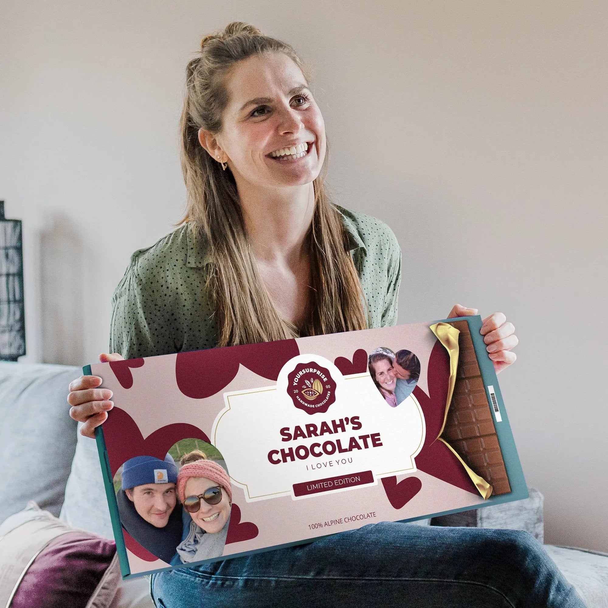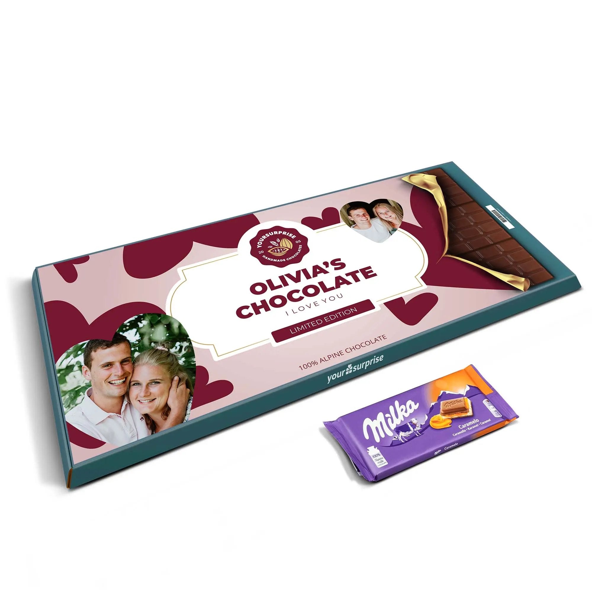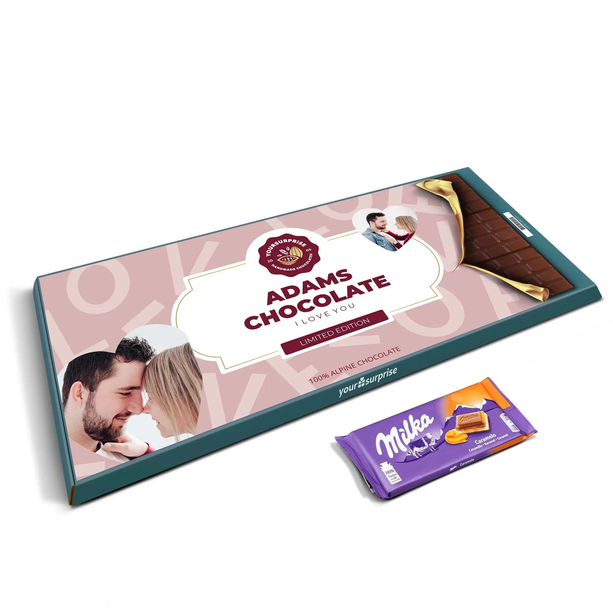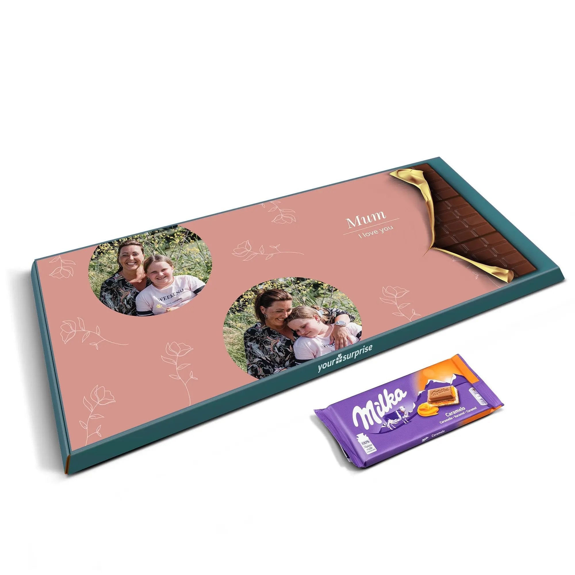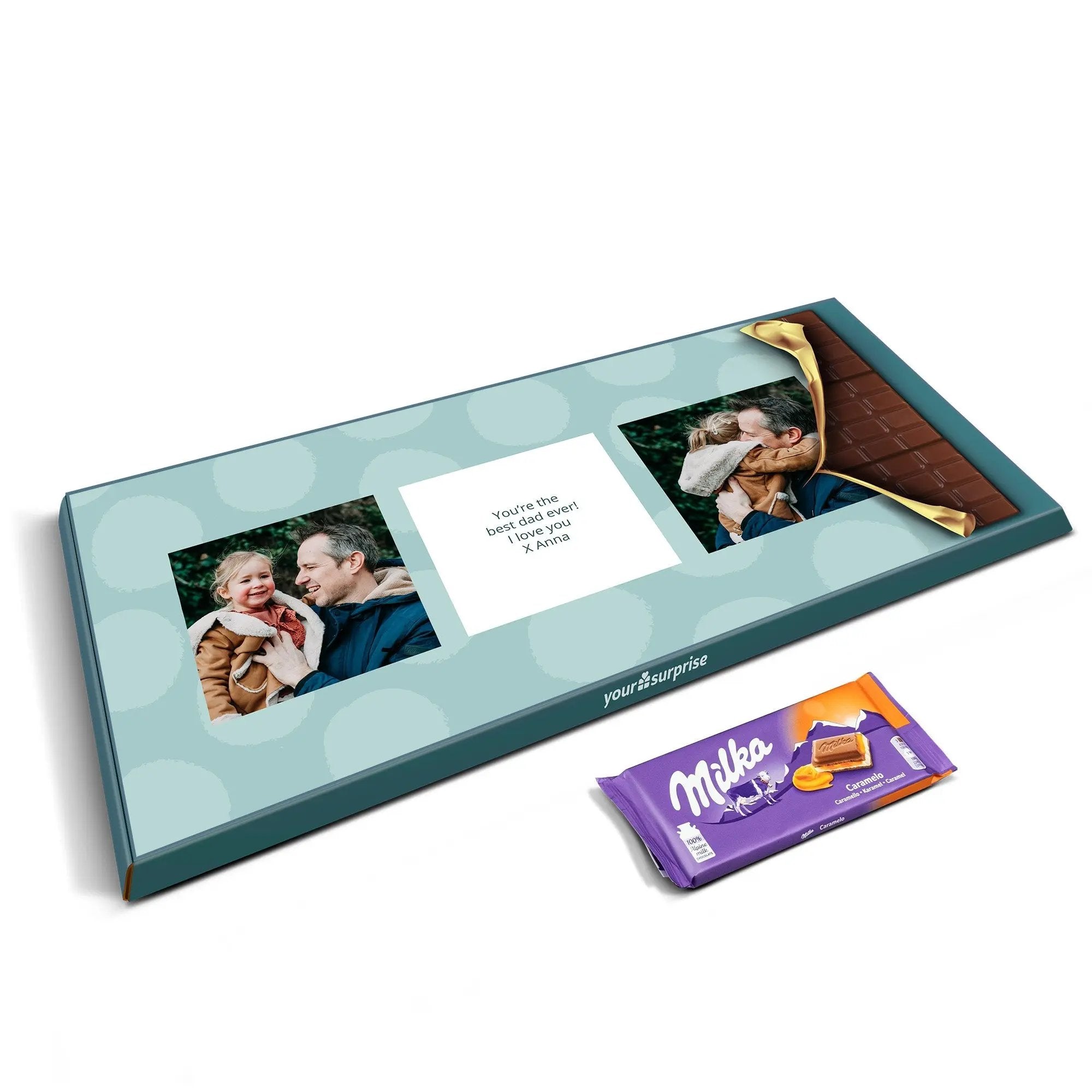 Cette tablette de chocolat de Noël XXL contient pas moins de 9 barres de chocolat Milka. Vraiment unique avec la photo et/ou le nom de votre choix !