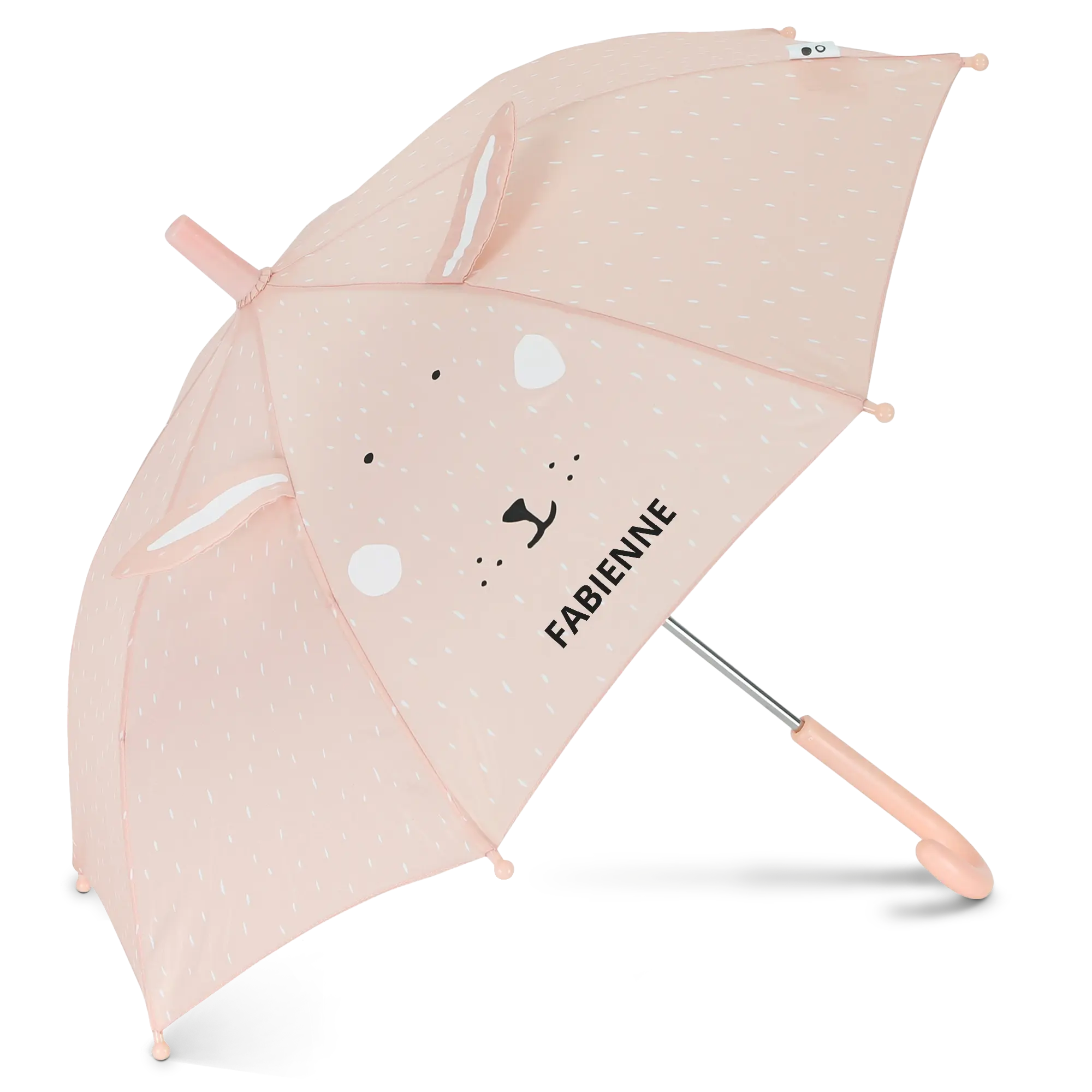 Plus d'informations sur le parapluie enfant personnalisé :Type : lapinMarque : TrixieMatière : 100 % polyester recycléDimensions : 60 x ⌀70 cmDimensions de personnalisation : 10 x 4 cmPersonnalisation : avec le nomImpression : parfaite et en couleurInformations complémentaires : enlever les taches avec un chiffon humide