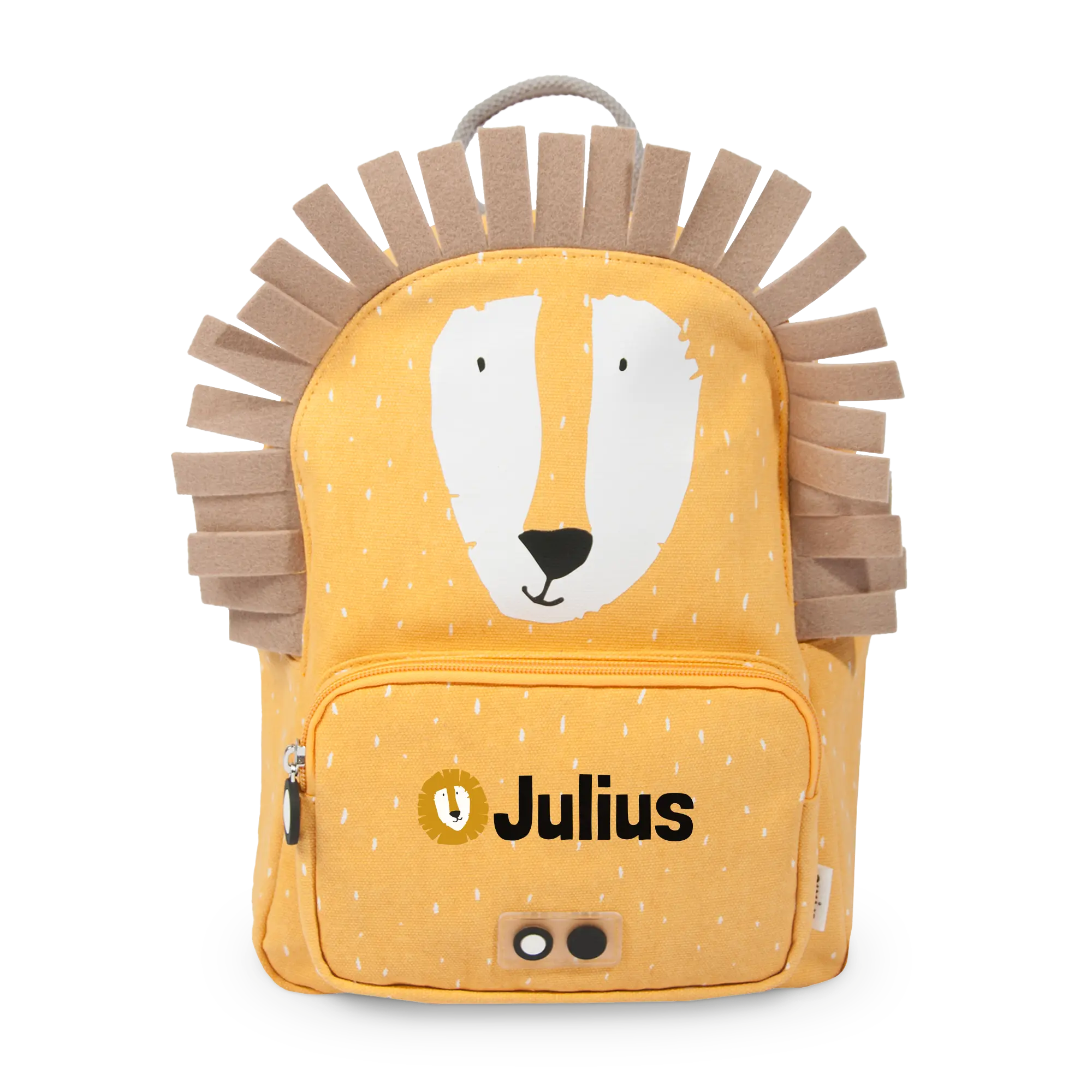 Plus d'informations sur le sac à dos personnalisé pour enfants :Type : Mr. LionMarque : TrixieMatière : 100 % cotonDoublure : 100 % cotonDimensions : 31 x 23 cmDimensions de personnalisation : 5 x 10 cmPersonnalisation : avec le nomImpression : parfaite et en couleurInformations supplémentaires : le sac à dos est doté d'un revêtement déperlant, d'un compartiment principal zippé, d'une poche plaquée à l'intérieur, d'une poche avant zippée, de bretelles réglables et d'une sangle de poitrine. Enlever les taches avec un chiffon humide.