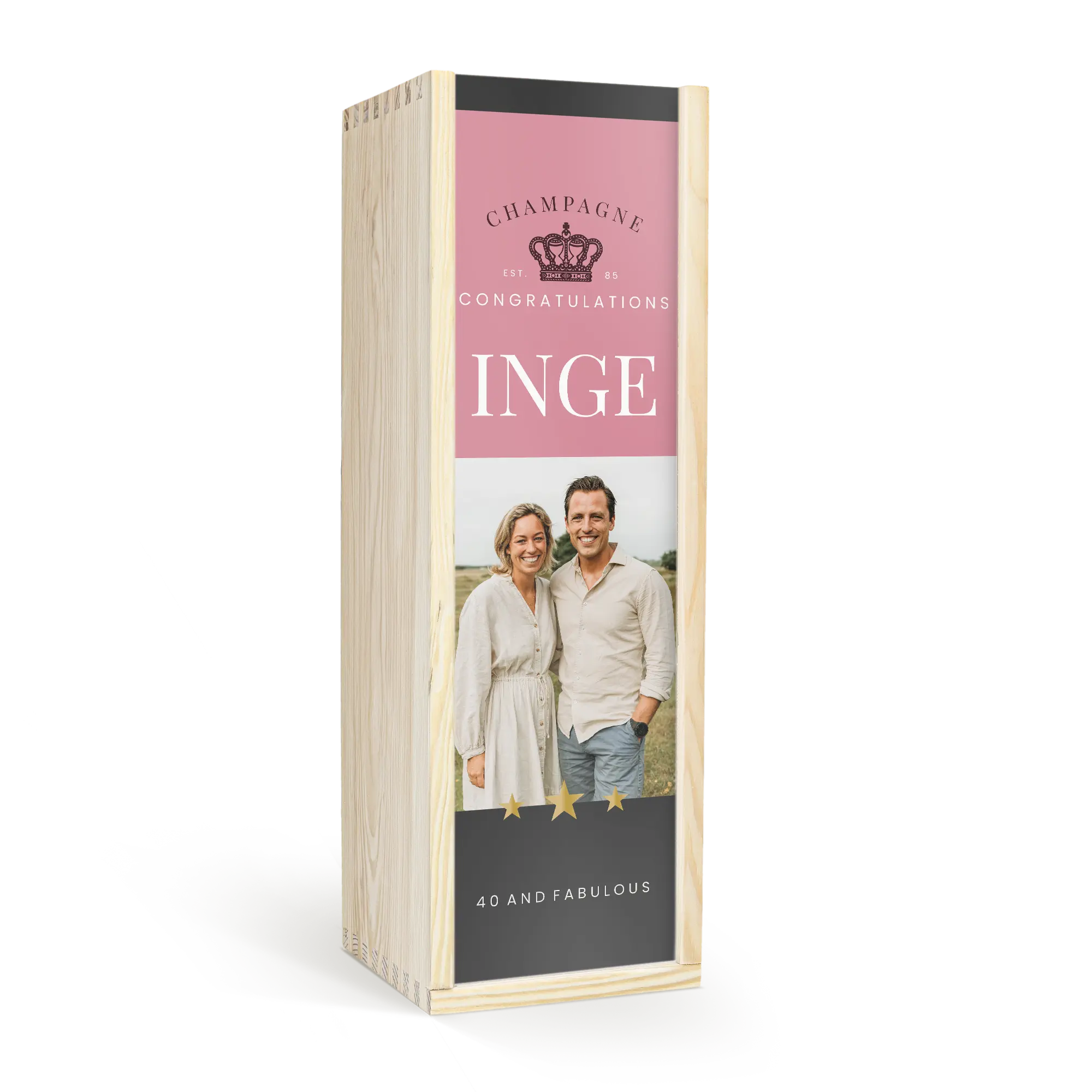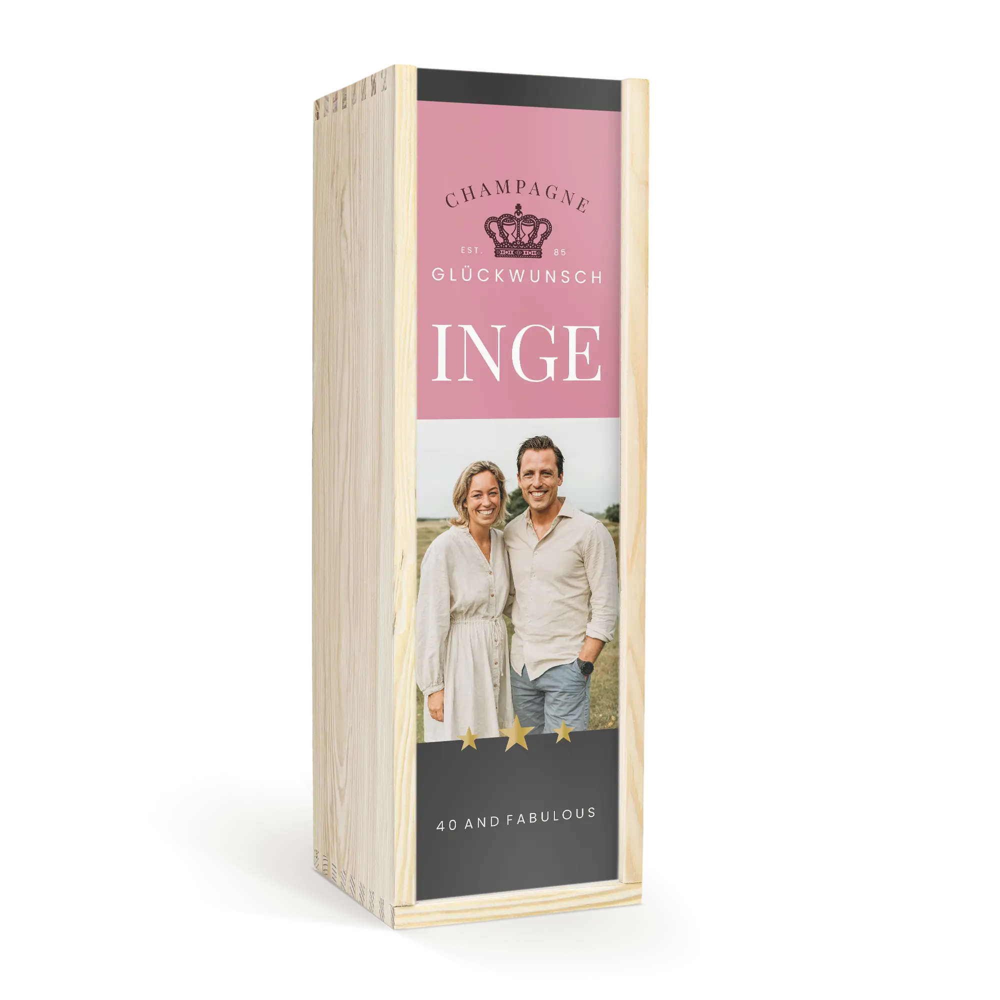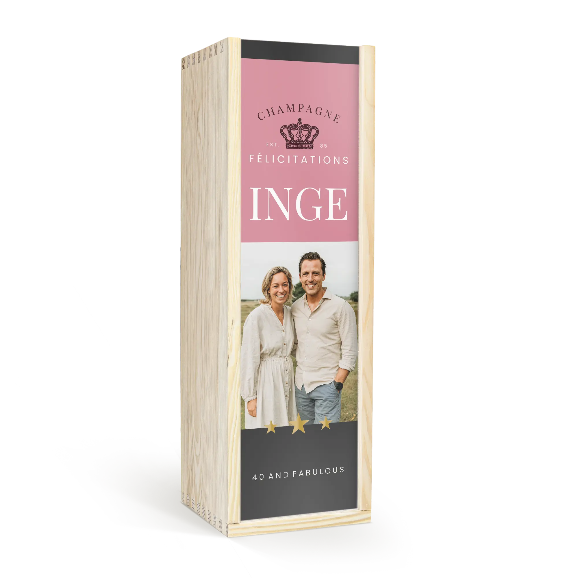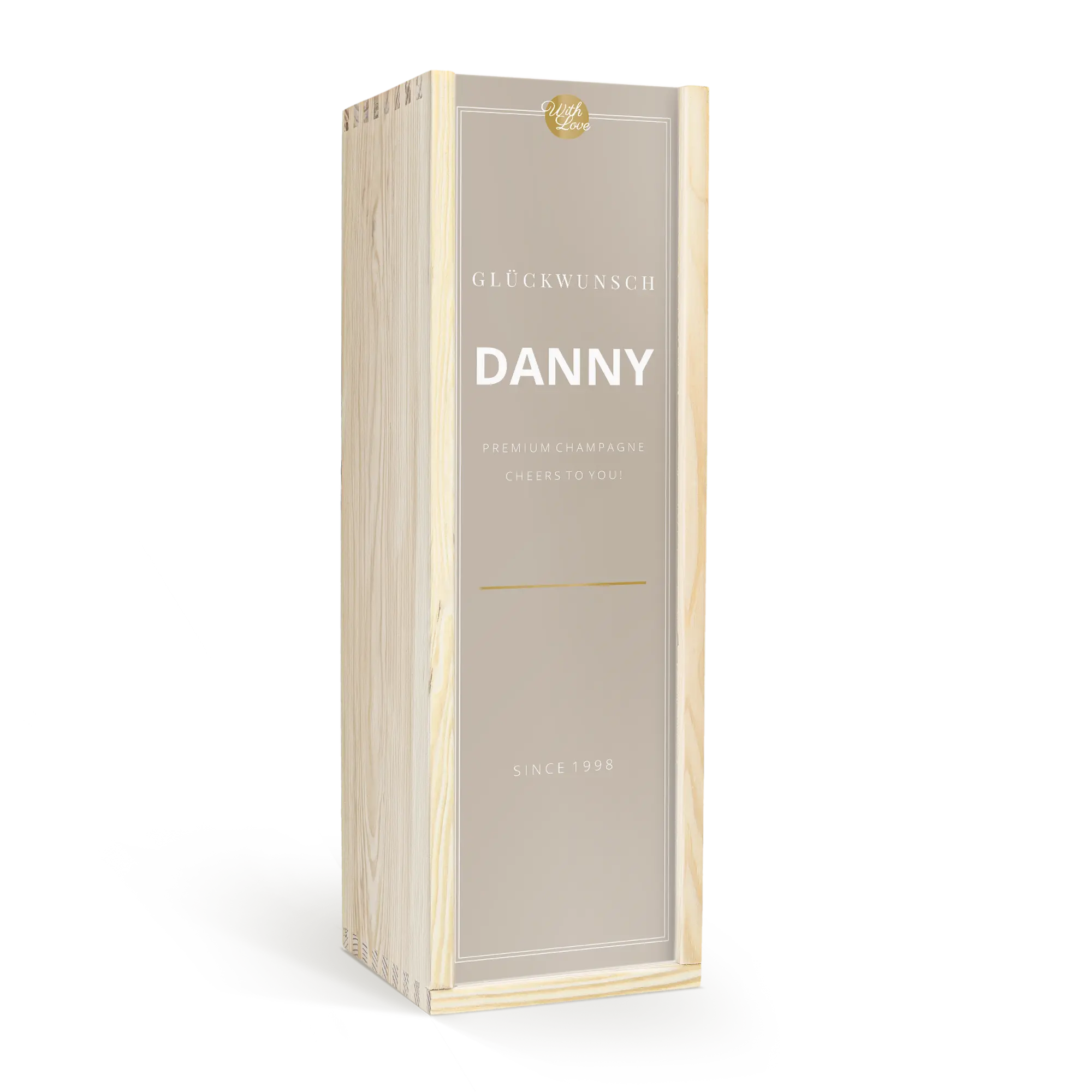 Une délicieuse bouteille de véritable champagne Moët & Chandon dans un coffret en bois personnalisé avec votre nom ou un texte. Plusieurs formats disponibles !