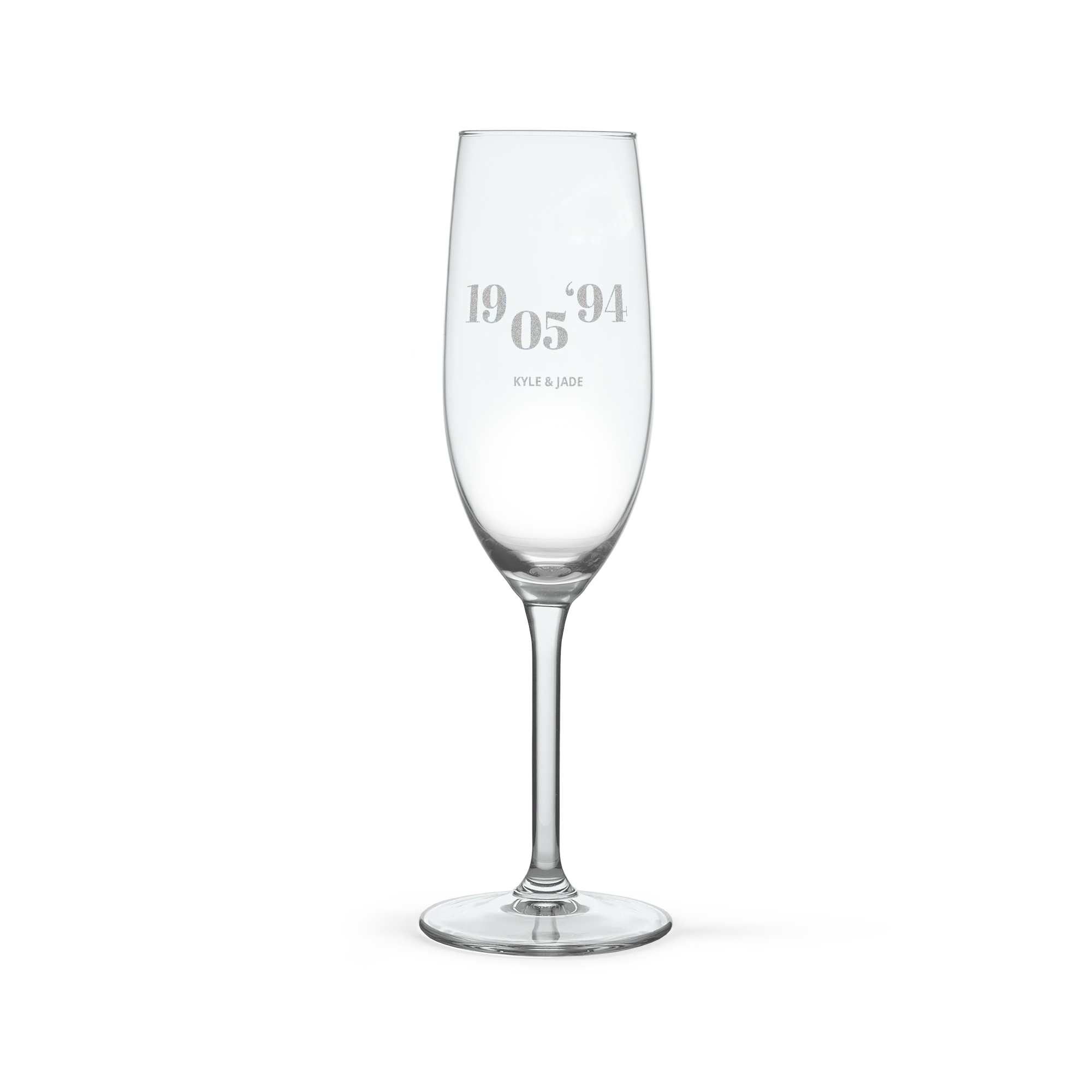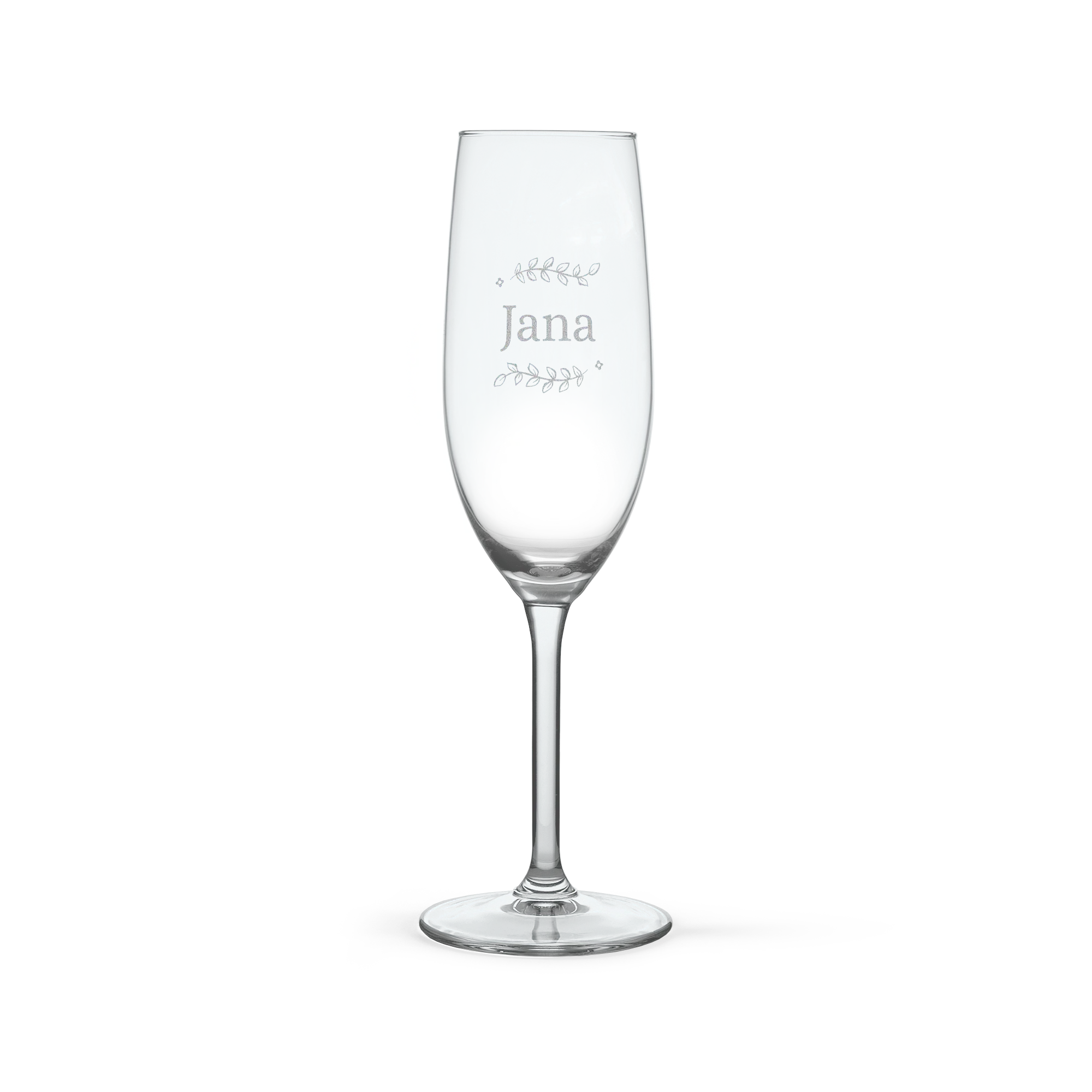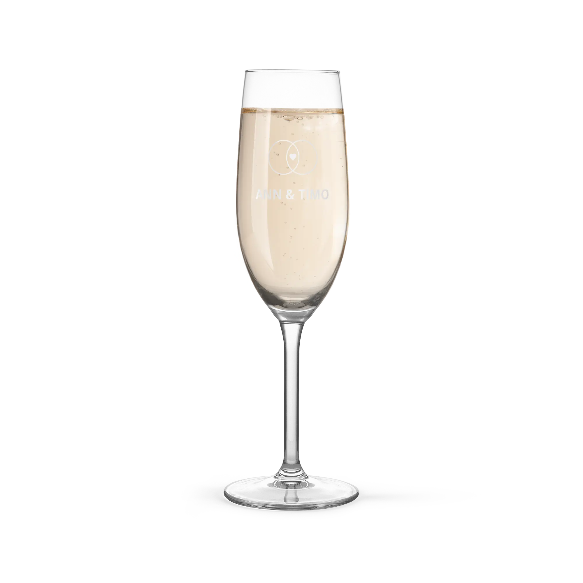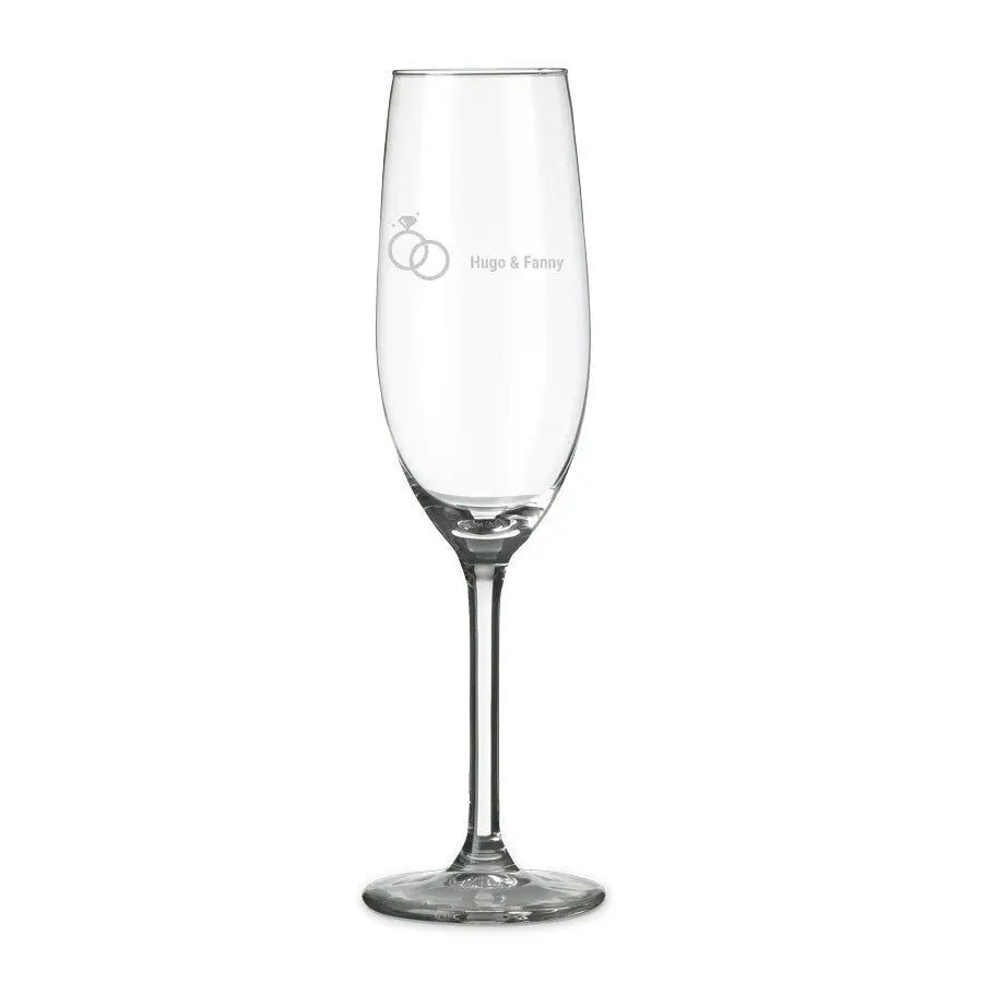 Magnifique verre à champagne gravé avec votre propre texte ou nom.