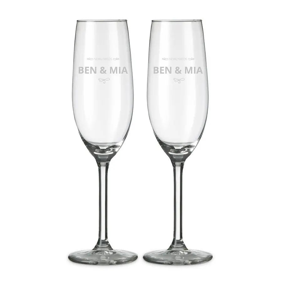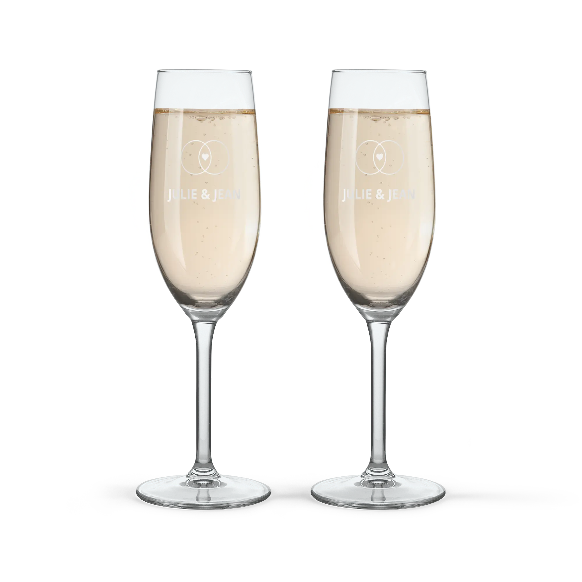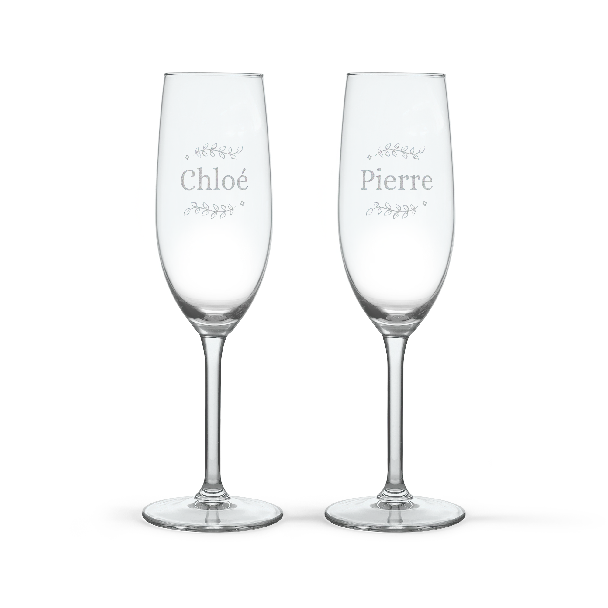 Magnifiques flûtes à champagne gravées avec votre texte ou votre nom.